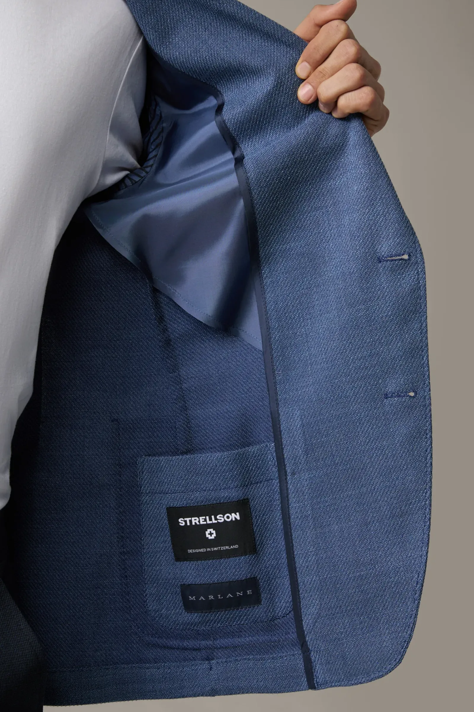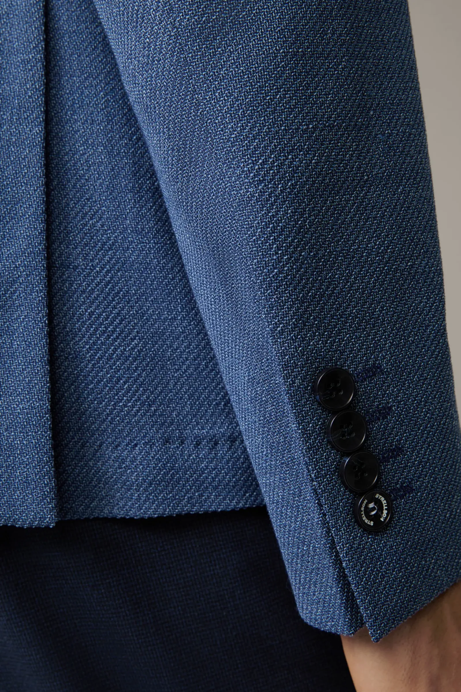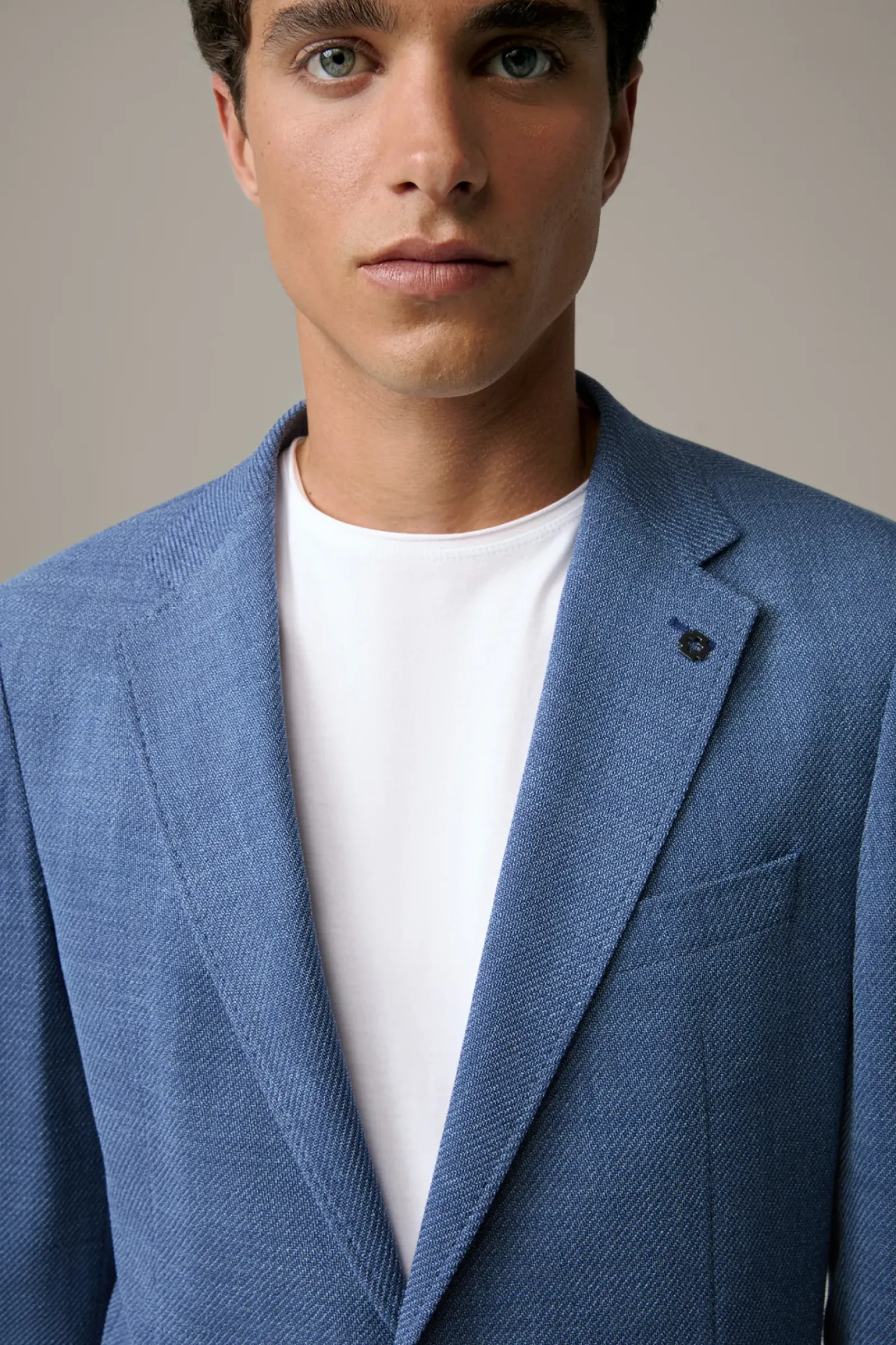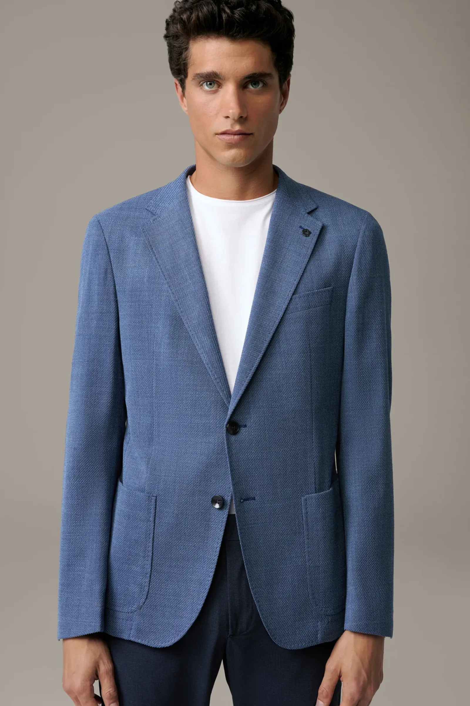 Begeistert im strukturierten Schurwoll-Mix: das Sakko Acon mit aufgesetzten Einschubtaschen, fließendem Teilfutter und Bewegungsschlitzen. Made in Italy.