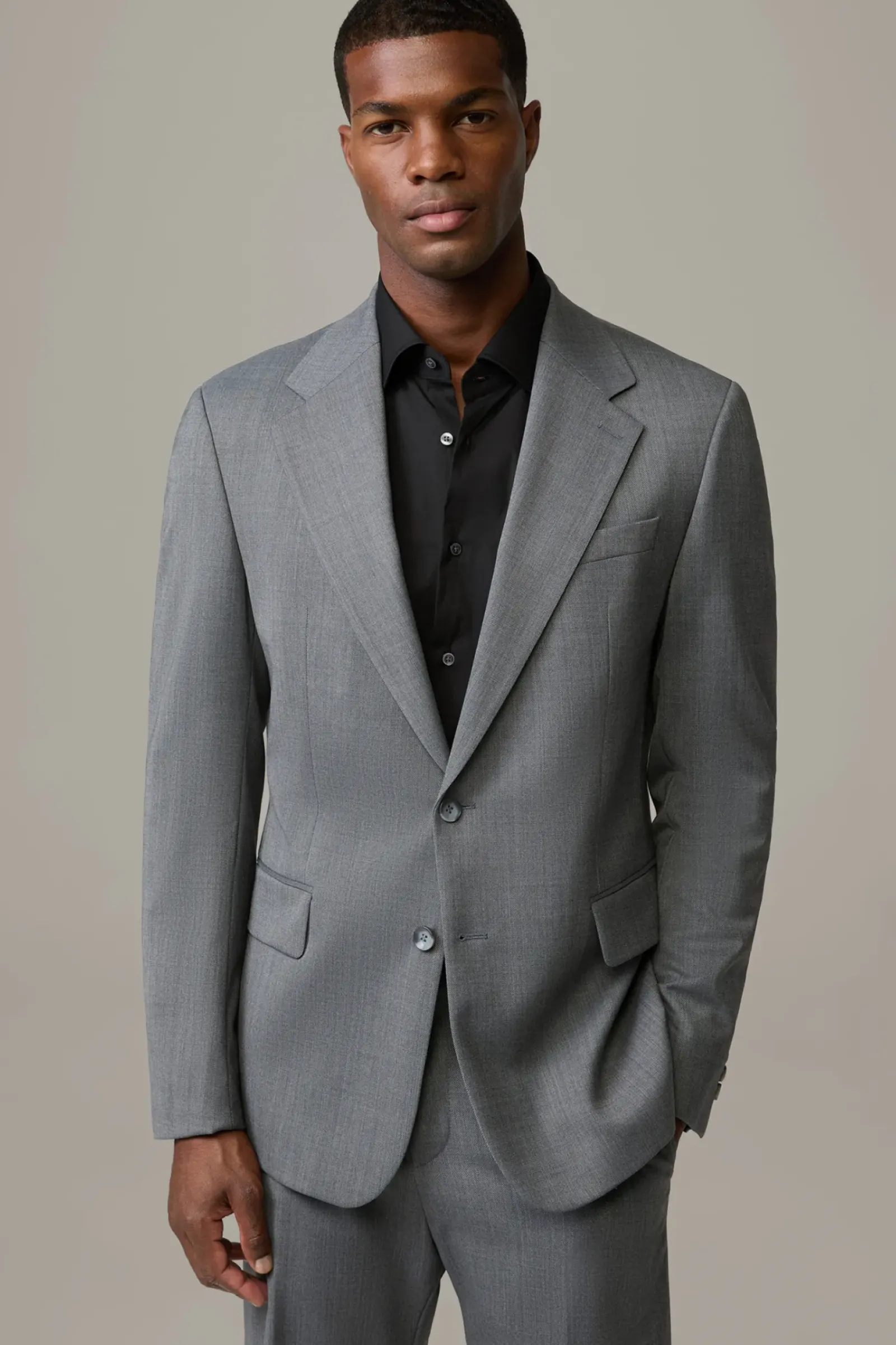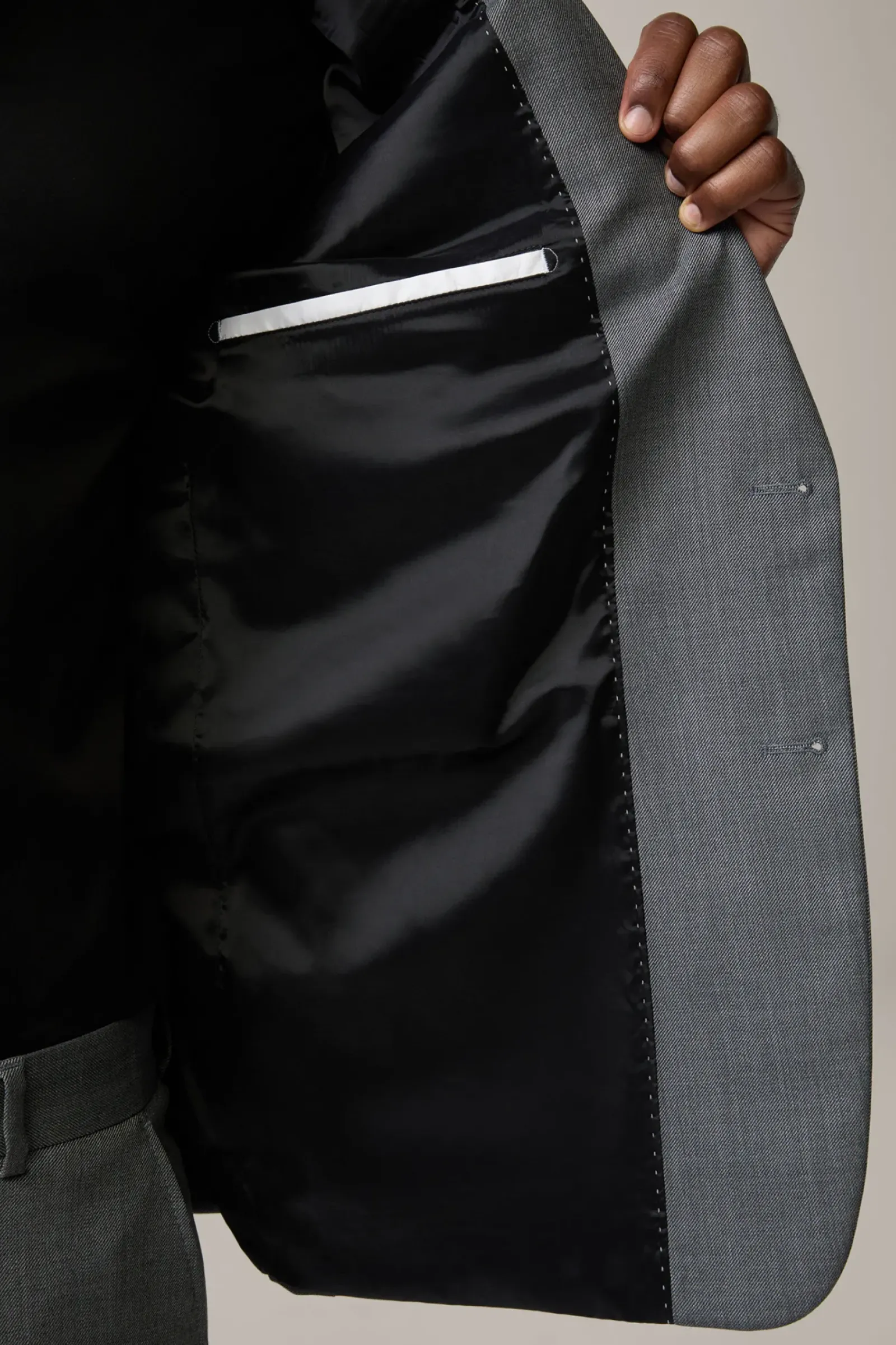 Aus stretchiger Tech-Wool mit dezenter Struktur: das Sakko Alfie mit klassischen Details wie Pattentaschen, Zierärmel- und Bewegungsschlitze. Vollgefüttert.