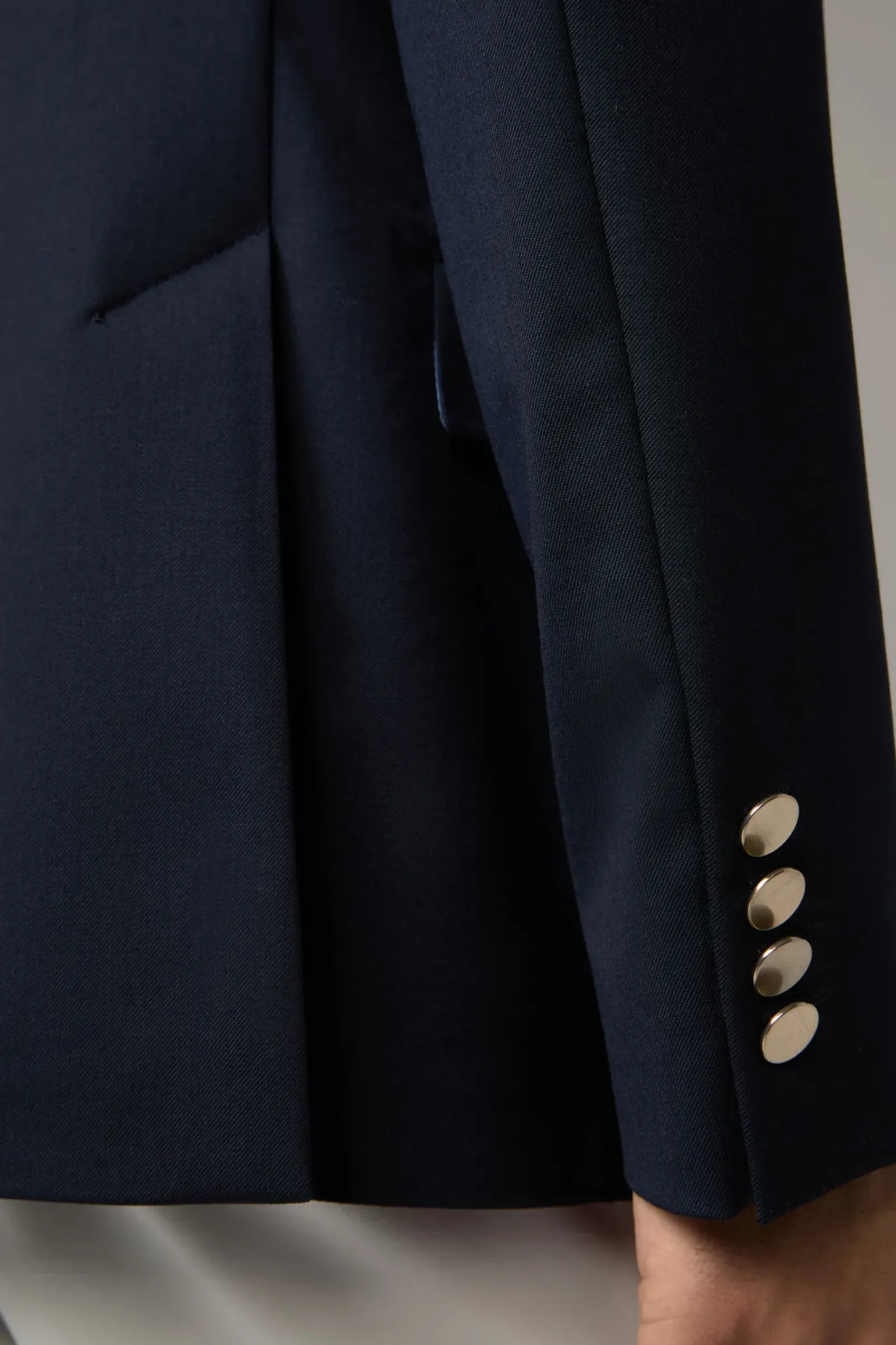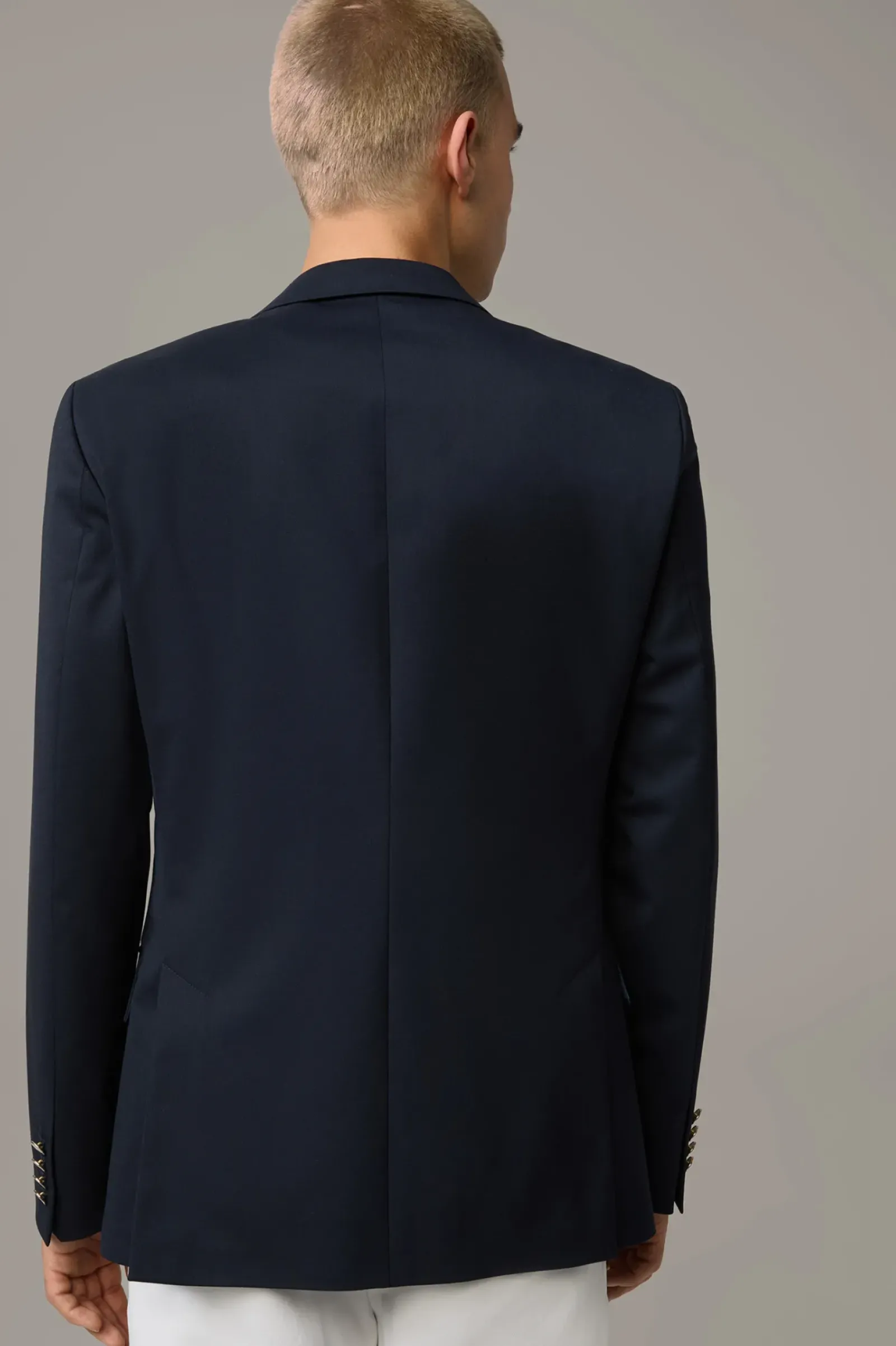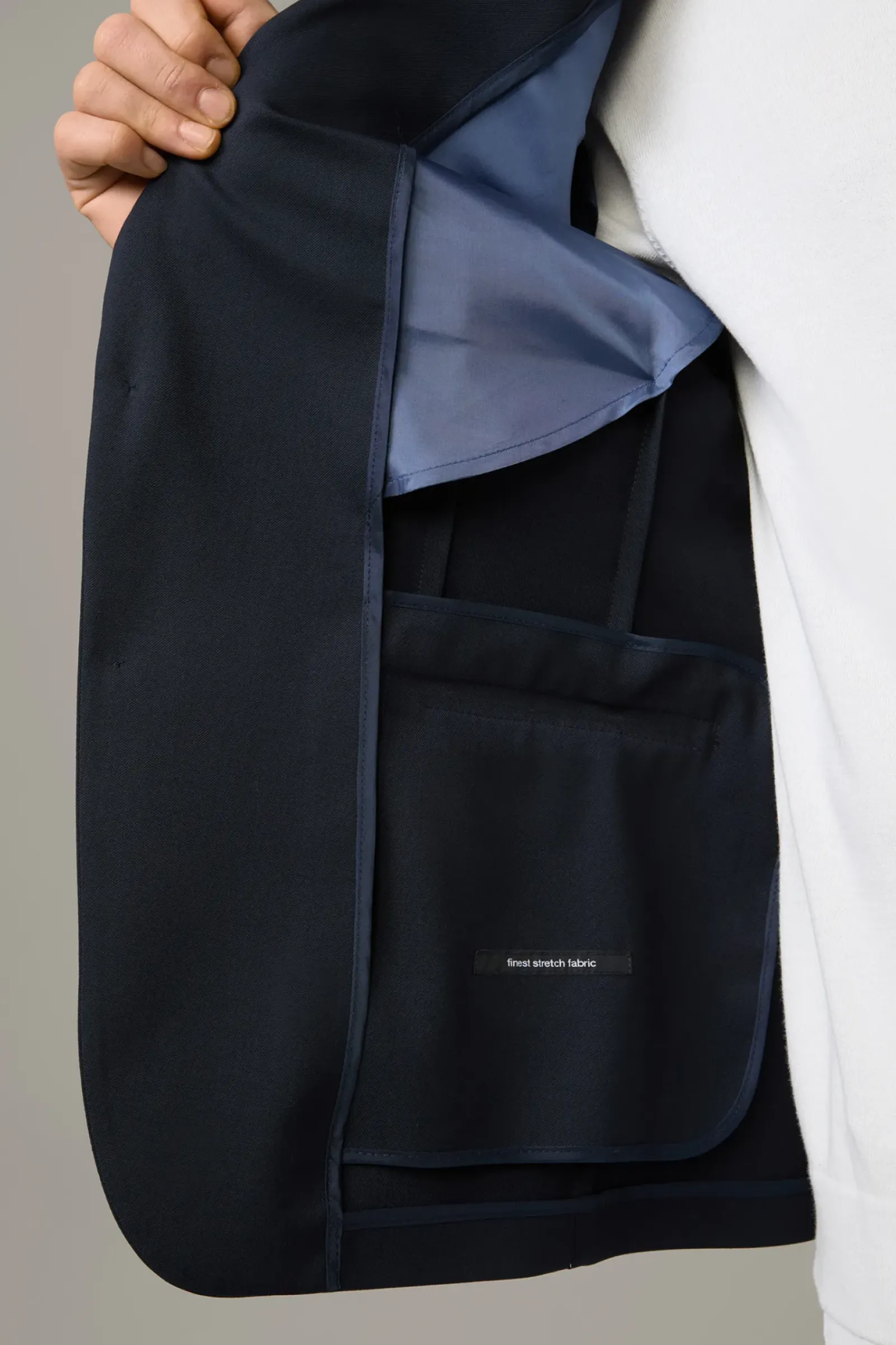 Begeistert in extraschmaler Silhouette im edlen Schurwoll-Mix: das Sakko Caidan im Einreiher-Design mit paspelierten Pattentaschen und Bewegungsschlitzen. Fließendes Teilfutter.