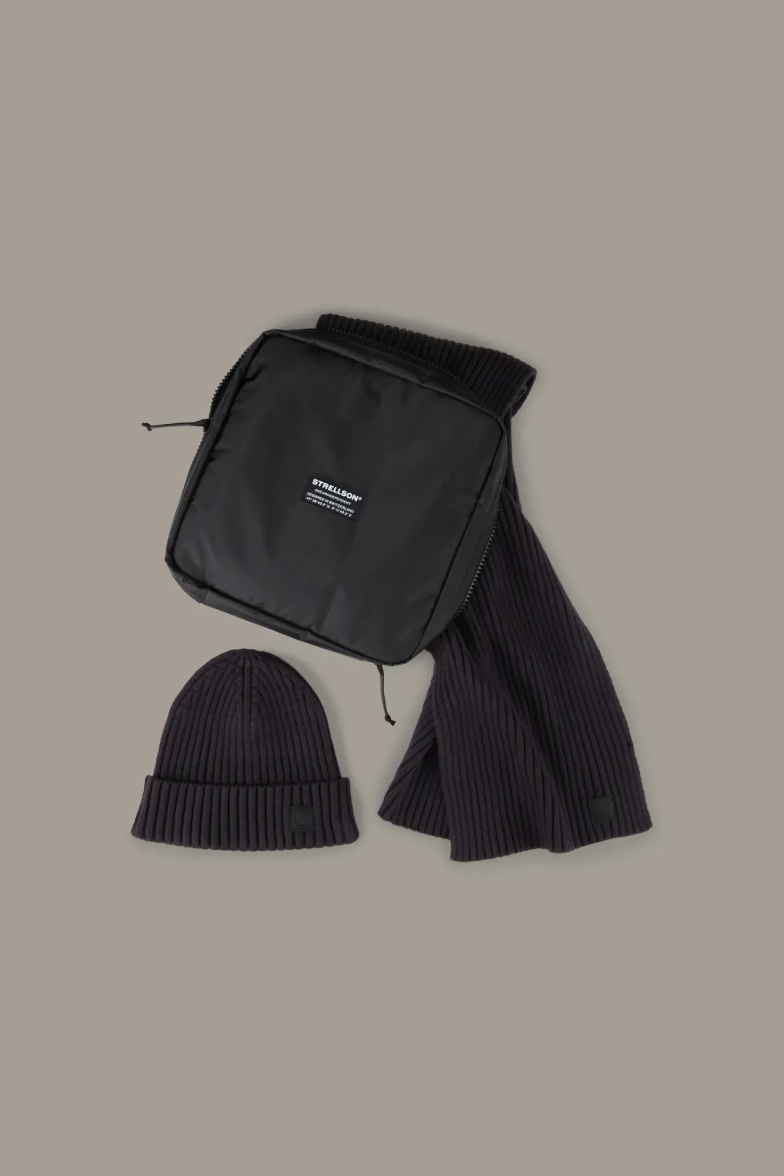 Set aus Schal und Mütze in feiner Strick-Qualität mit Logo-Patch. Inklusive Aufbewahrungscase mit Zip-Verschluss.