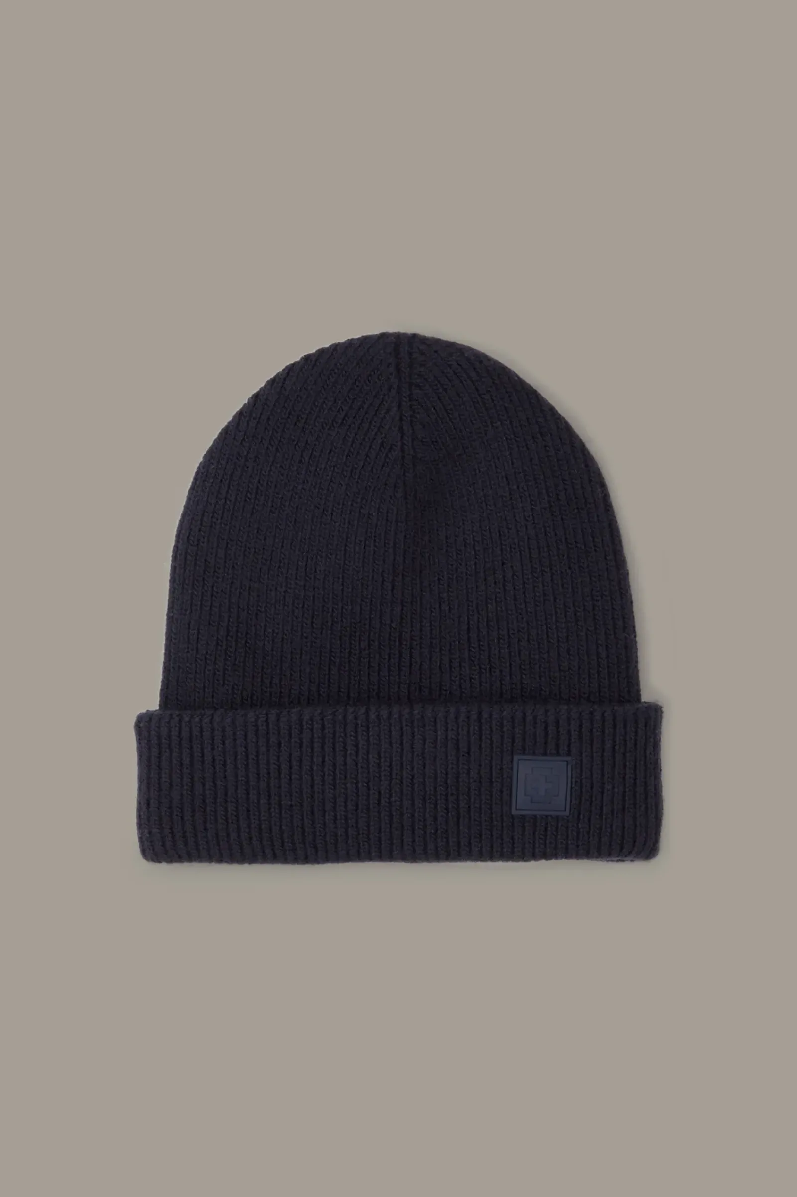 Komfortables Style-Update: Strickmütze Loras aus Cotton-Mix mit klassischem Umschlag und Rubber-Logo. Perfect Match: Schal Loras.