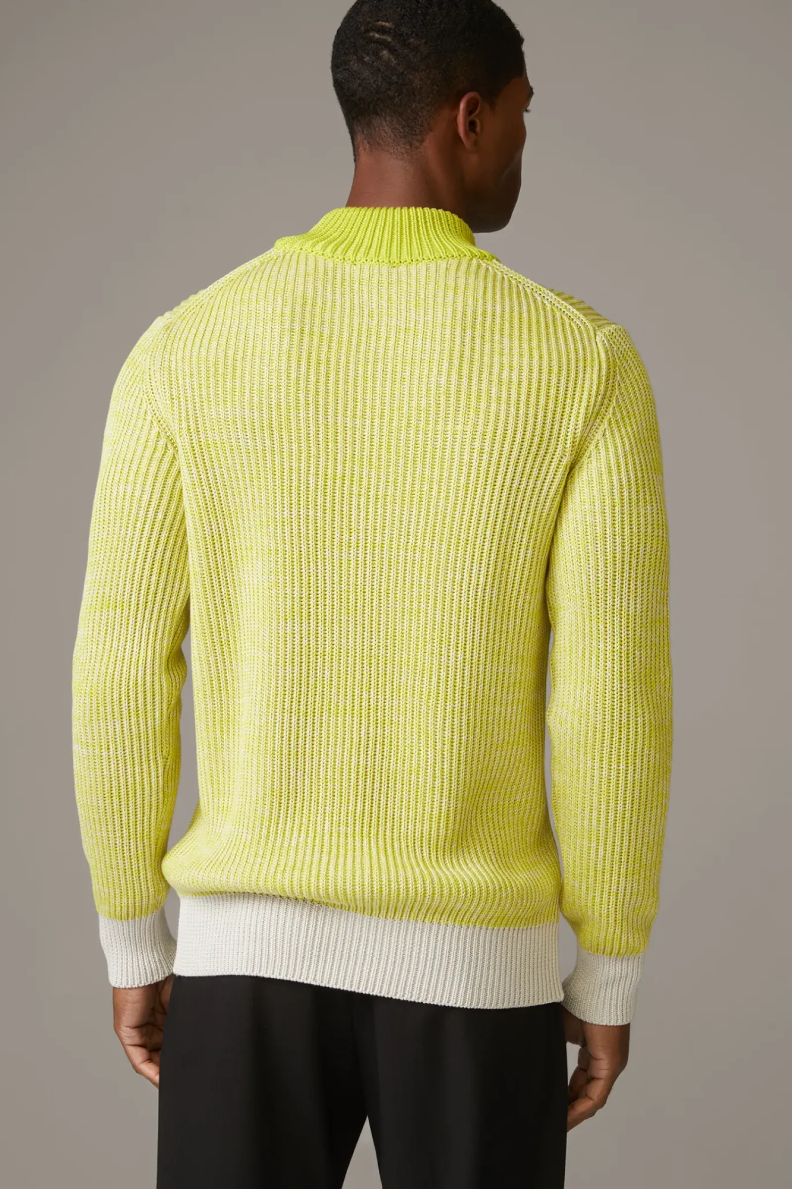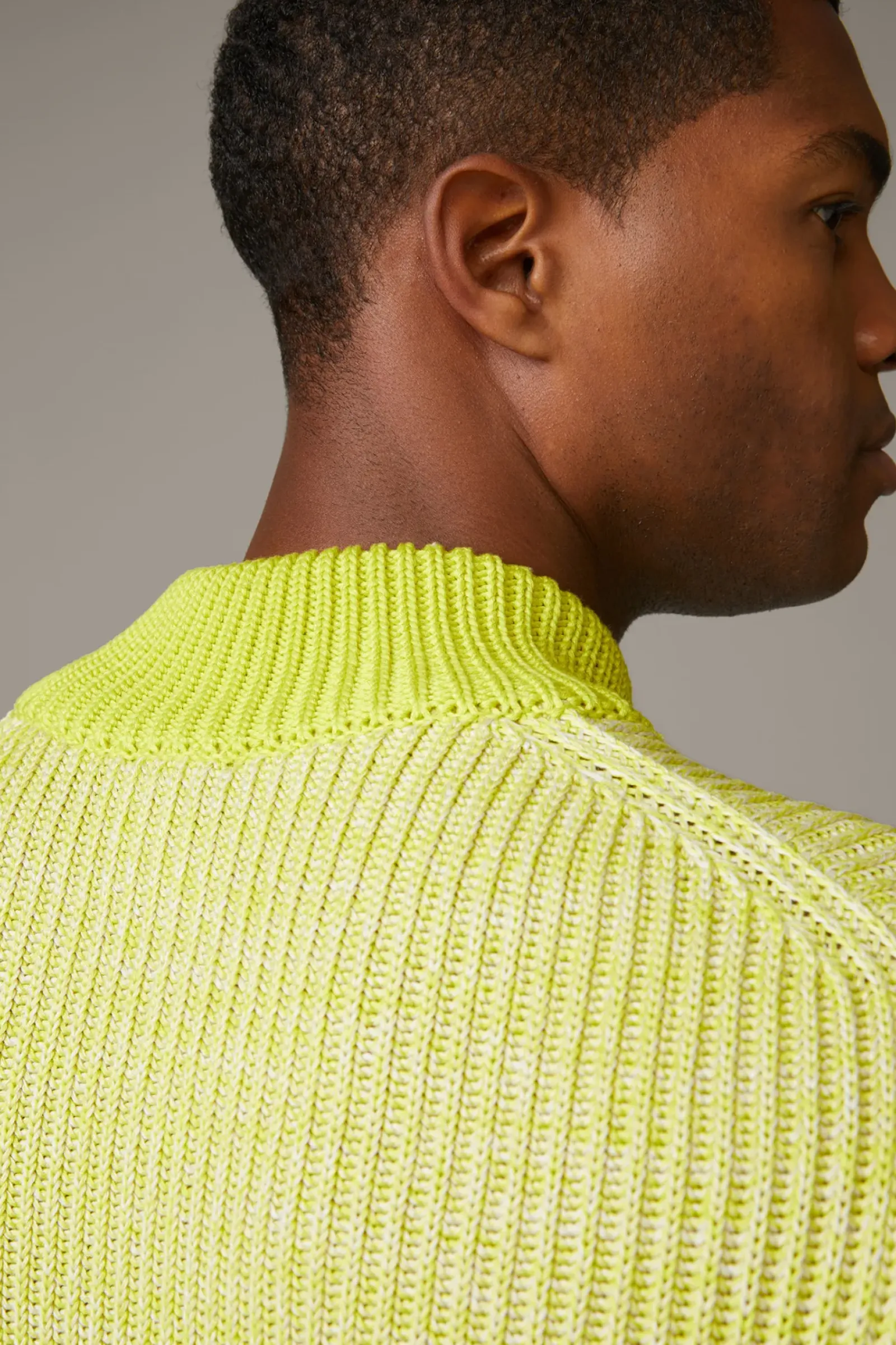 Als stilvoller Allrounder für moderne Looks: der Pullover Adrian aus purer Baumwolle und im gerippten Design. Breite Rippbündchen und der Mockneck-Kragen setzen stylische Akzente.