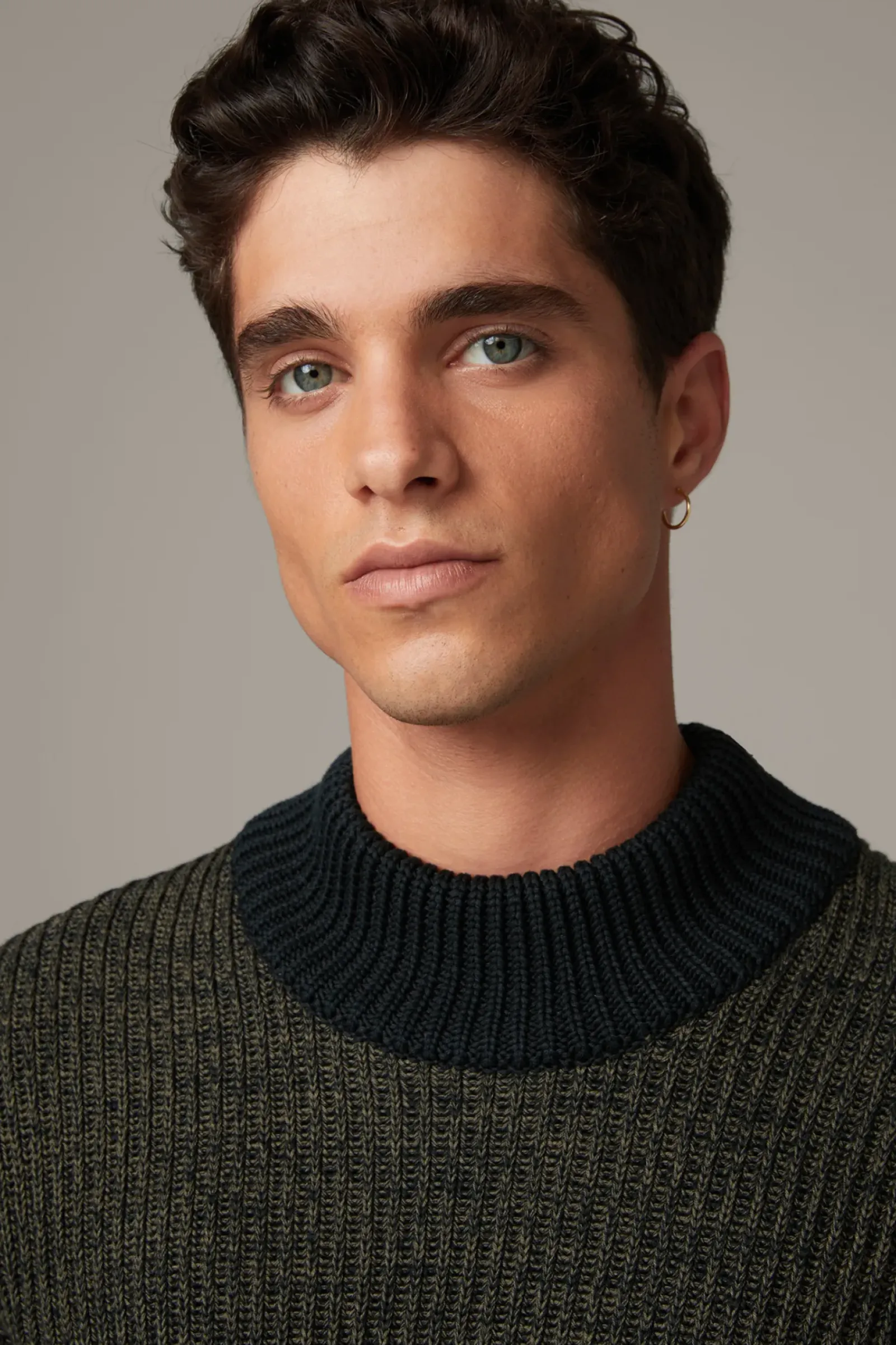 Als stilvoller Allrounder für moderne Looks: der Pullover Adrian aus purer Baumwolle und im gerippten Design. Breite Rippbündchen und der Mockneck-Kragen setzen stylische Akzente.