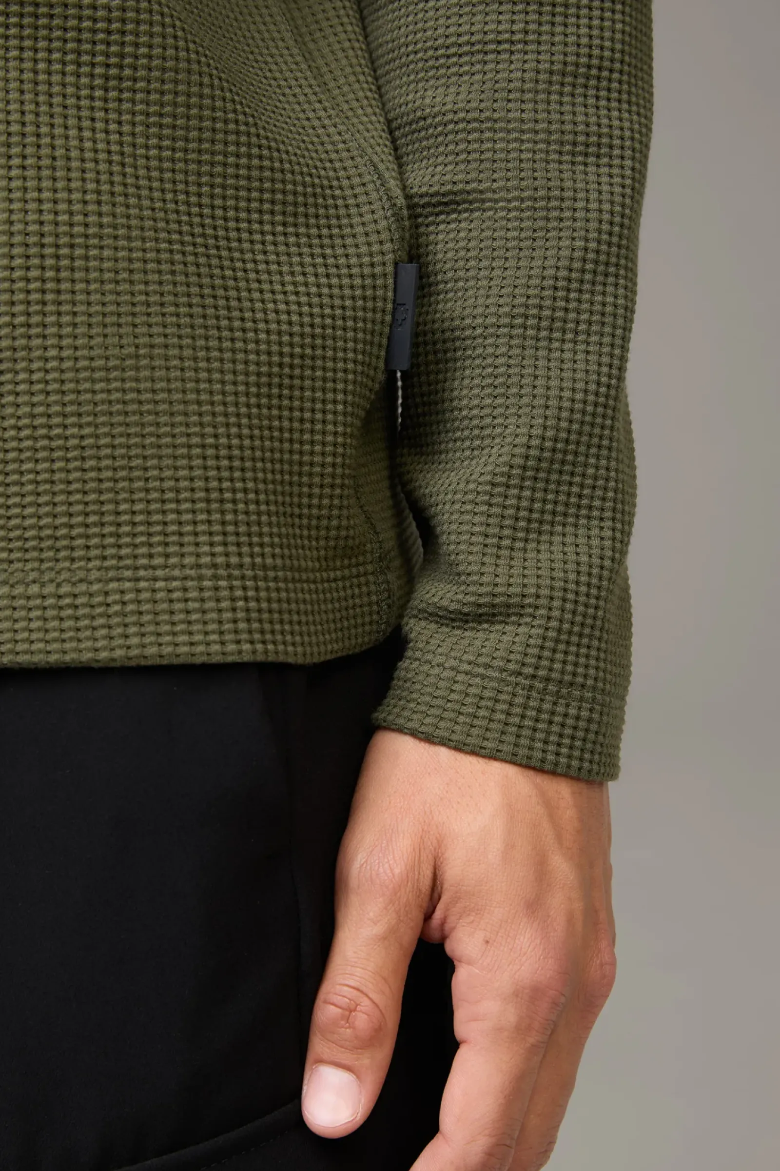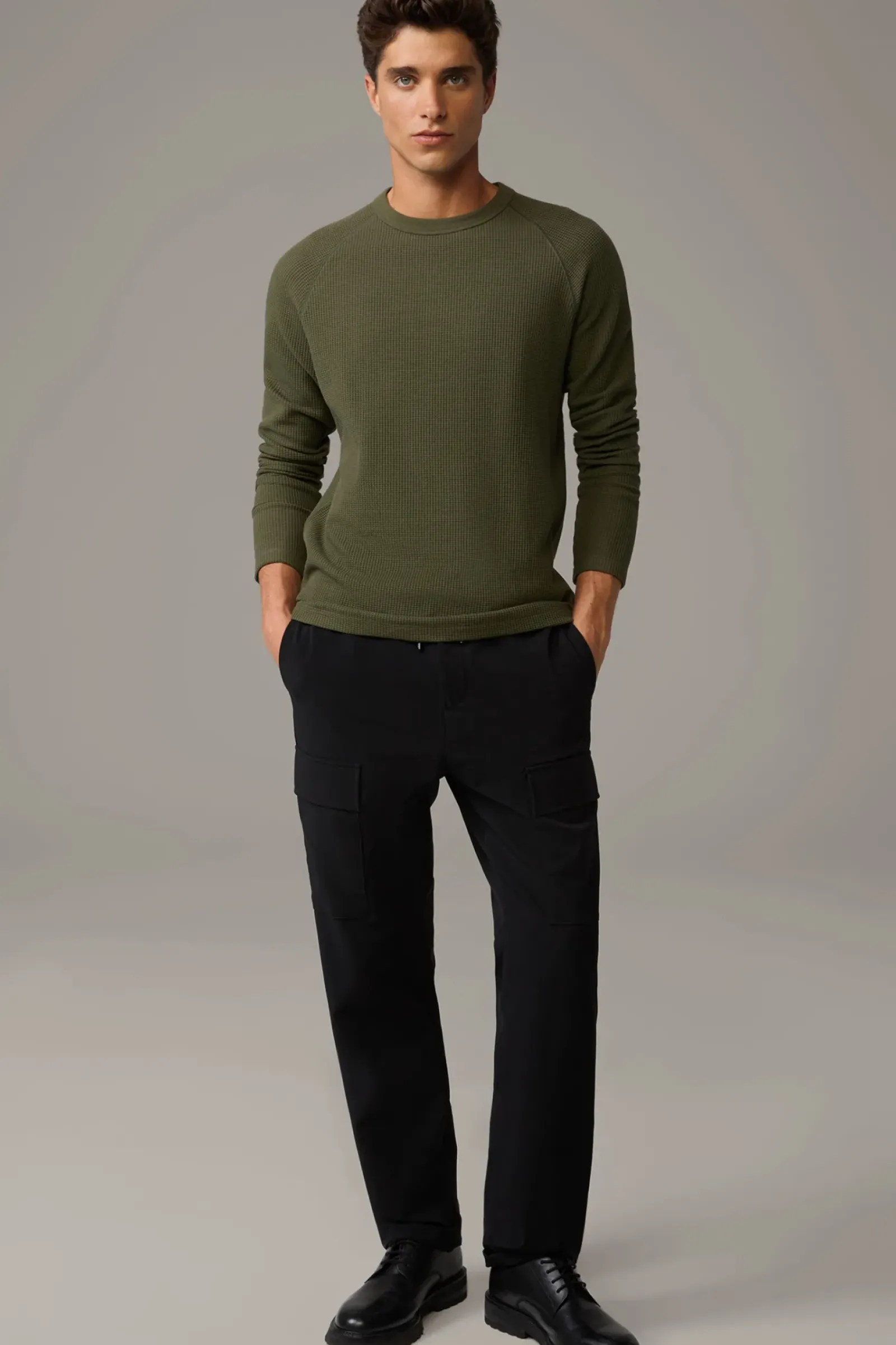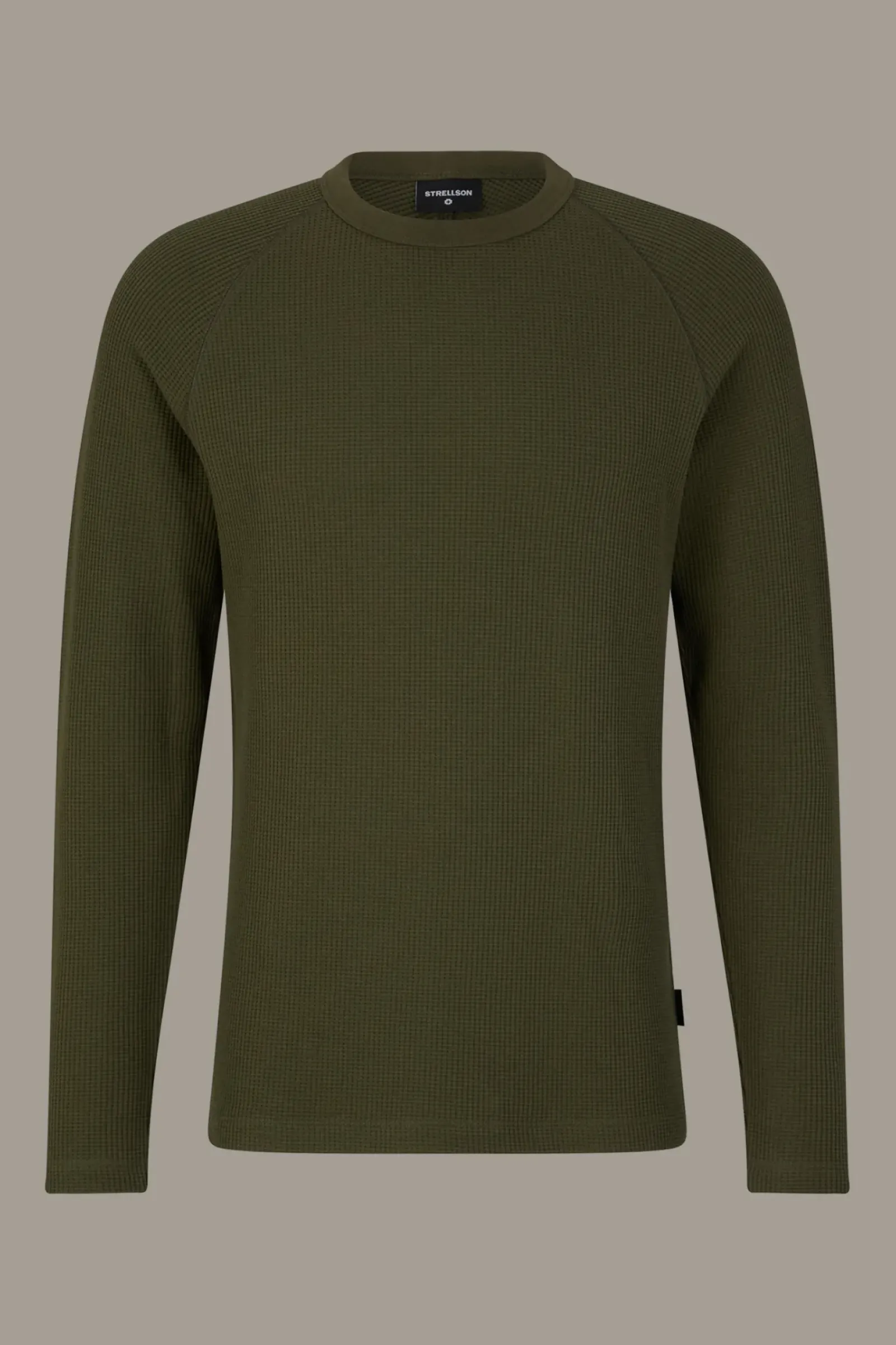 Allrounder mit Twist: das Longsleeve Walt im Cotton Mix mit Waffelstruktur und einem klassischen Rundhalsausschnitt. Rückseite mit Rubber-Logo und Ziernaht.
