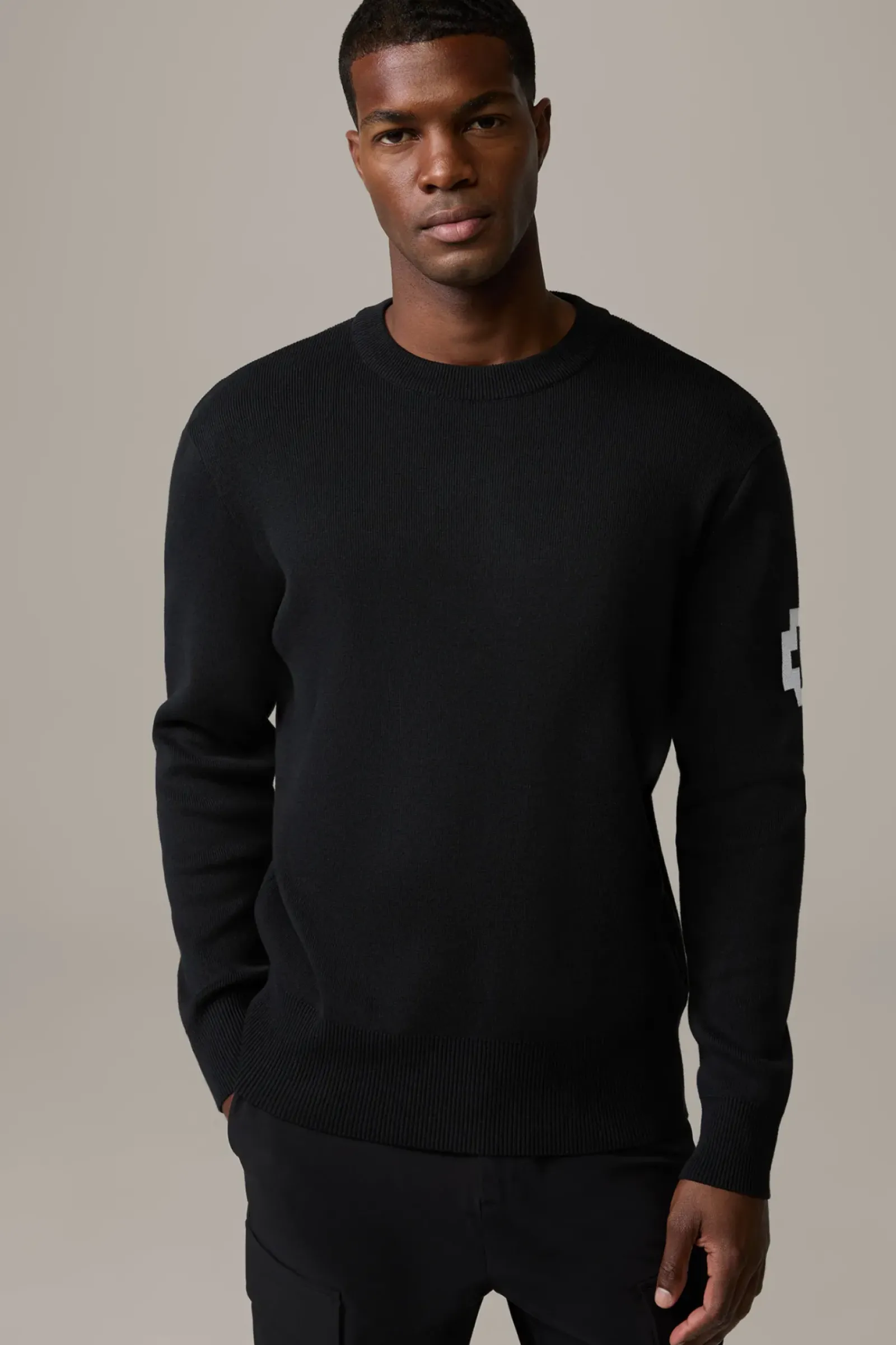 Signature Piece: der Pullover Varg überzeugt mit Rundhalsausschnitt, kontrastivem Signé-Detail und Rippbündchen an den Abschlüssen. Aus Cotton-Woll-Mix.