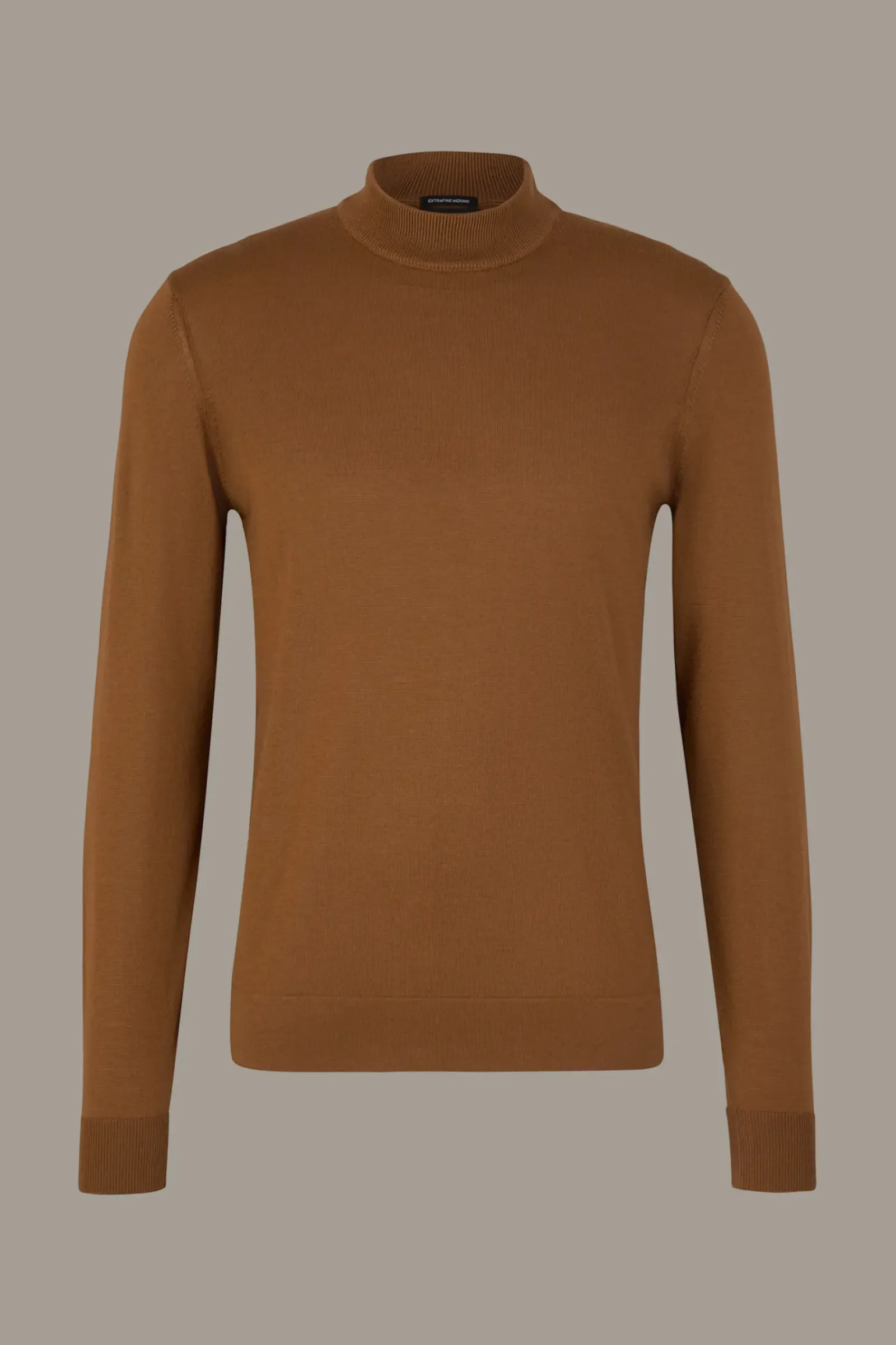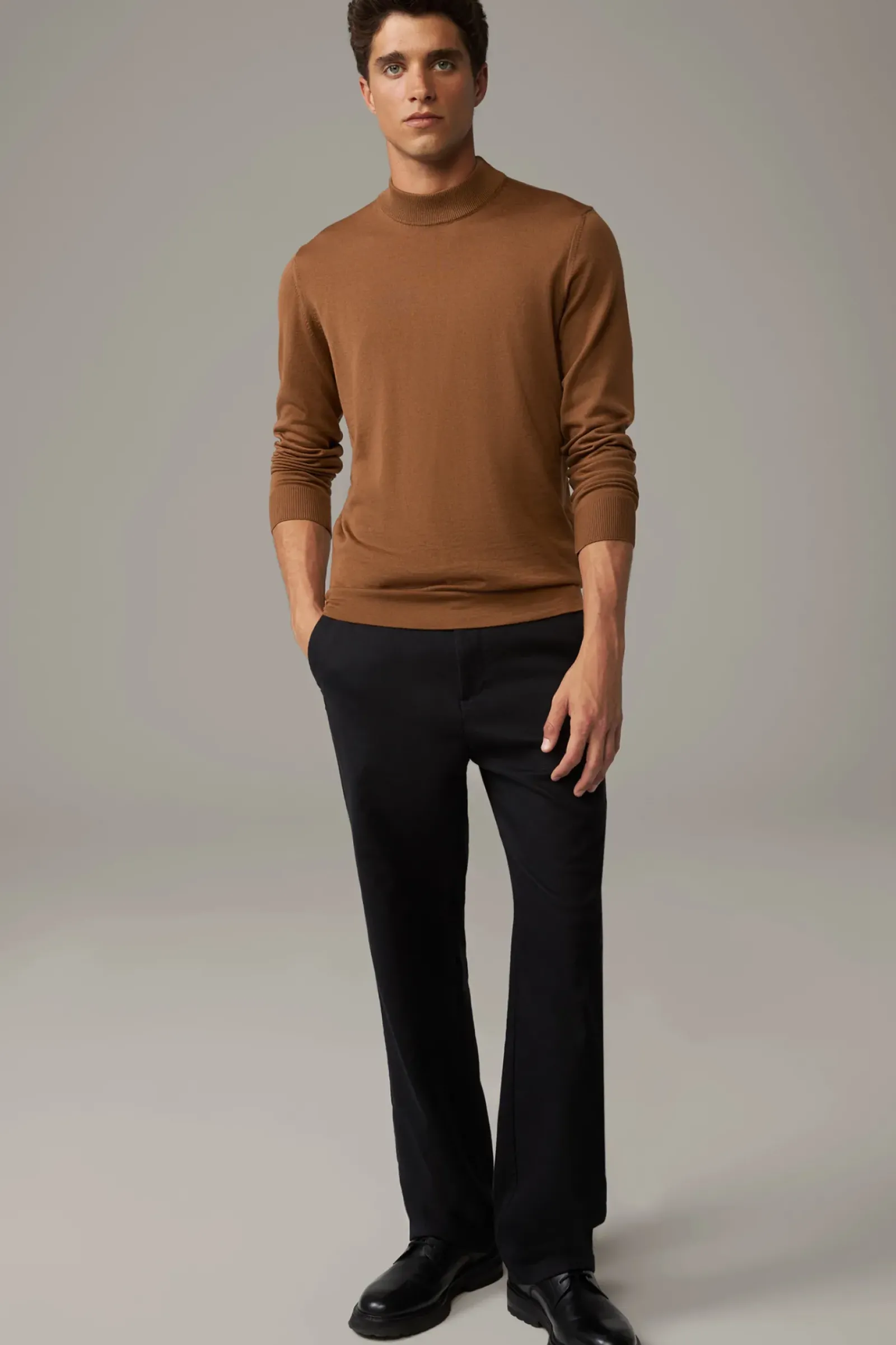 Stilvoller Allrounder: der Pullover Marek mit Stehkragen und Rippbündchen. Weiche Schurwoll-Qualität mit feinen Ziernähten.
