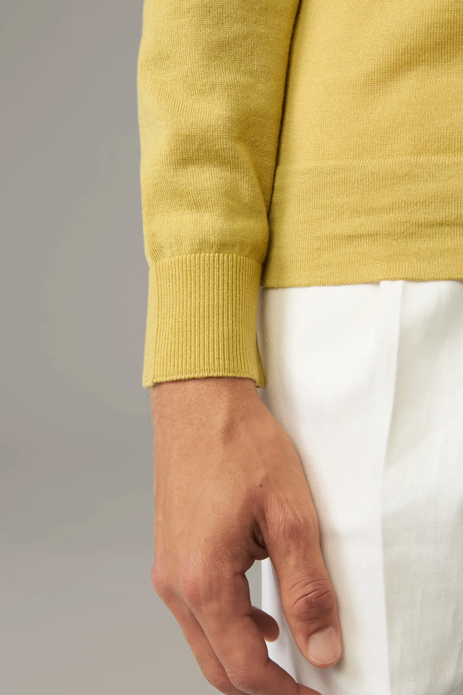 Stilvoller Allrounder: der Pullover Marek mit Stehkragen und Rippbündchen. Weiche Schurwoll-Qualität mit feinen Ziernähten.