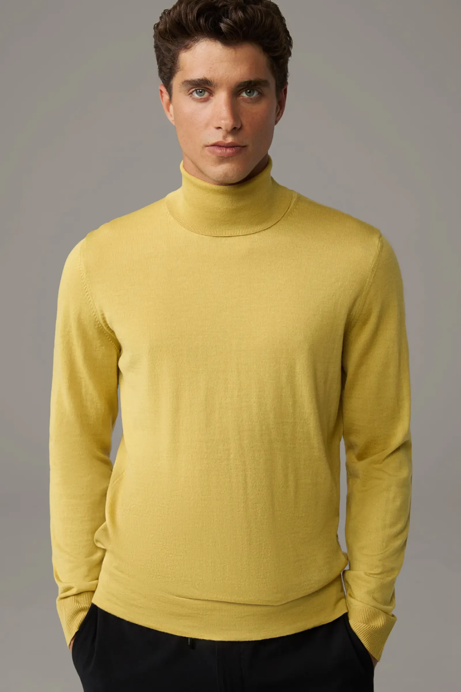 Klassisches Basic-Piece: Der Rollkragenpullover Marek mit Rippbündchen und feinen Ziernähten. Aus reiner Schurwolle.