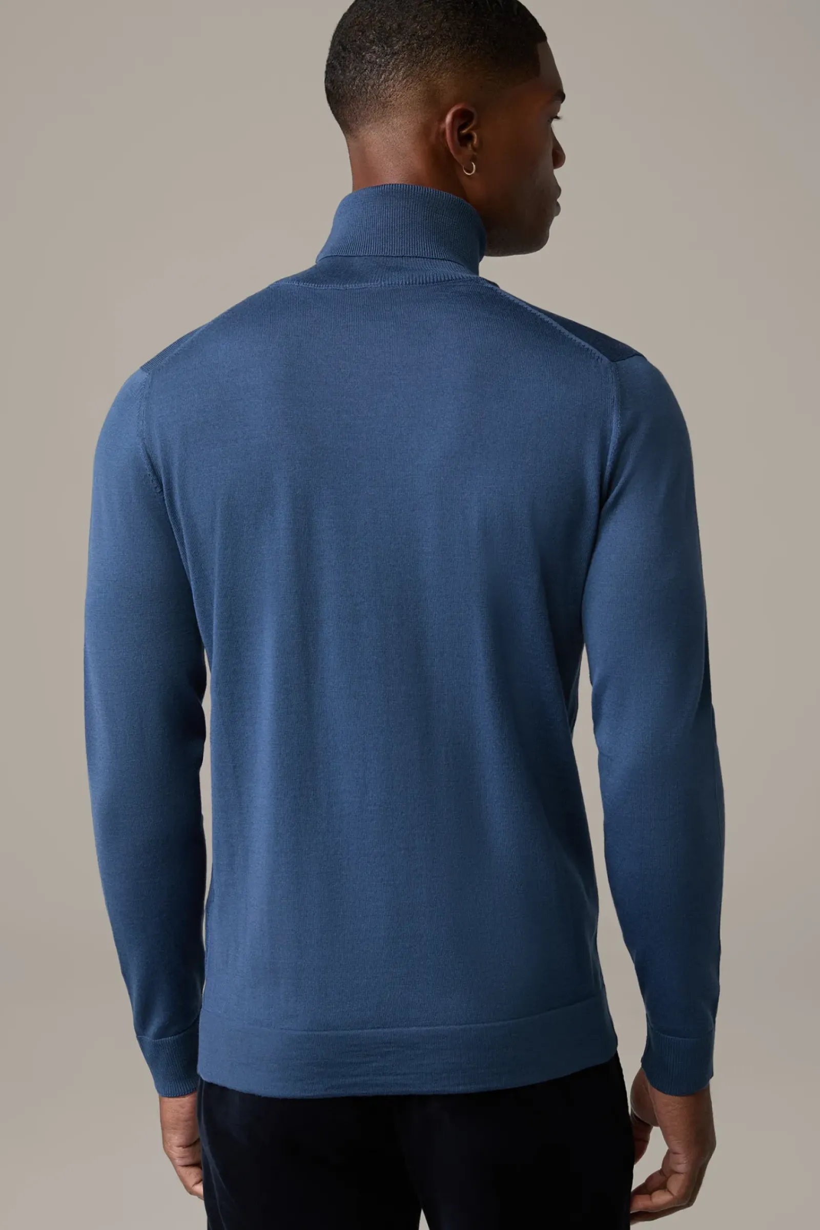 Klassisches Basic-Piece: Der Rollkragenpullover Marek mit Rippbündchen und feinen Ziernähten. Aus reiner Schurwolle.