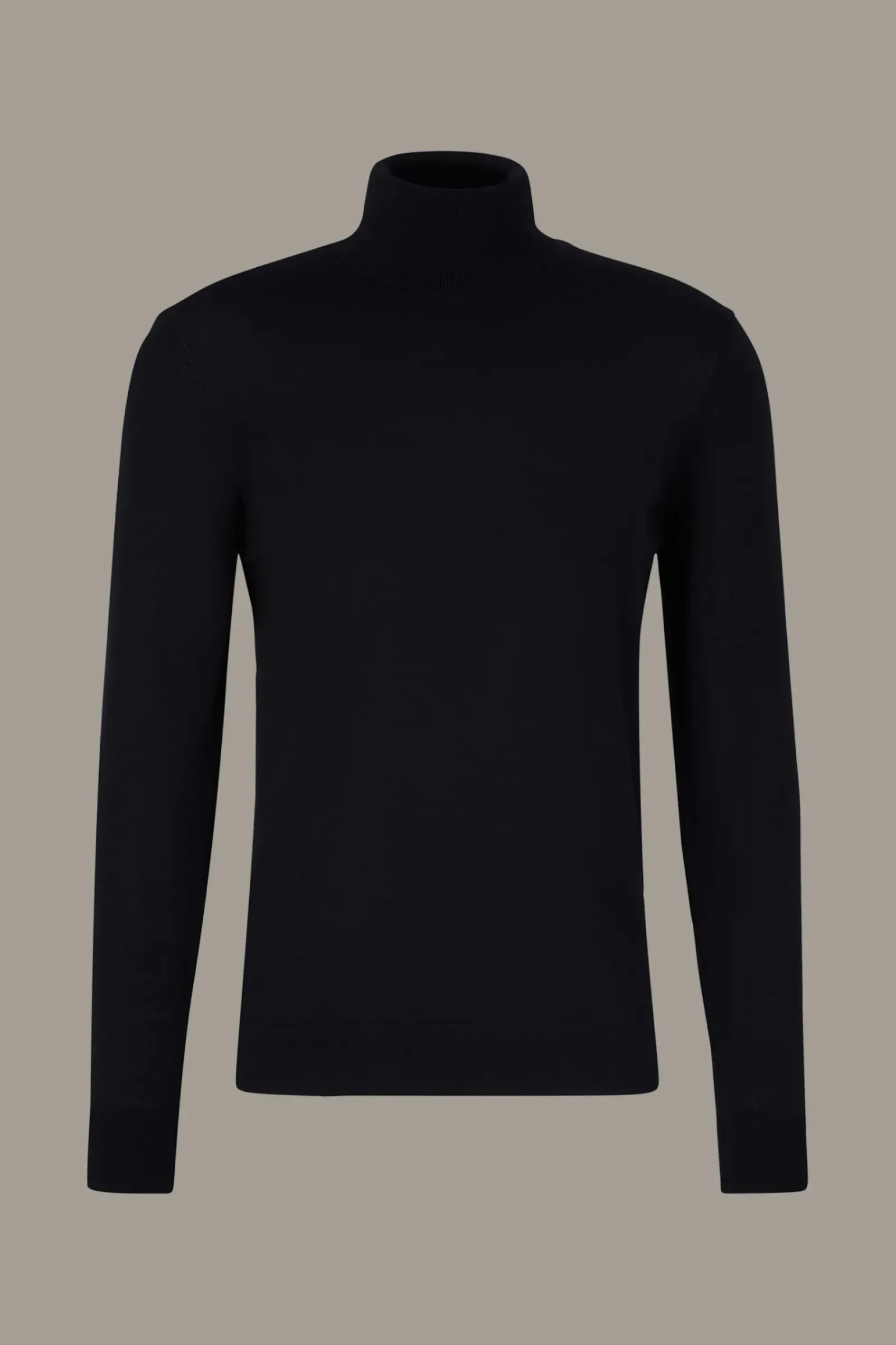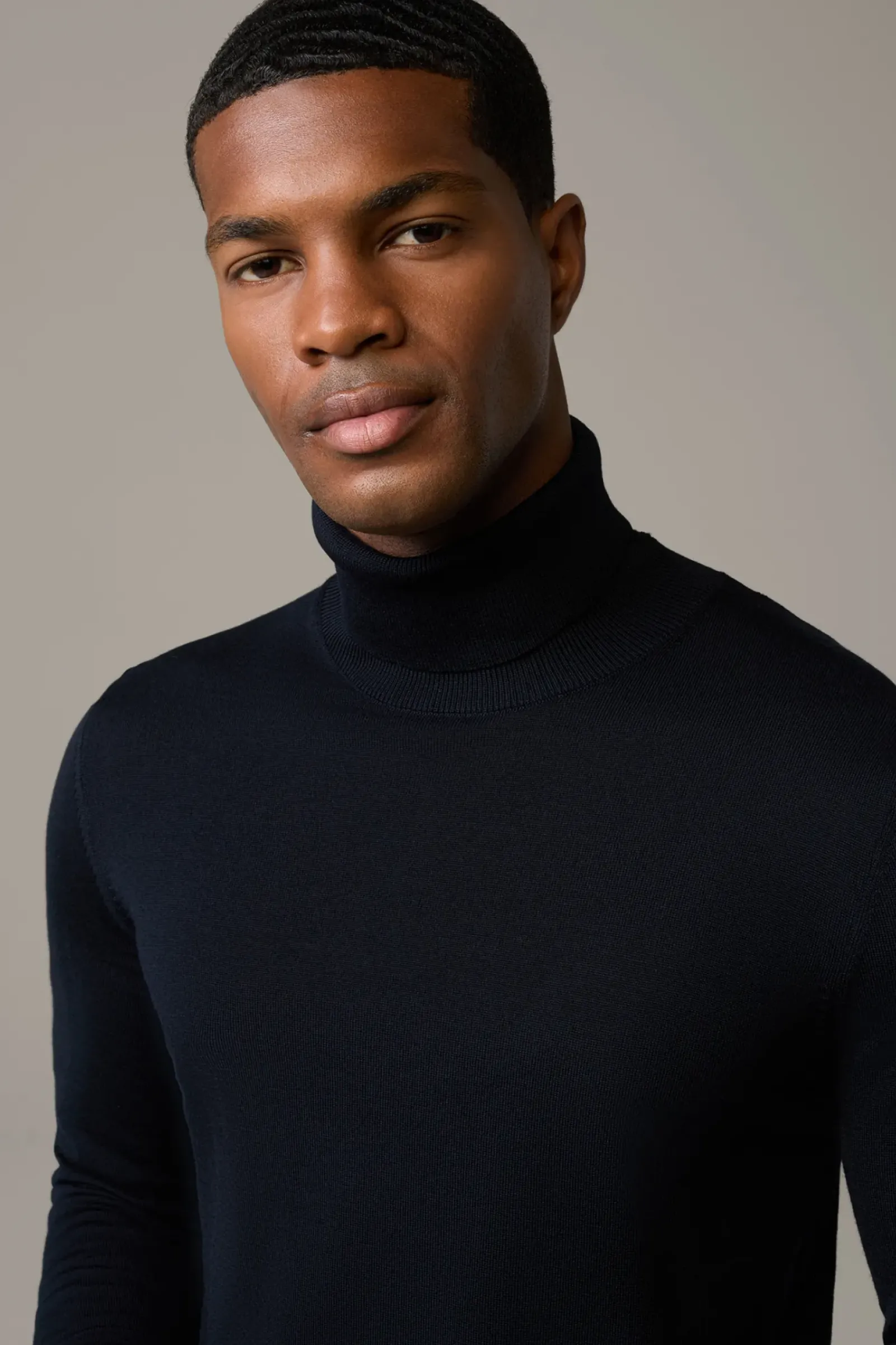 Klassisches Basic-Piece: Der Rollkragenpullover Marek mit Rippbündchen und feinen Ziernähten. Aus reiner Schurwolle.