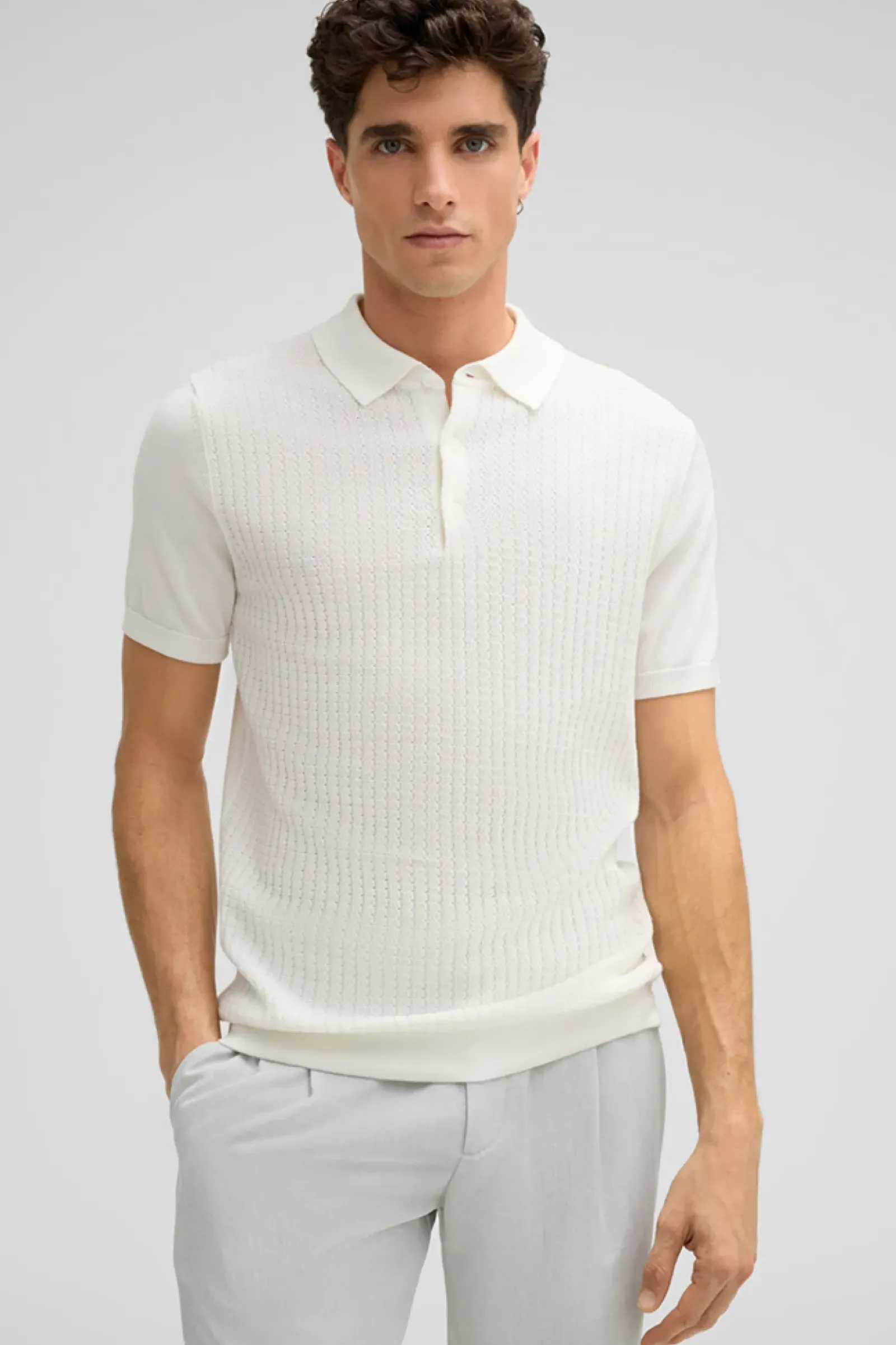 Im kontrastiven Strick-Design überzeugt das Poloshirt Adrian mit charakteristischem Kragen, Rippsäumen und feinen Ziernähten.