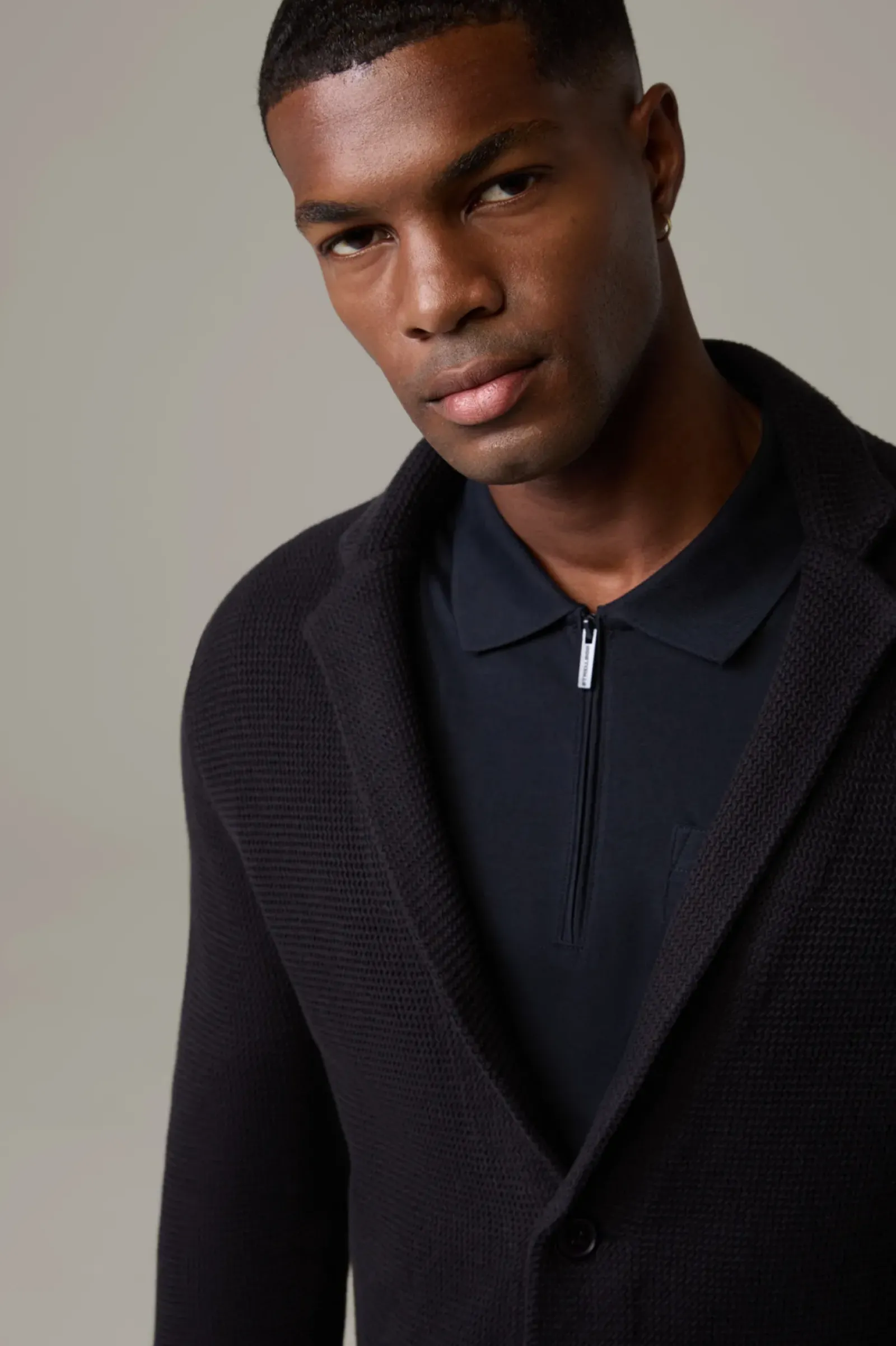 Lässiges Essential: die Strickjacke Varg im Sakko-Design mit Reverskragen, aufgesetzten Taschen und tonigen Knöpfen. Aus Cotton-Wool-Mix.