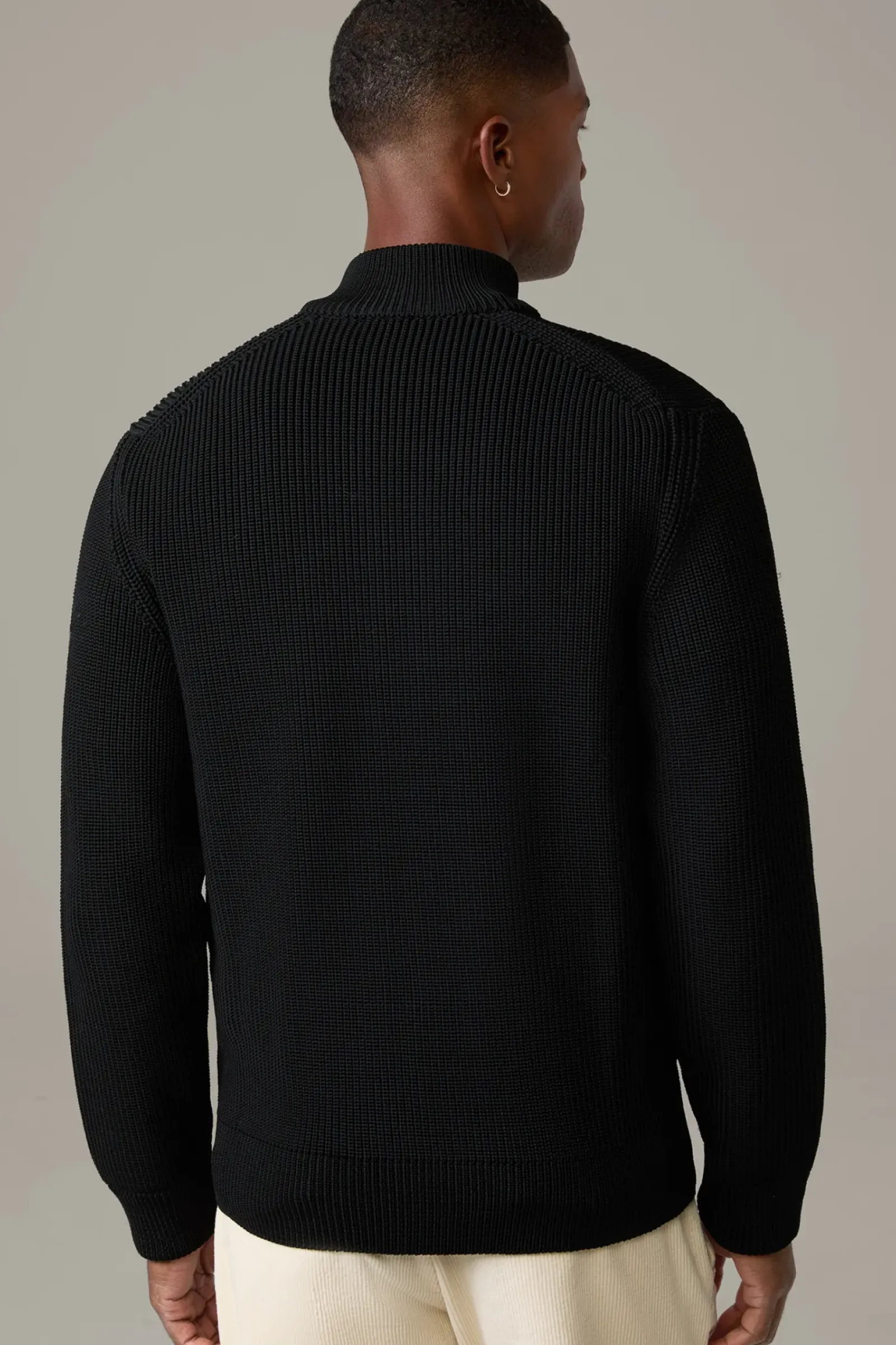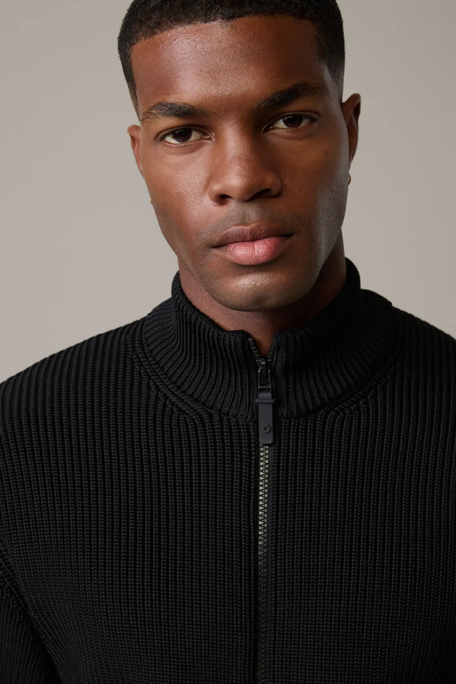 Begeistert als modernes Style-Update: die Strickjacke Victor mit geripptem Stehkragen, durchgehendem Zipper und Leistentaschen. Mit Rubber-Logo-Flag.
