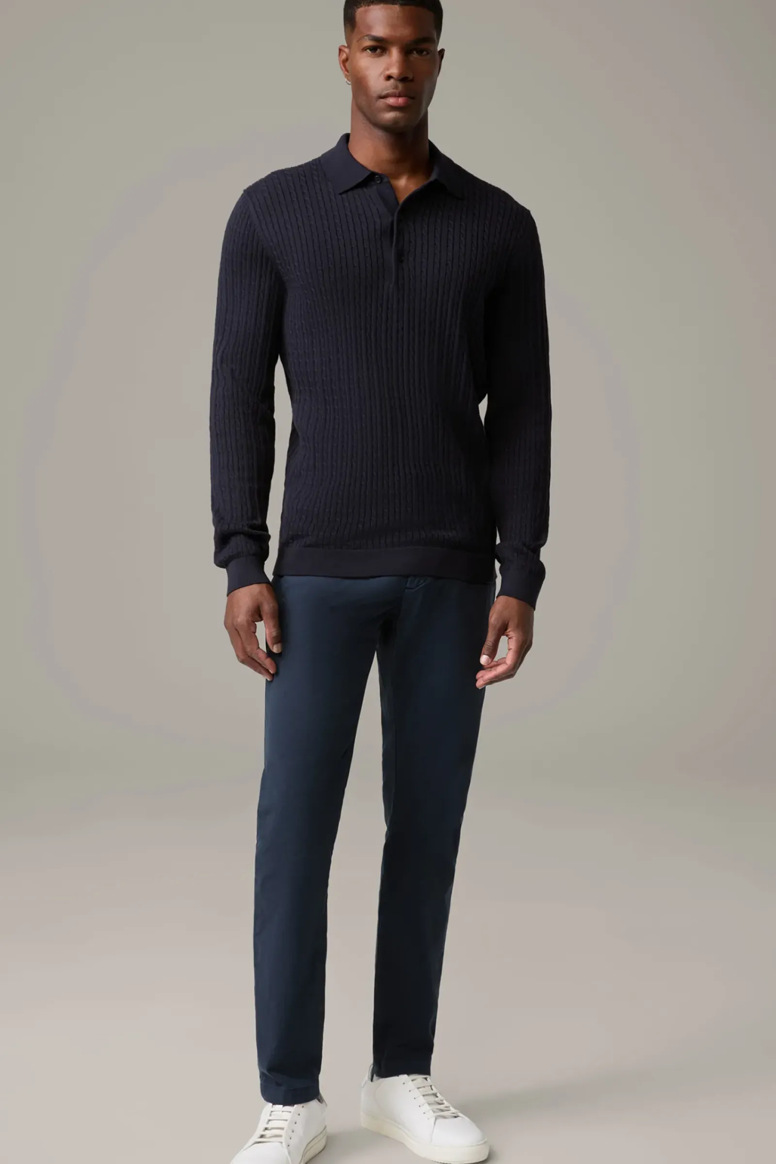 Durch den Polokragen und eine kurze Knopfleiste erhält der Strickpullover Kito einen lässigen Style-Twist, ergänzt durch das moderne Strukturmuster. Aus reinem Cotton.