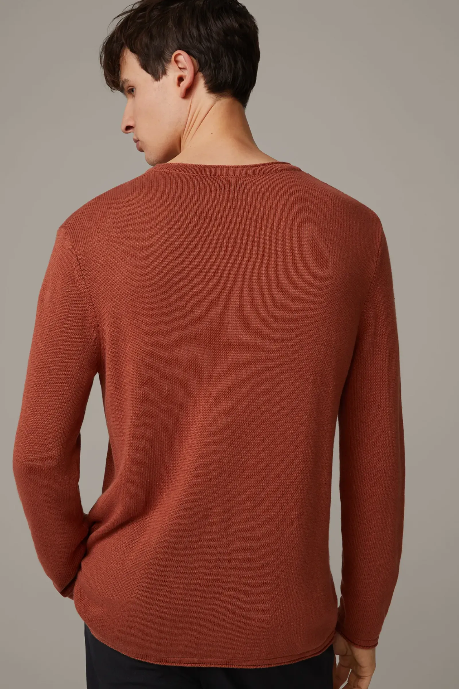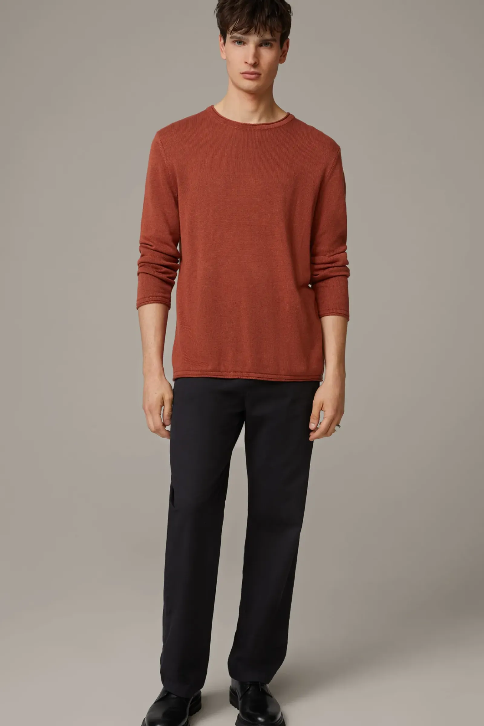 Fein gestrickter Allrounder: der Pullover Levi im leichten Leinen-Modal-Mix mit Rundhalsausschnitt und Raglanärmeln. Mit Rollsäumen.