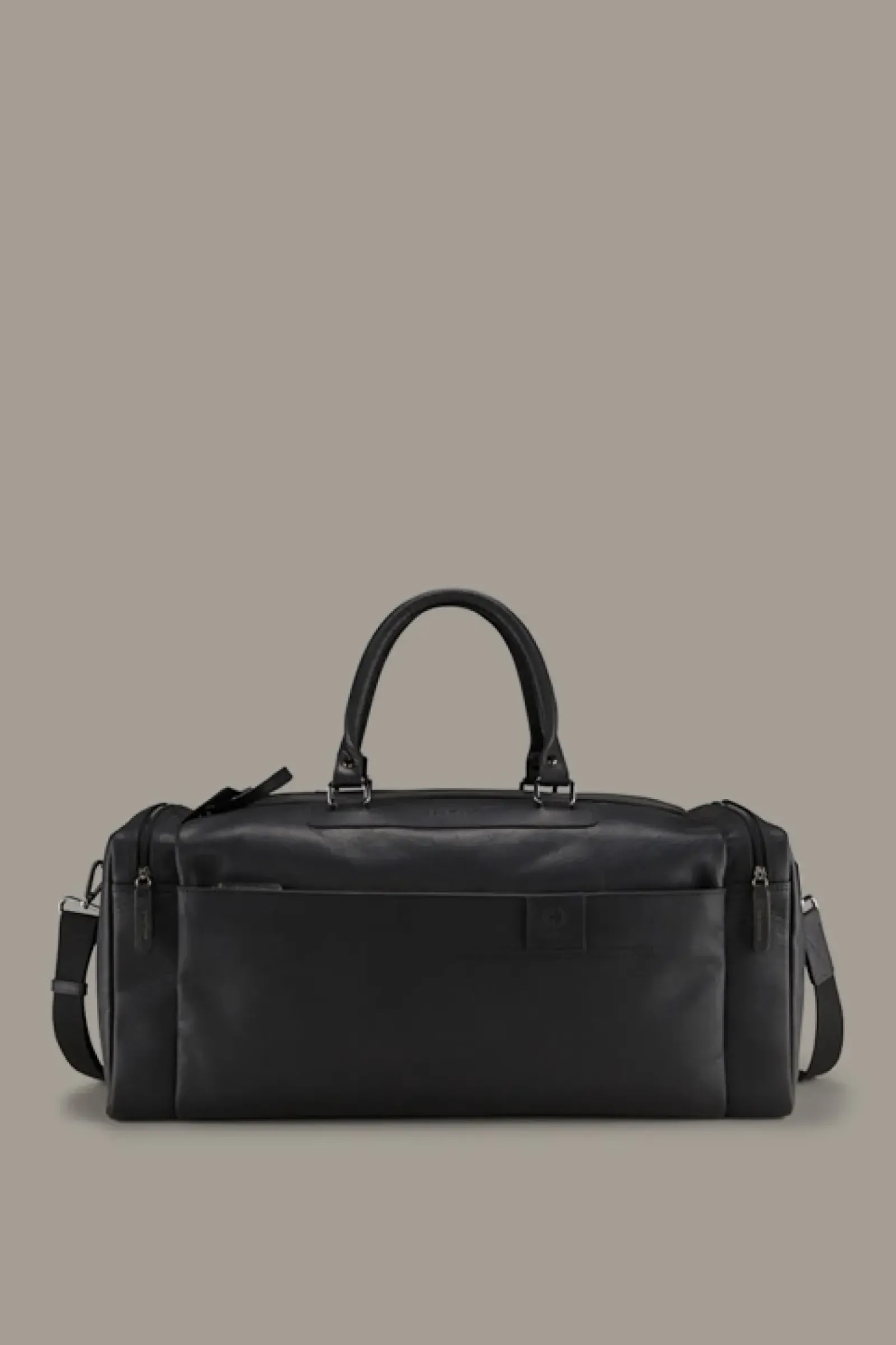 Stilvolles Reise-Accessoire mit Vintage-Charakter – die geräumige Reisetasche Hyde Park aus genarbtem Echtleder zeigt sich in klassischem Design mit diversen Taschen und dezenten Glanz-Details. Tragevarianten optional in der Hand oder über der Schulter.