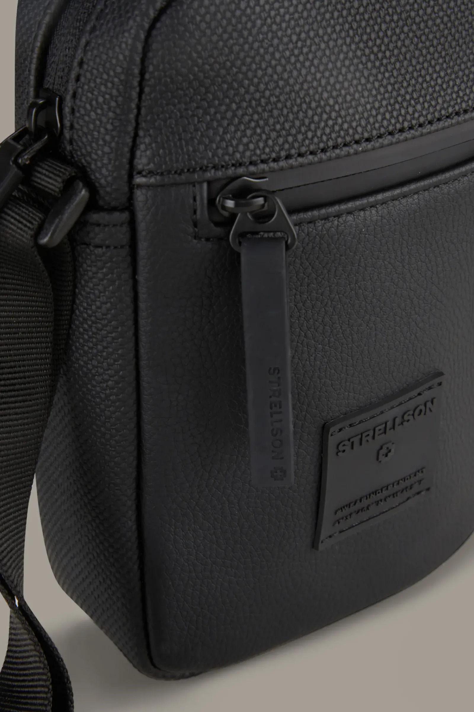 Highlight für sportive Looks: die Schultertasche Westferry Clint aus strukturiertem Faux-Leder mit klassisch justierbarem Riemen, Signature-Patch und funktionalen Fächern.