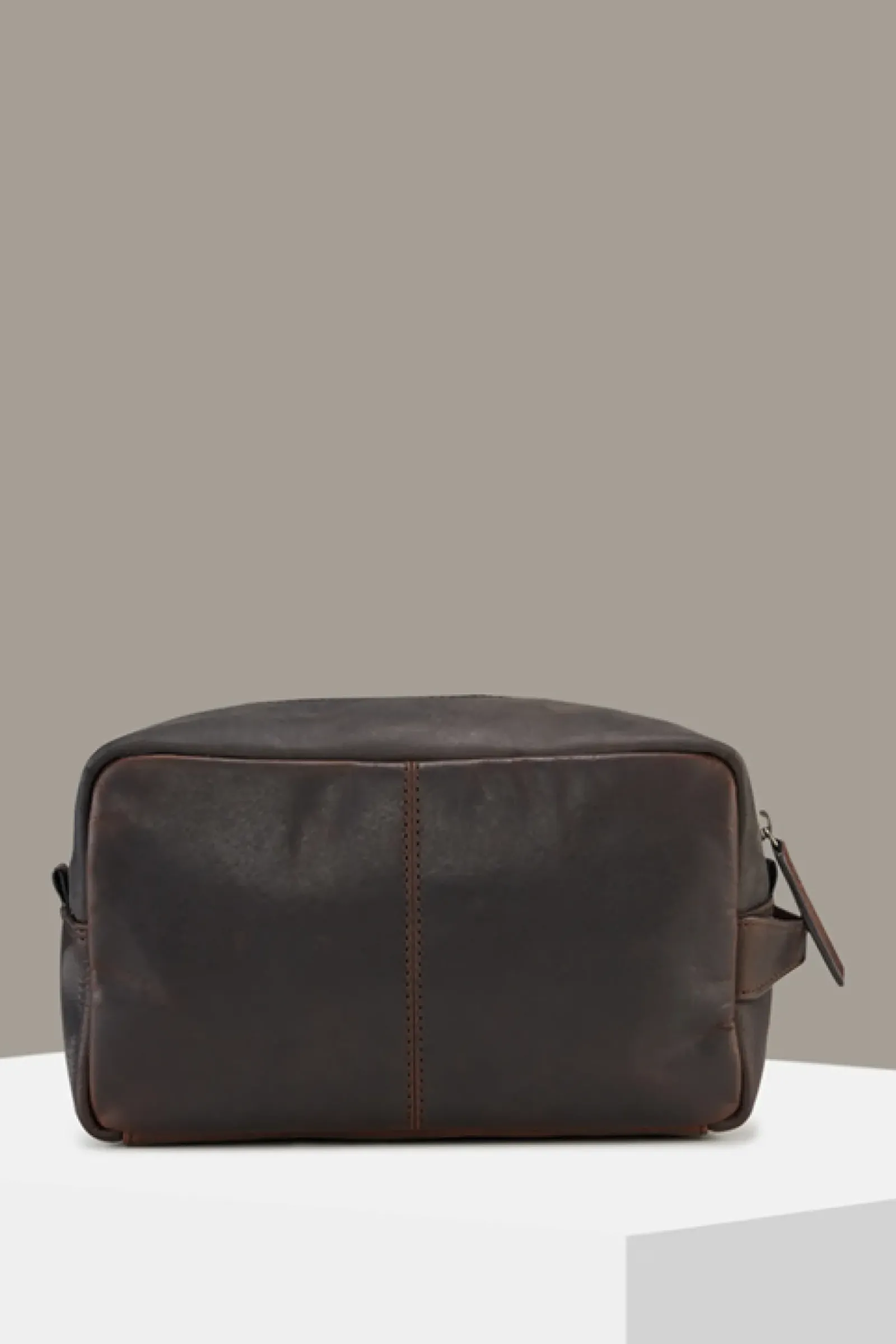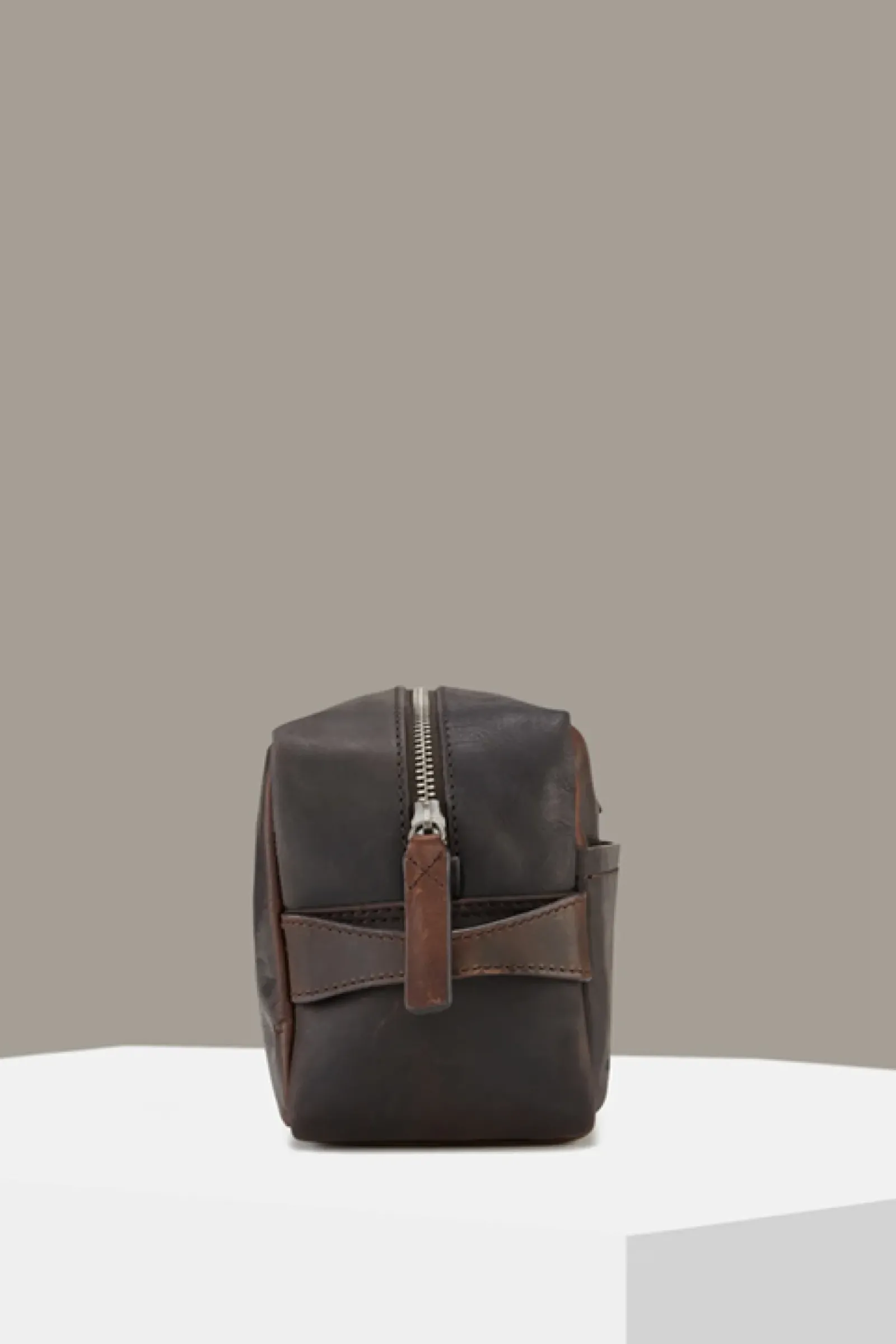 Begeistert aus edlem Leder: die Kulturtasche Brick Lane Dick im rechteckigen Format mit ausreichend Strauraum für Bad-Essentials. Mit Logo-Prägung.