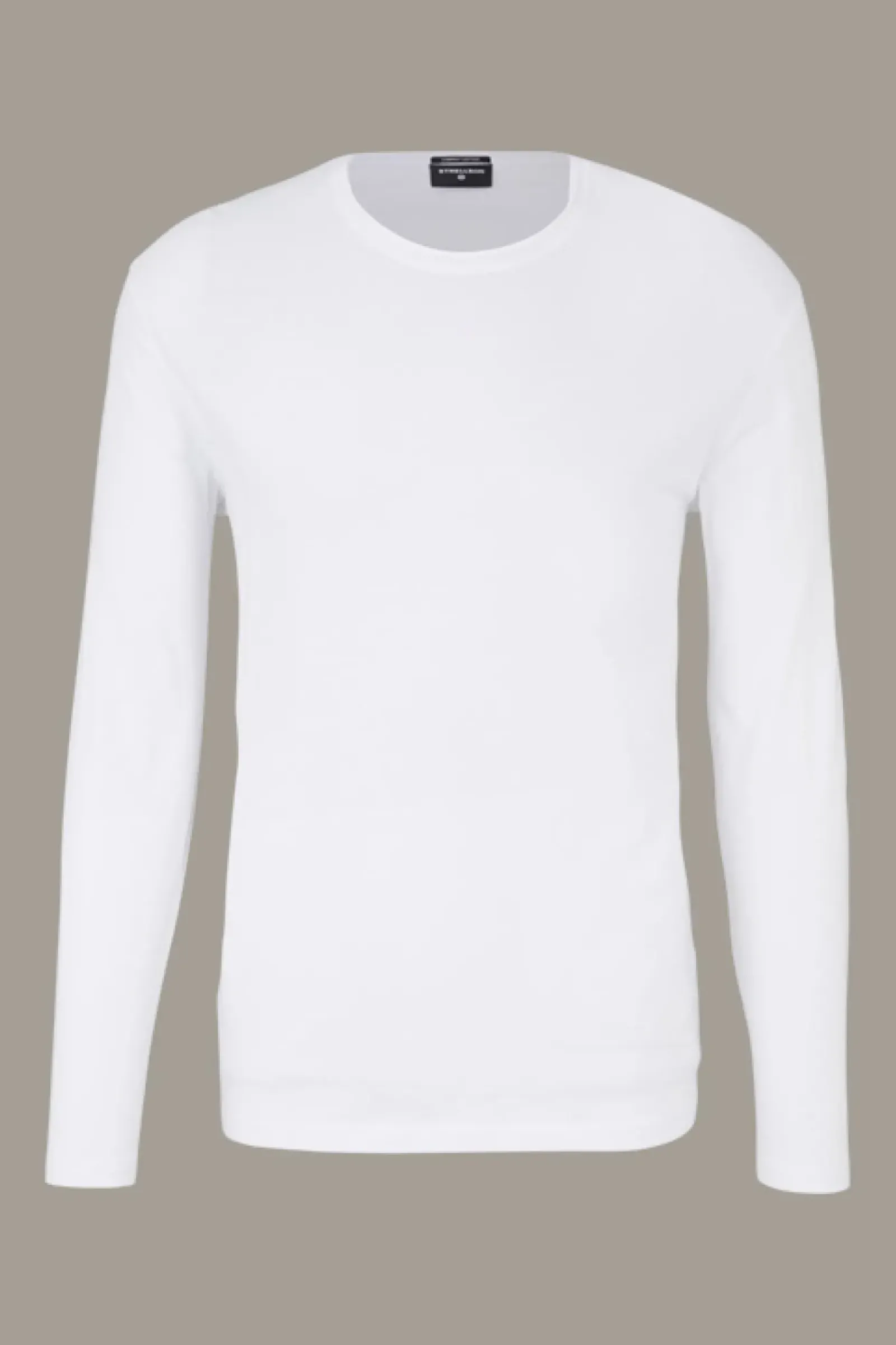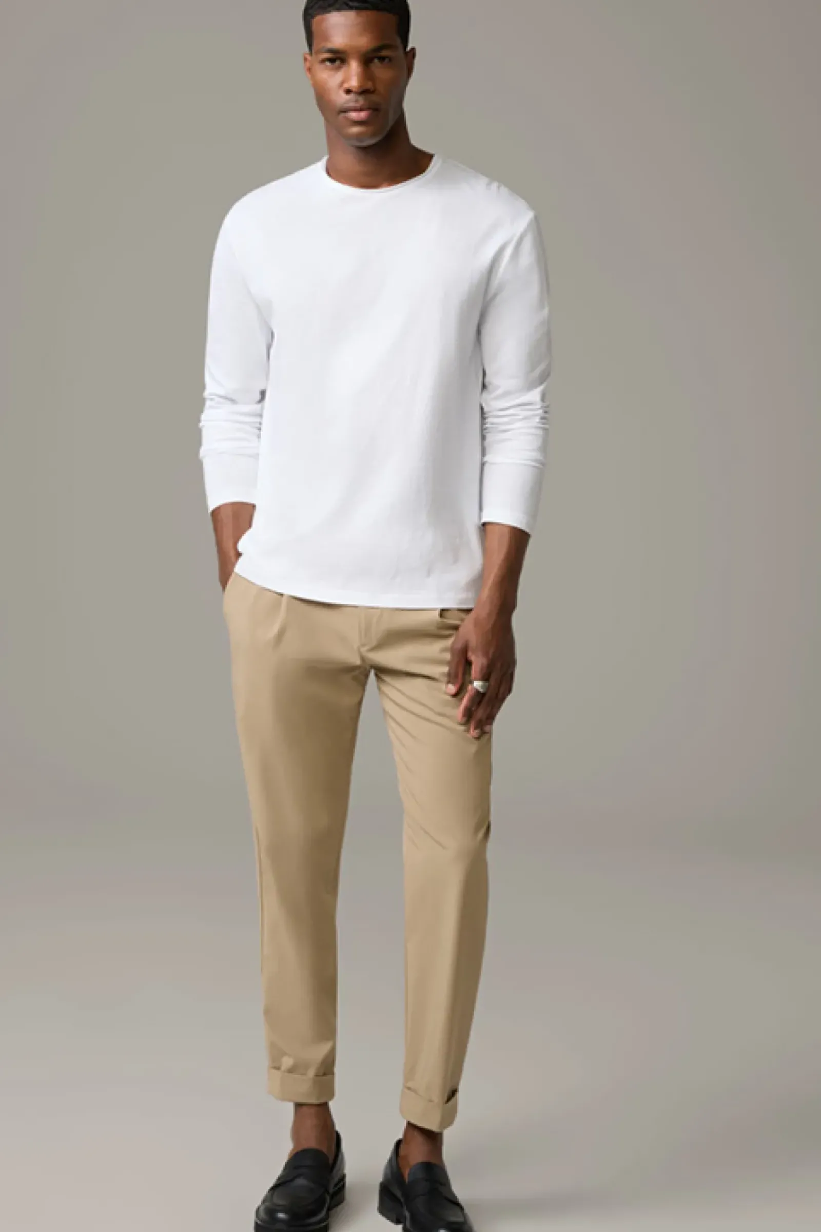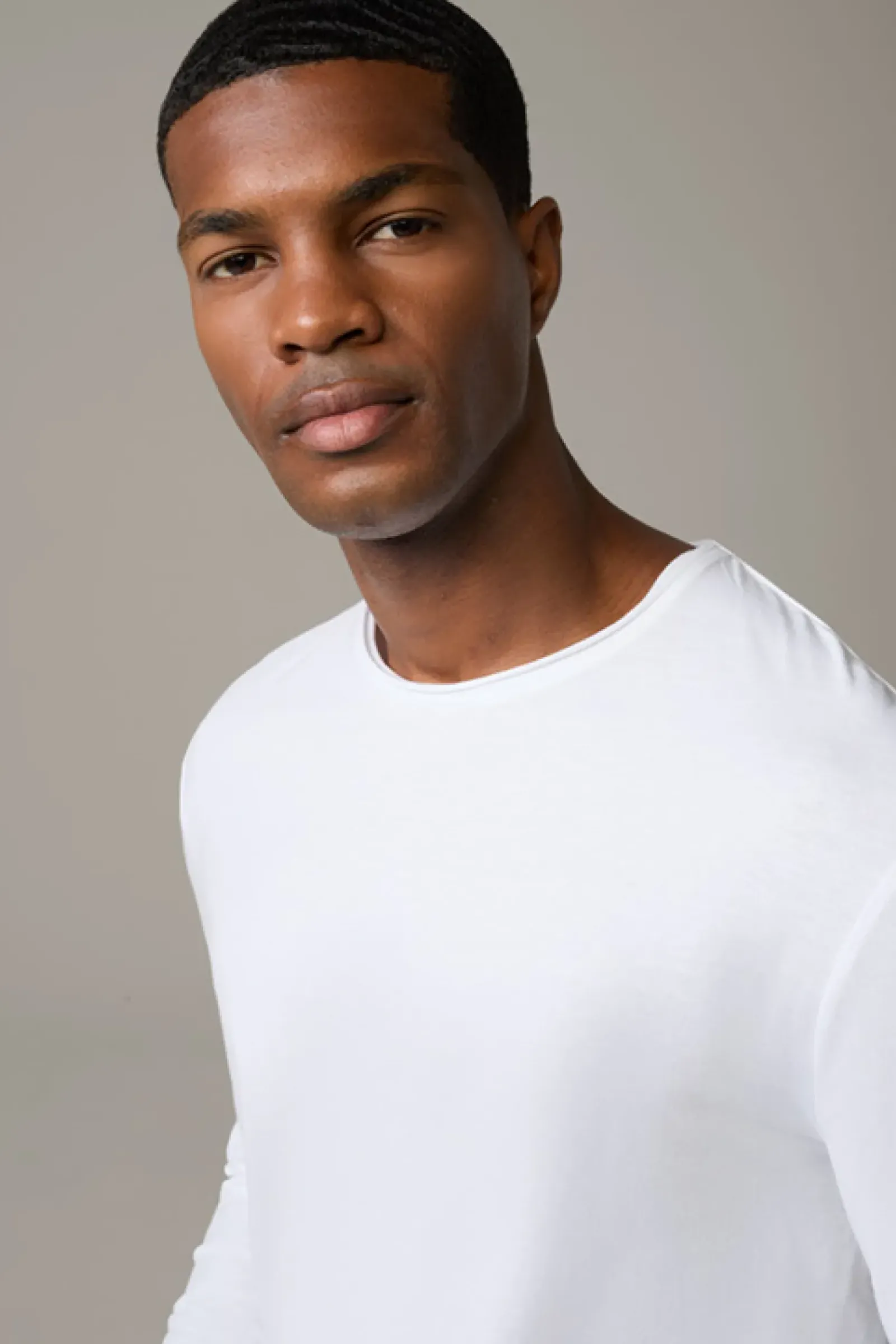 Perfektes Layering-Match: das Longsleeve Tyler aus Compact Cotton mit Rollsaumkante am Rundhalsausschnitt, ergänzt durch ein rückseitiges Rubber-Patch.