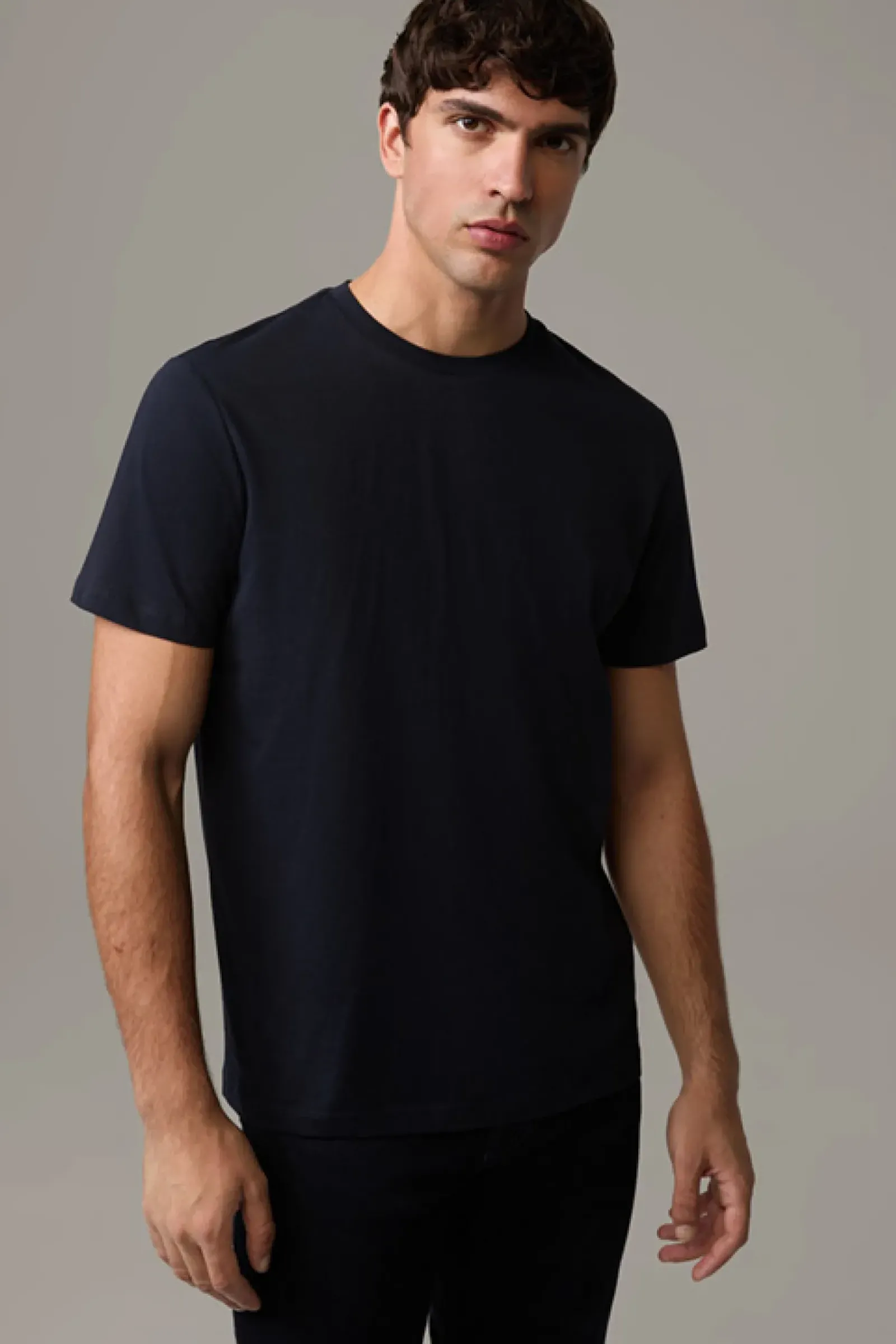 Cooler Fashion-Allrounder: das T-Shirt Clark aus dicht gewebtem Compact Cotton mit Rundhalsausschnitt und doppelt vernähten Abschlüssen.