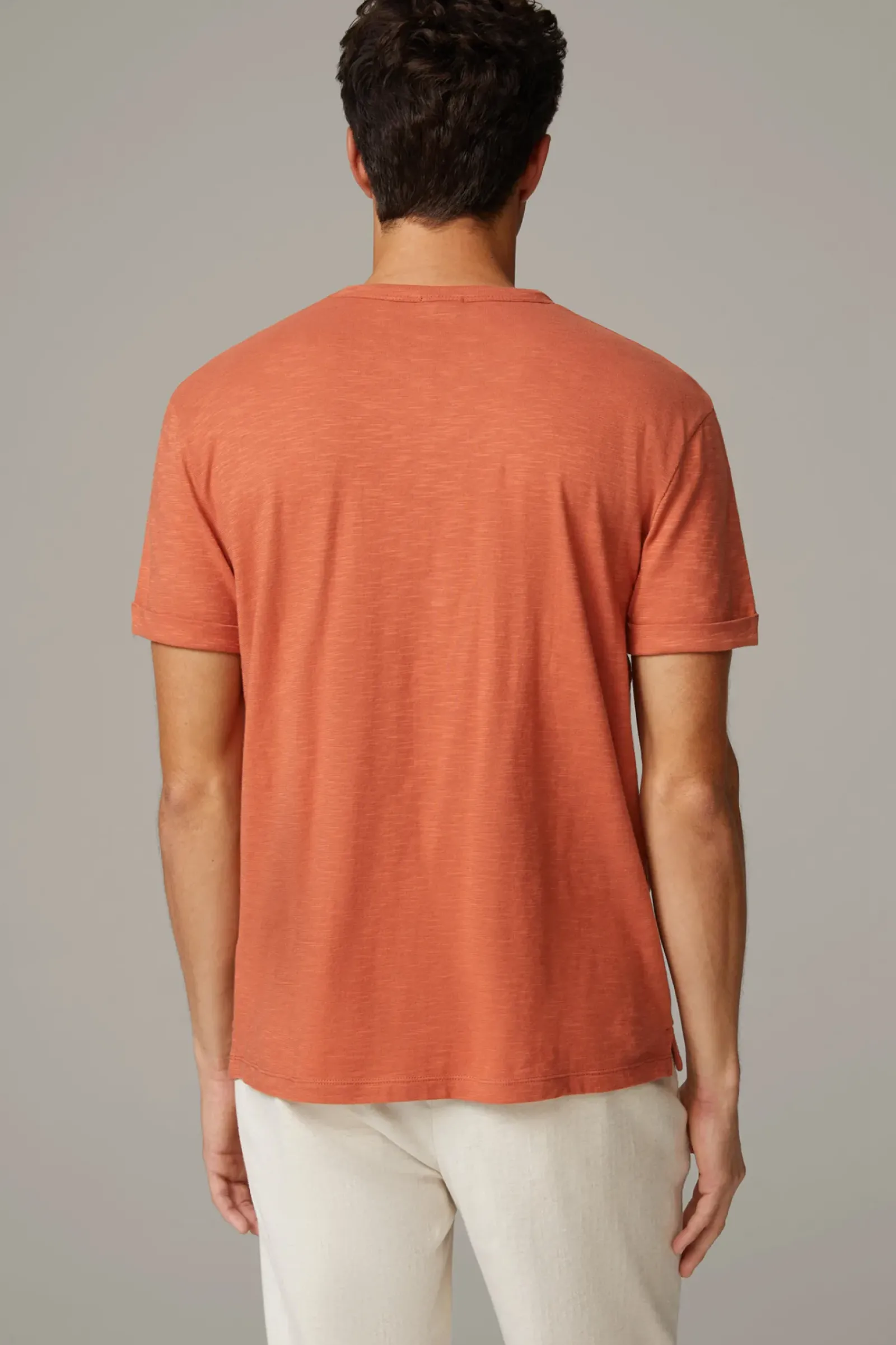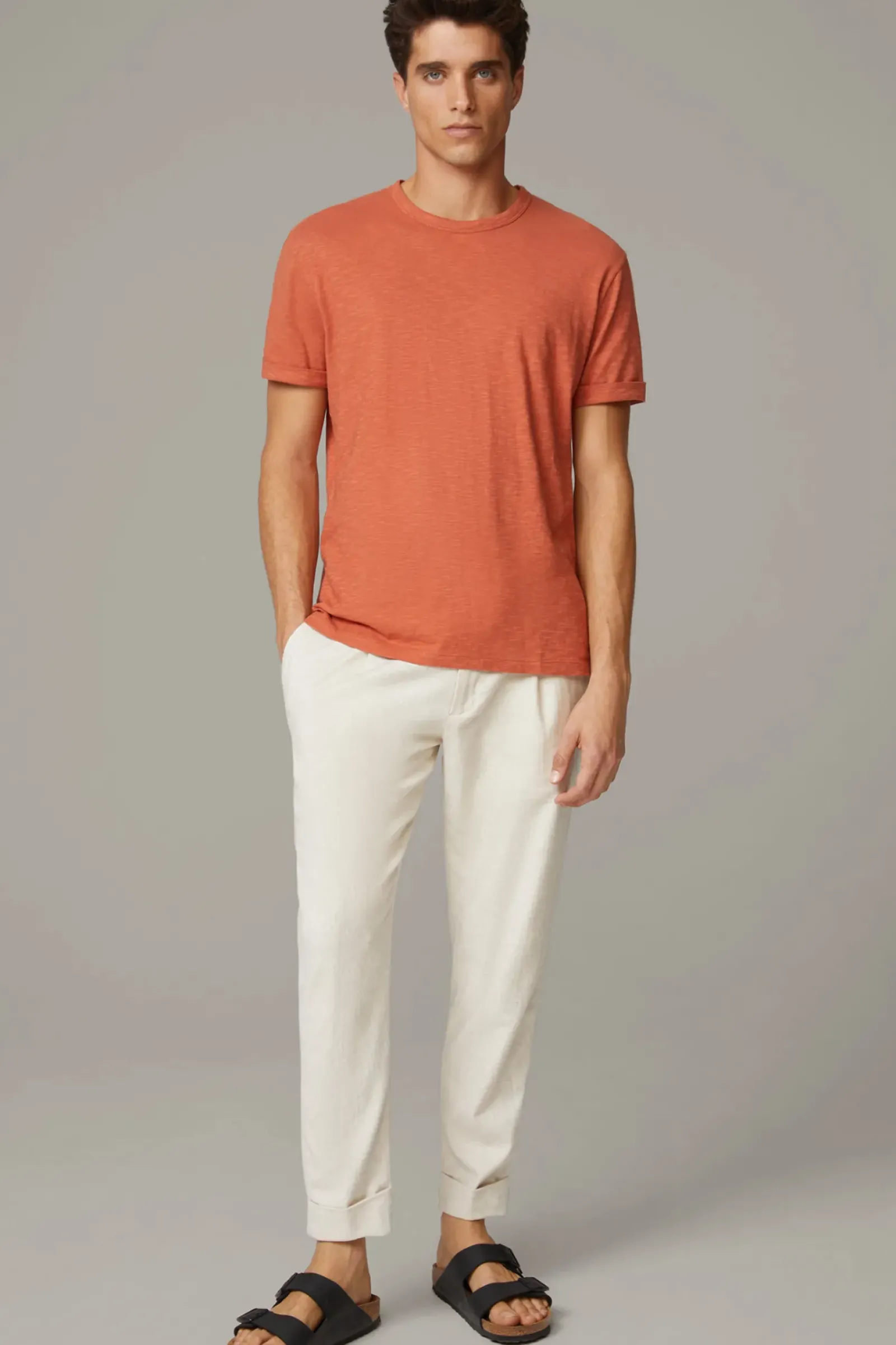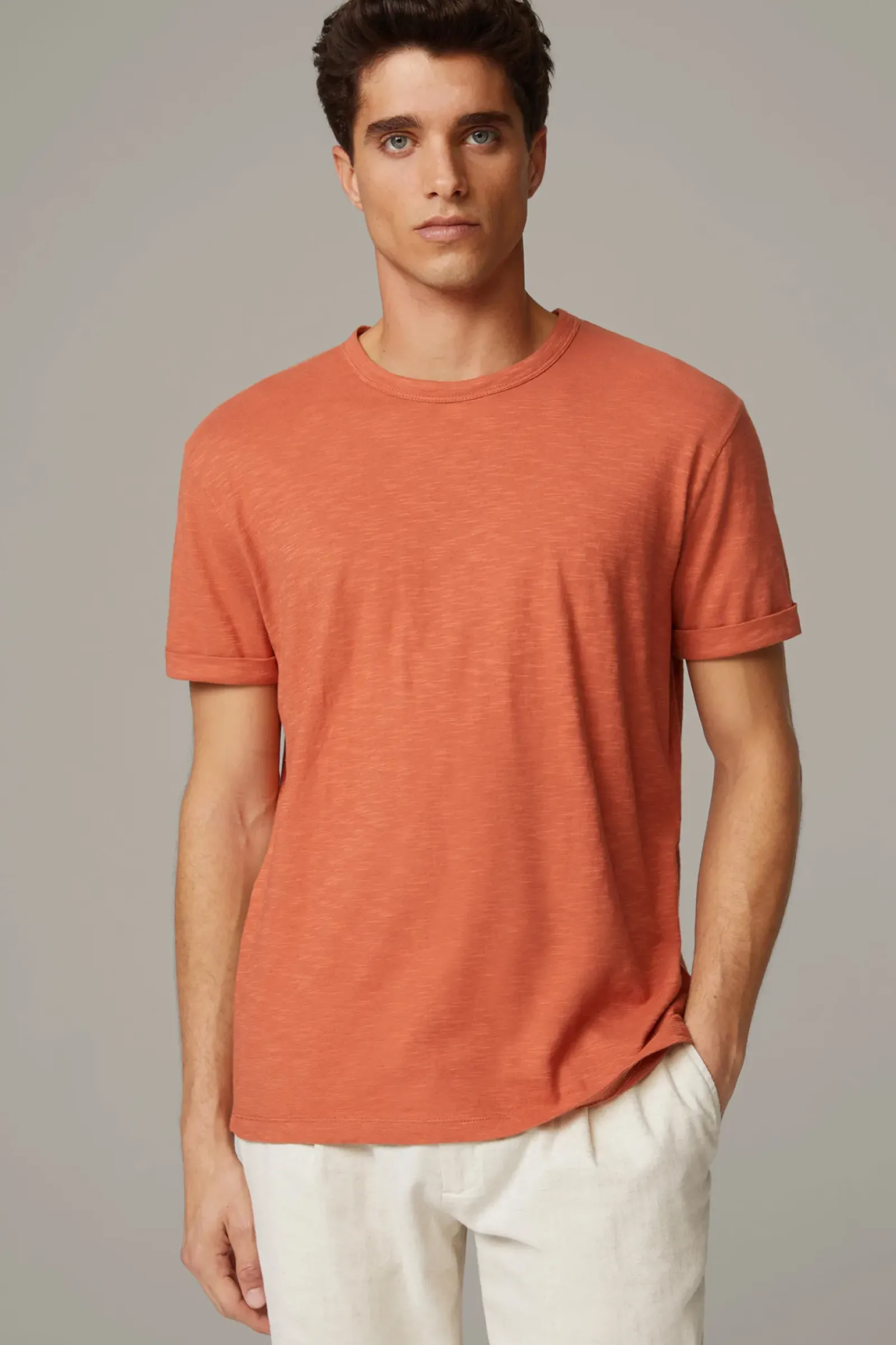 Basic-Piece für vielseitige Outfits: das T-Shirt Colin mit Rundhalsausschnitt und fixiertem Umschlag an den Armabschlüssen. Pure Baumwolle in Jersey-Verarbeitung.