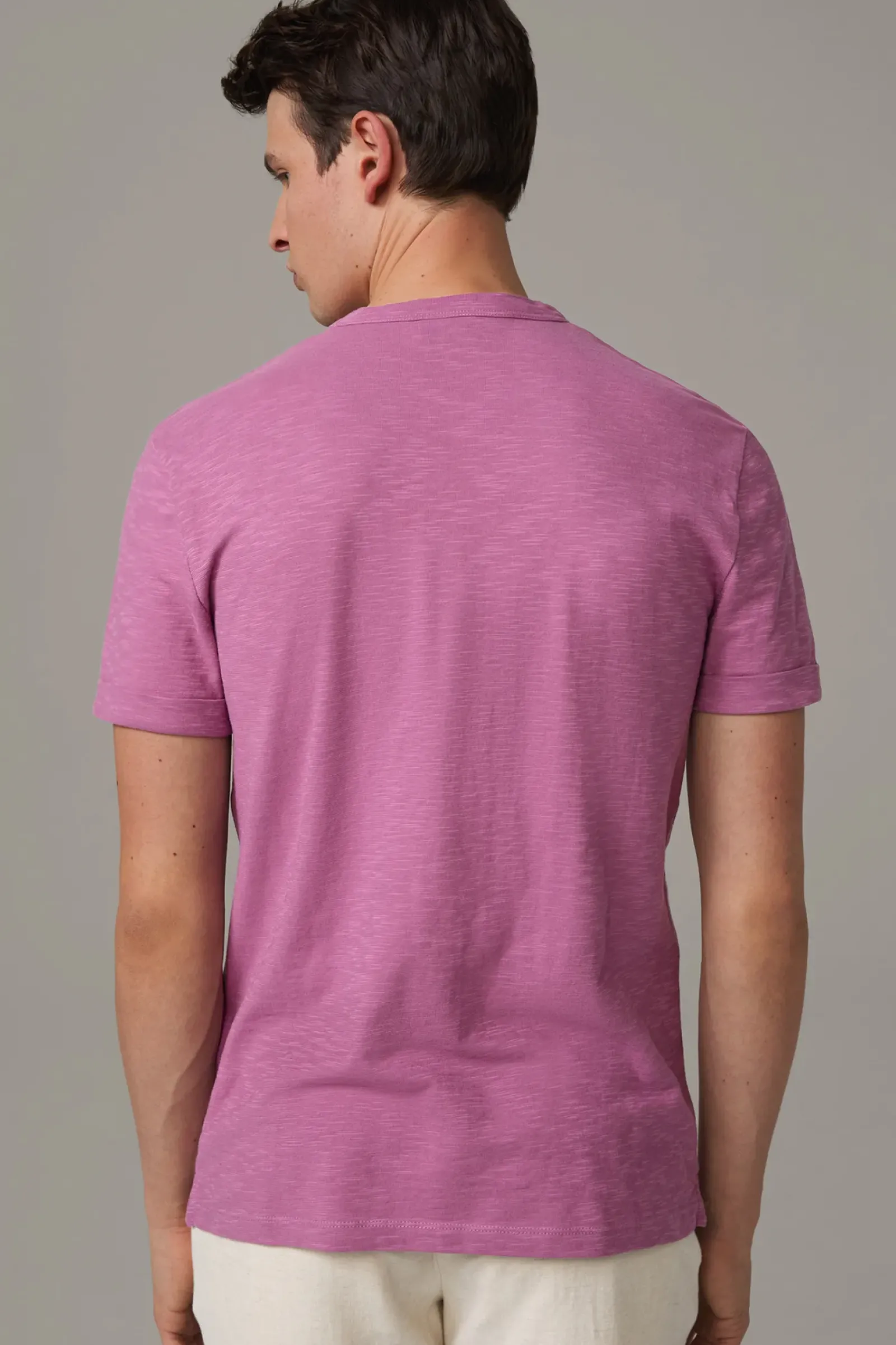 Basic-Piece für vielseitige Outfits: das T-Shirt Colin mit Rundhalsausschnitt und fixiertem Umschlag an den Armabschlüssen. Pure Baumwolle in Jersey-Verarbeitung.