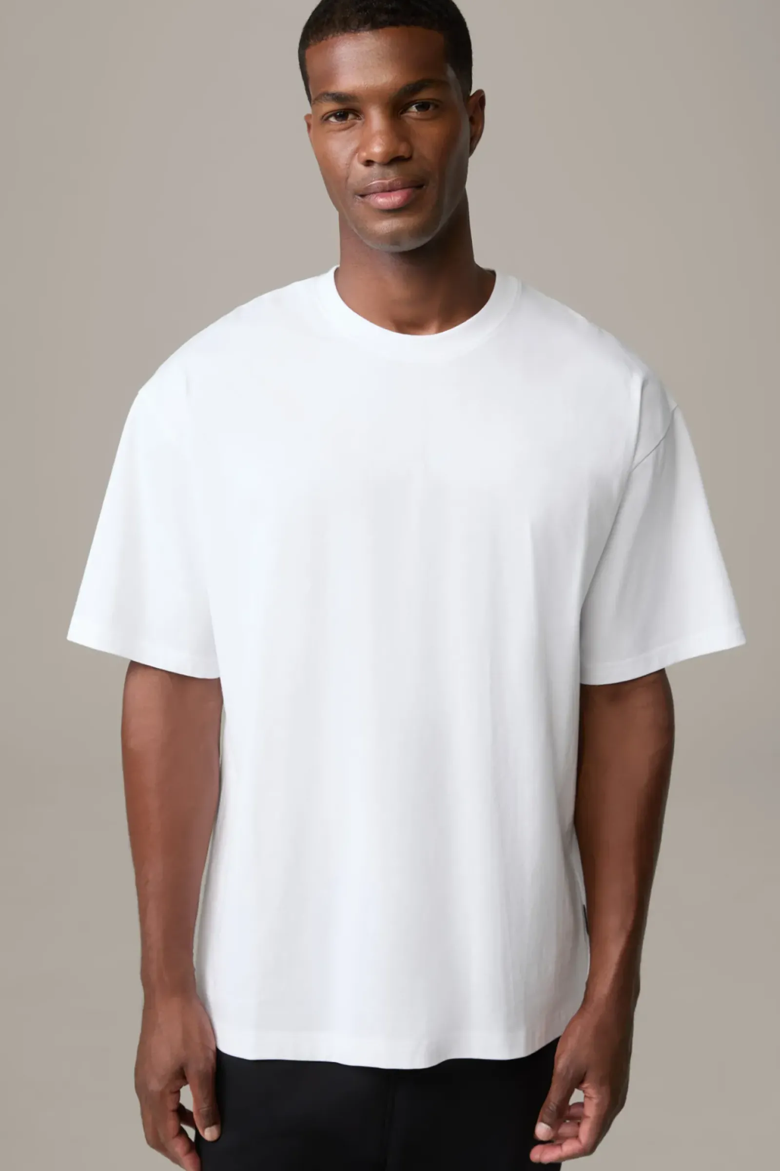 Basic Allrounder: T-Shirt Geza überzeugt mit Rundhalsausschnitt und doppelt vernähtem Saumabschluss, ikonisch ergänzt durch Rubber-Logo-Details.