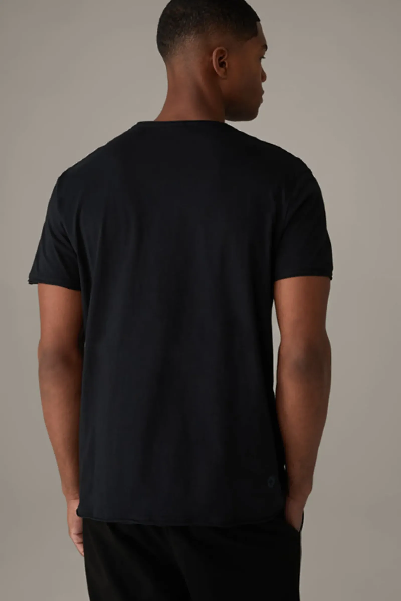 Authentisches Kombi-Piece: das T-Shirt Tyler mit Rundhalsausschnitt und offenen Rollsäumen. Aus dichtem Compact Cotton in Jersey-Qualität.