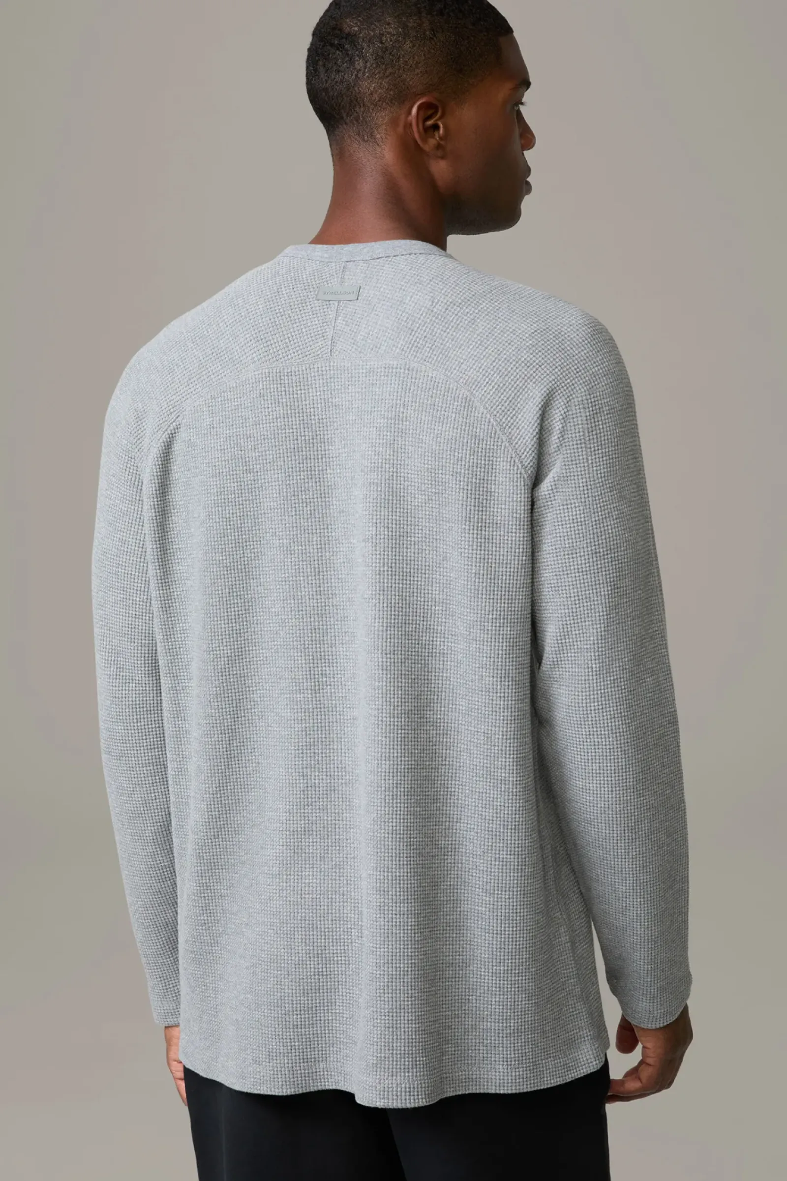 Allrounder mit Twist: das Longsleeve Walt im Cotton Mix mit Waffelstruktur und einem klassischen Rundhalsausschnitt. Rückseite mit Rubber-Logo und Ziernaht.