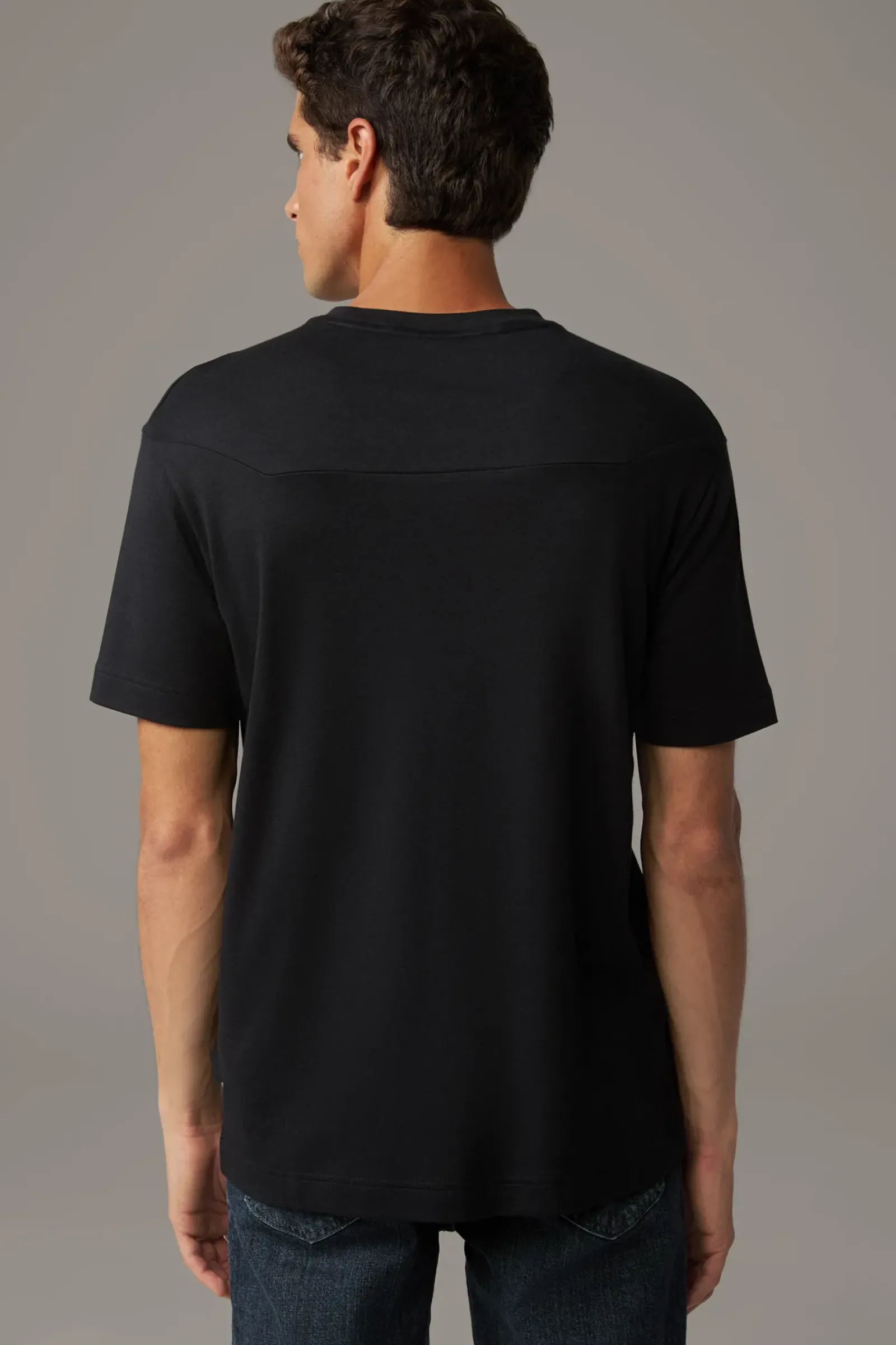 Basic-Piece: das T-Shirt Artis aus Baumwoll-Mix mit Rubber-Logo-Patch. Der Rundhalsausschnitt, Rubber-Logo-Details und der kontrastive Schriftzug ergänzen das urbane Piece.