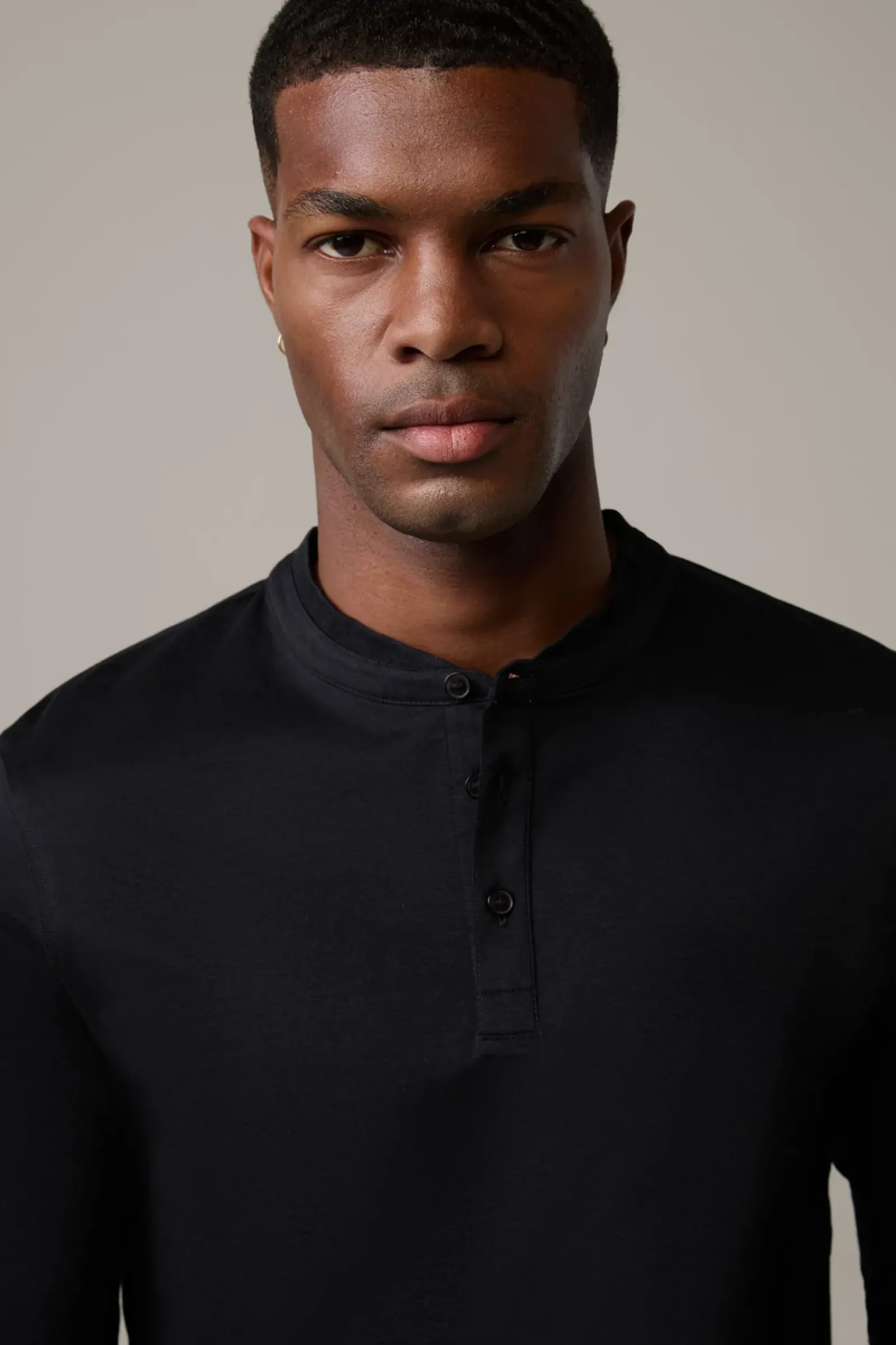 Urbaner Allrounder: das Poloshirt Pepe mit modernem Stehkragen, langen Ärmeln und Rippbündchen. Aus reiner Baumwolle.