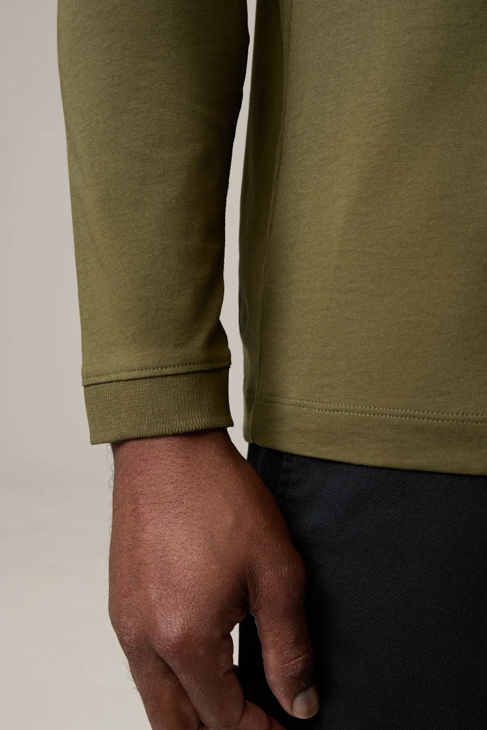 Komfortables Essential aus reinem Cotton: das Longsleeve Clark mit Polokragen, Zipper und aufgesetzter Brusttasche.