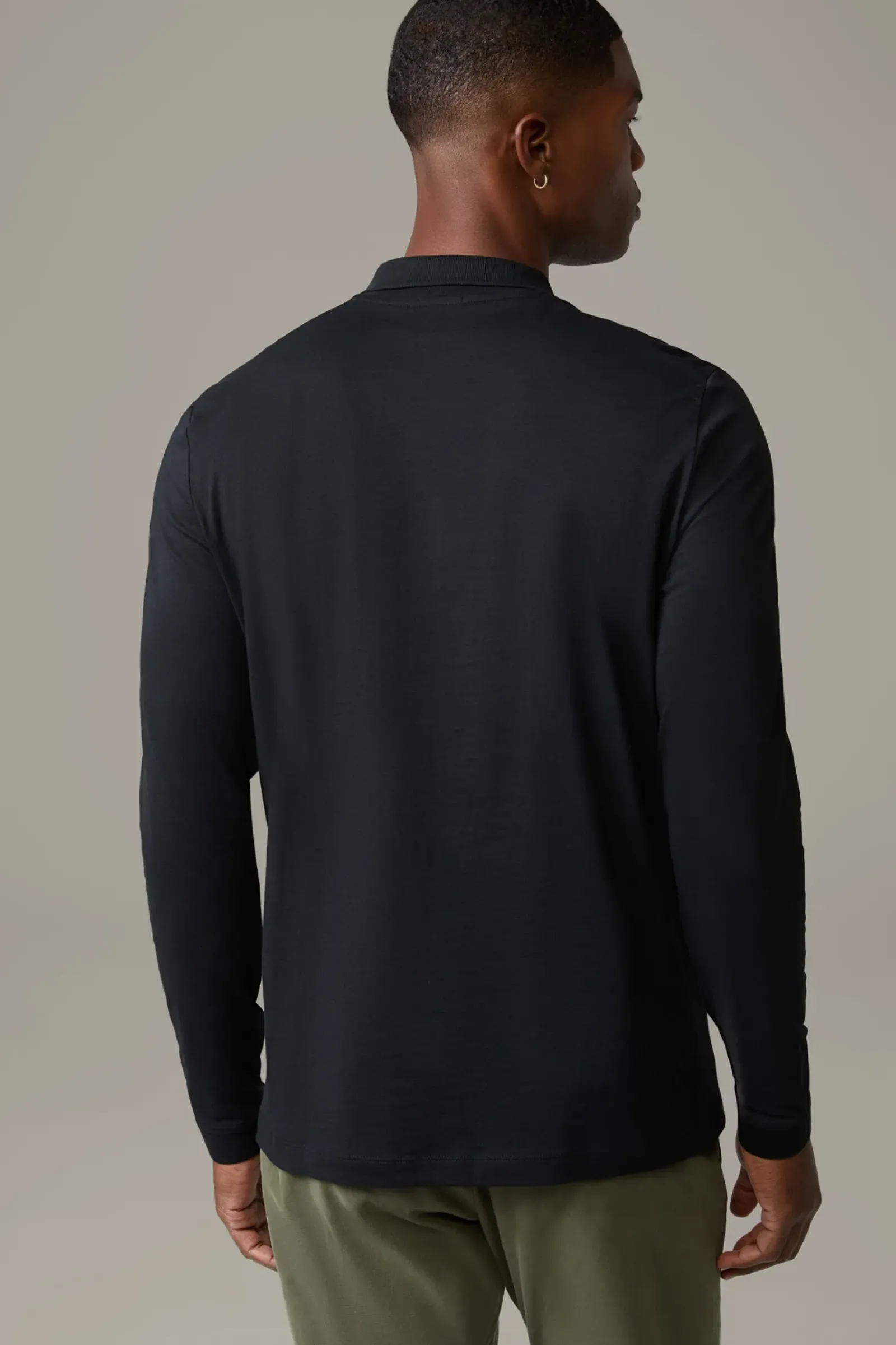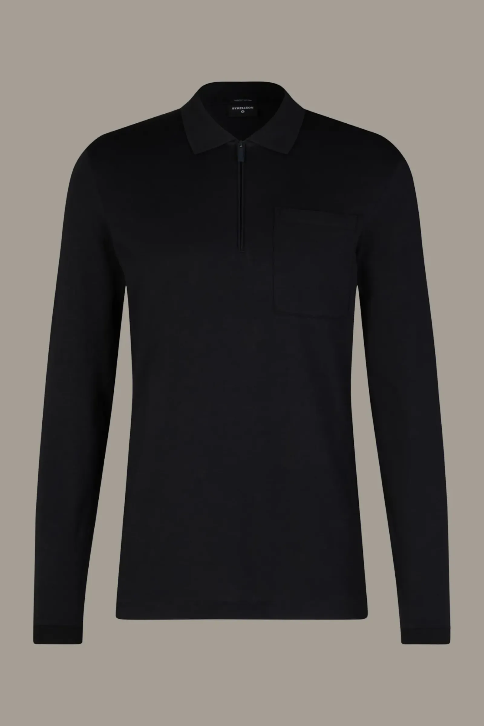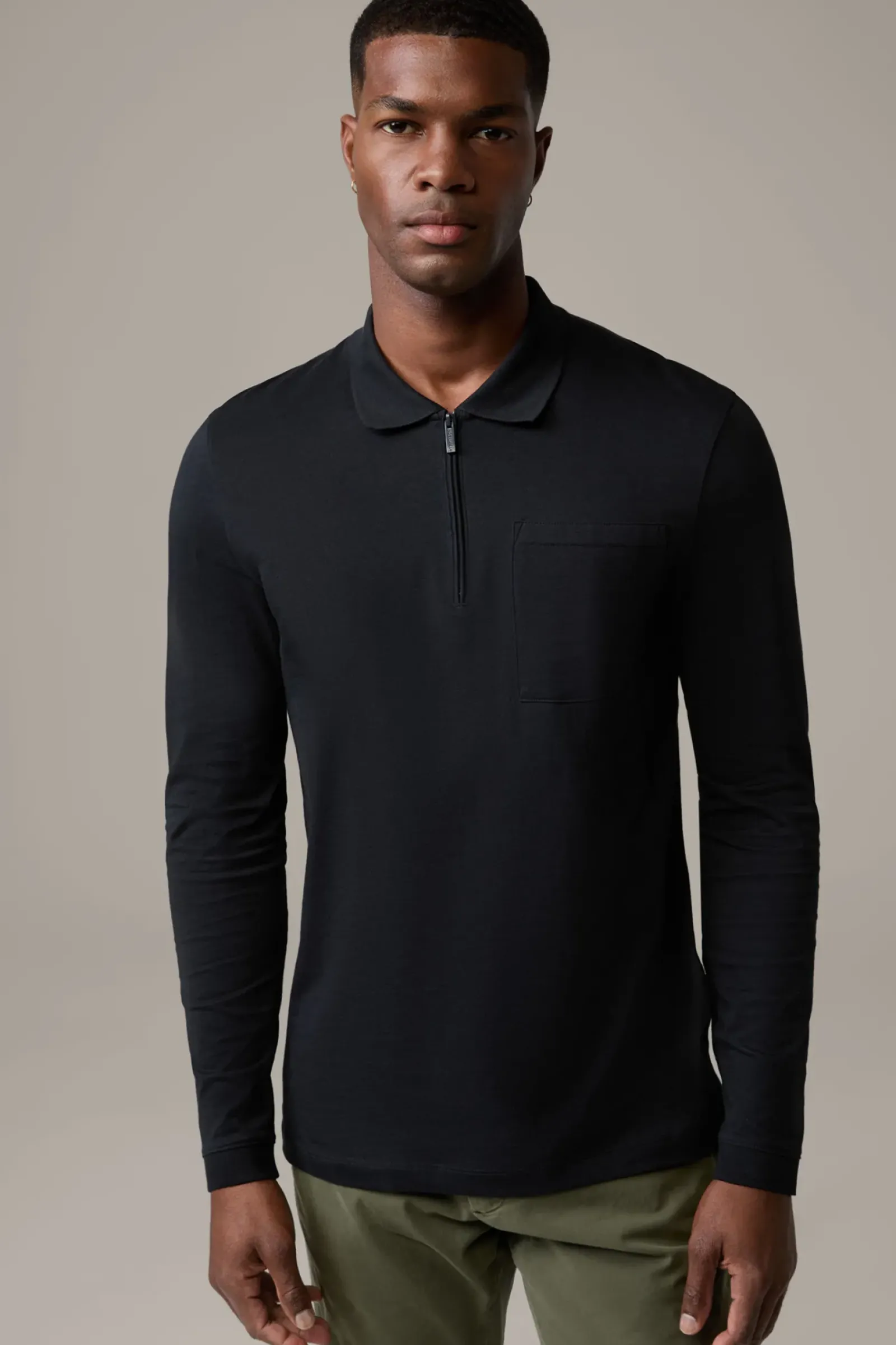 Komfortables Essential aus reinem Cotton: das Longsleeve Clark mit Polokragen, Zipper und aufgesetzter Brusttasche.