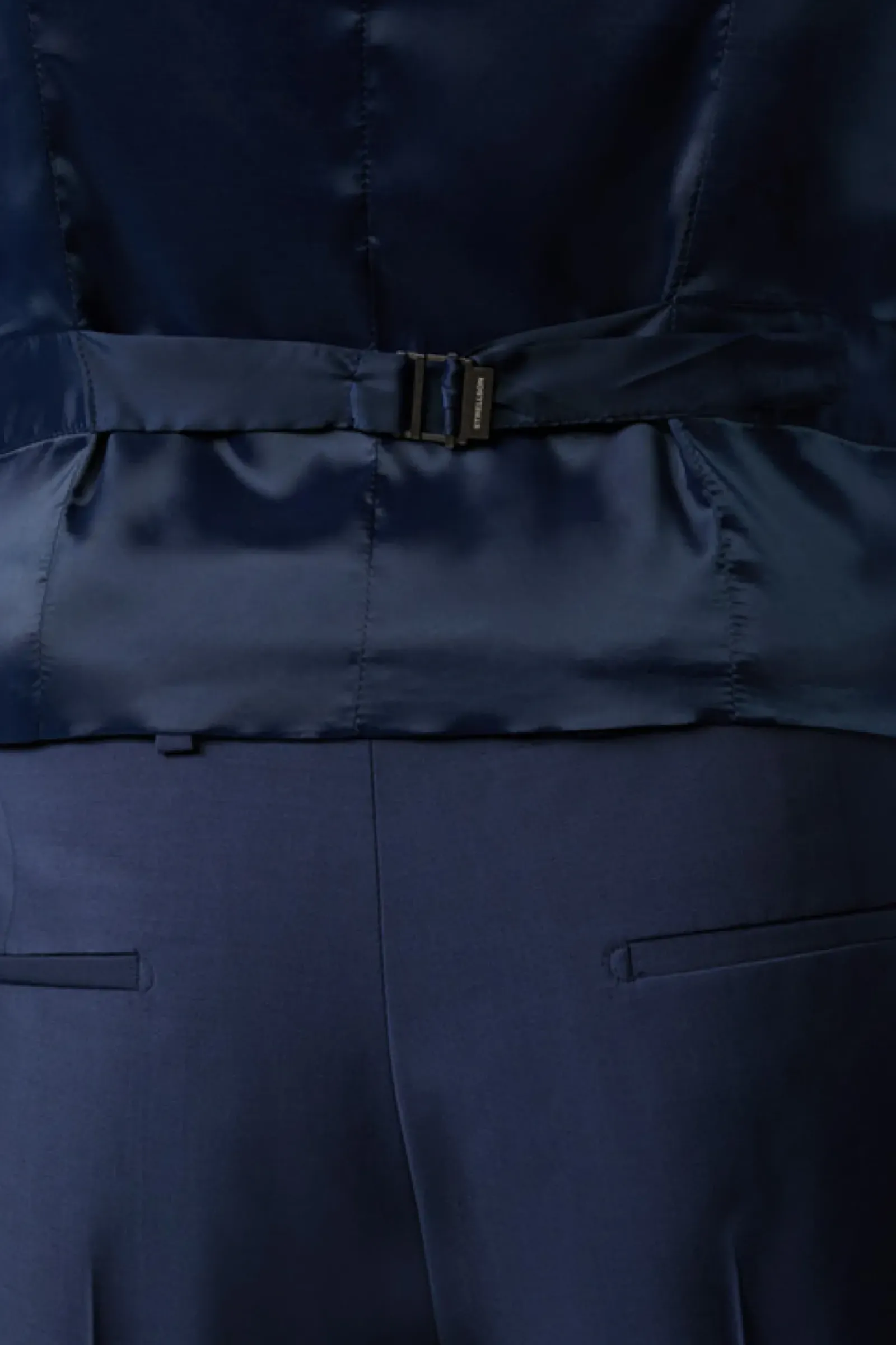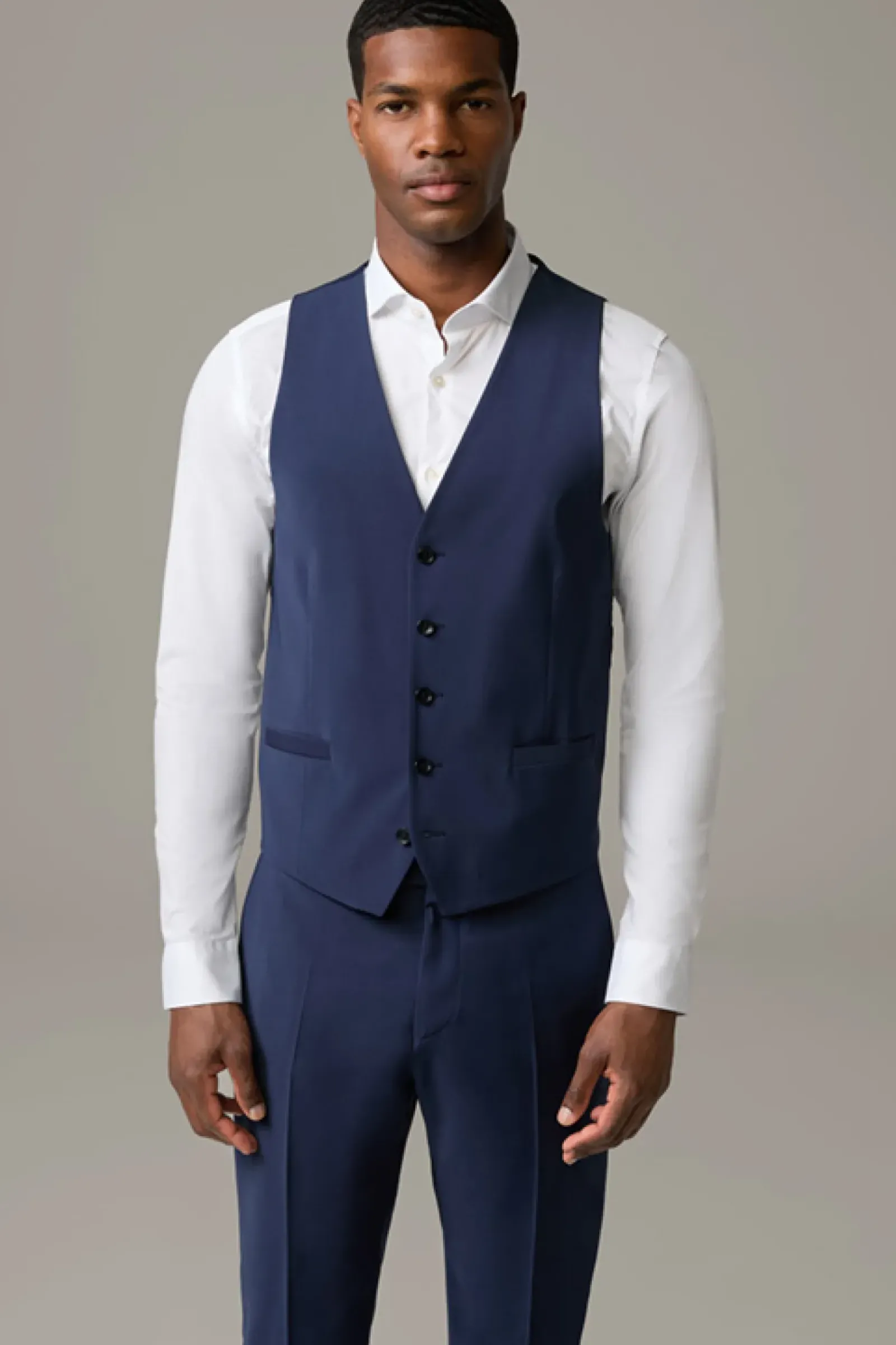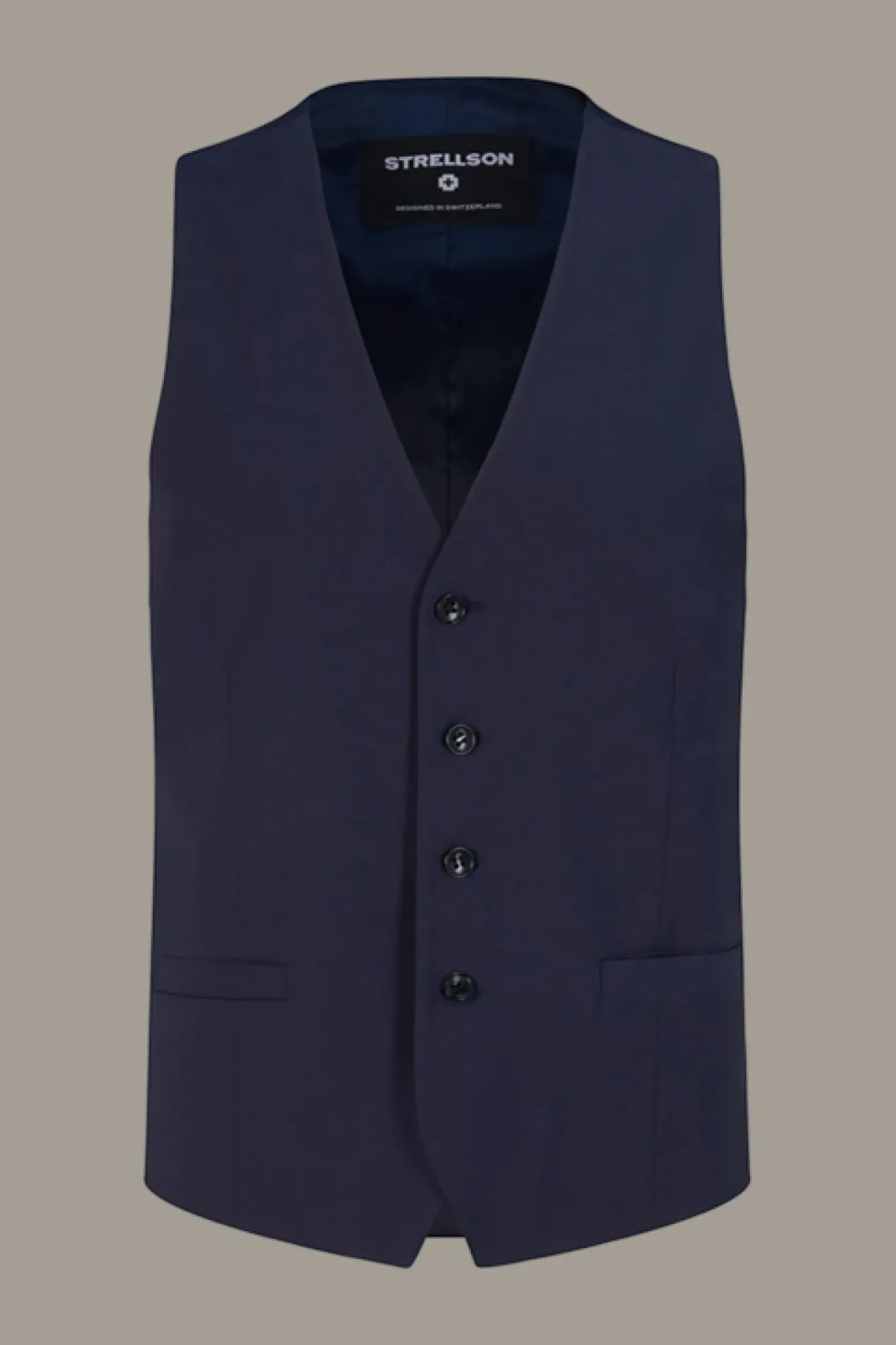 Add-on-Piece für feine Anlässe: die Weste Ves mit durchgehender Knopfleiste, Leistentaschen und changierendem Rückenteil mit verstellbarem Riegel.