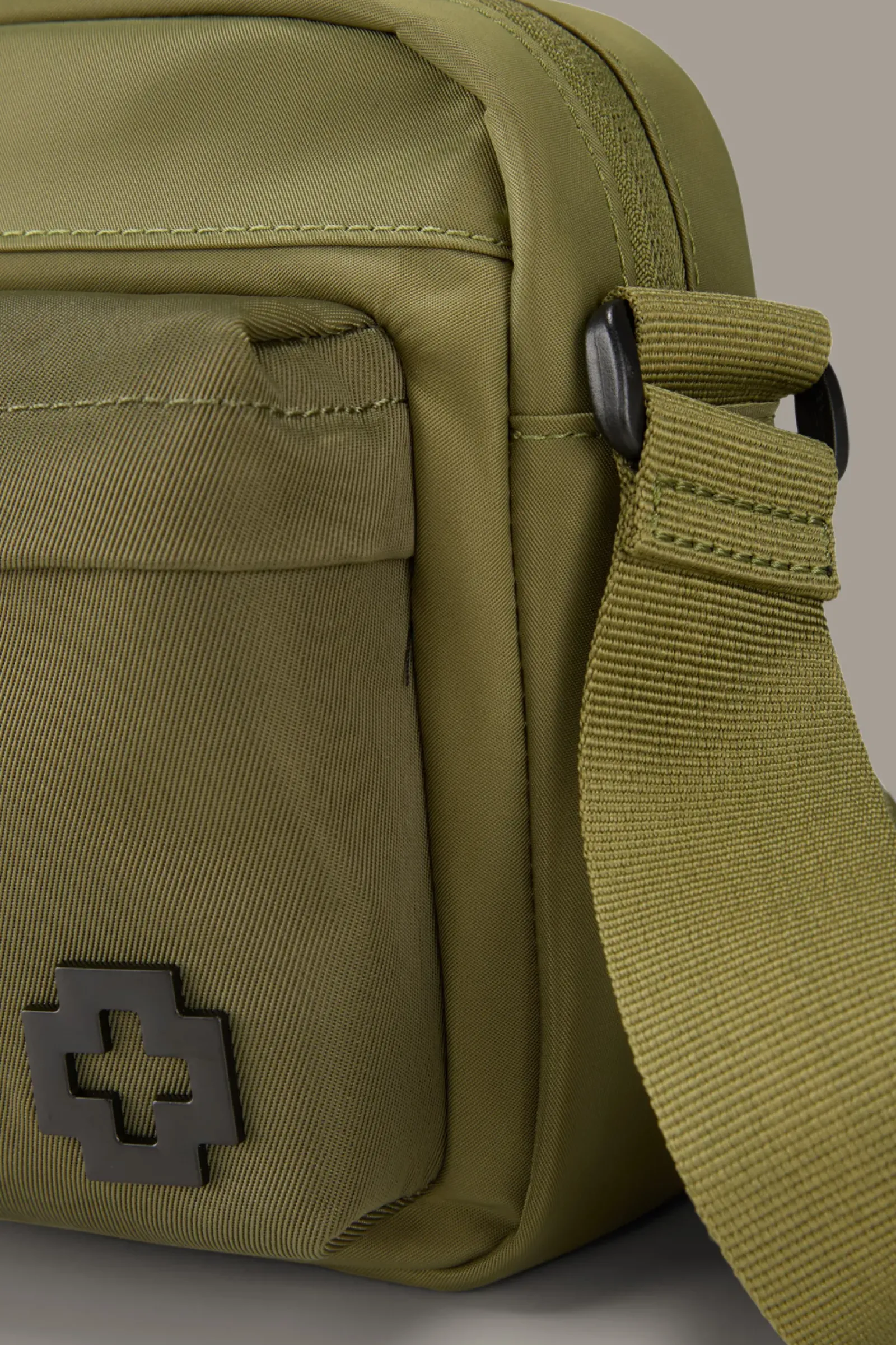 Mit aufgesetzten Fronttaschen im Duo-Design und Logo-Plakette: die Schultertasche Wood Street Oddd aus strapazierfähigem Nylon.