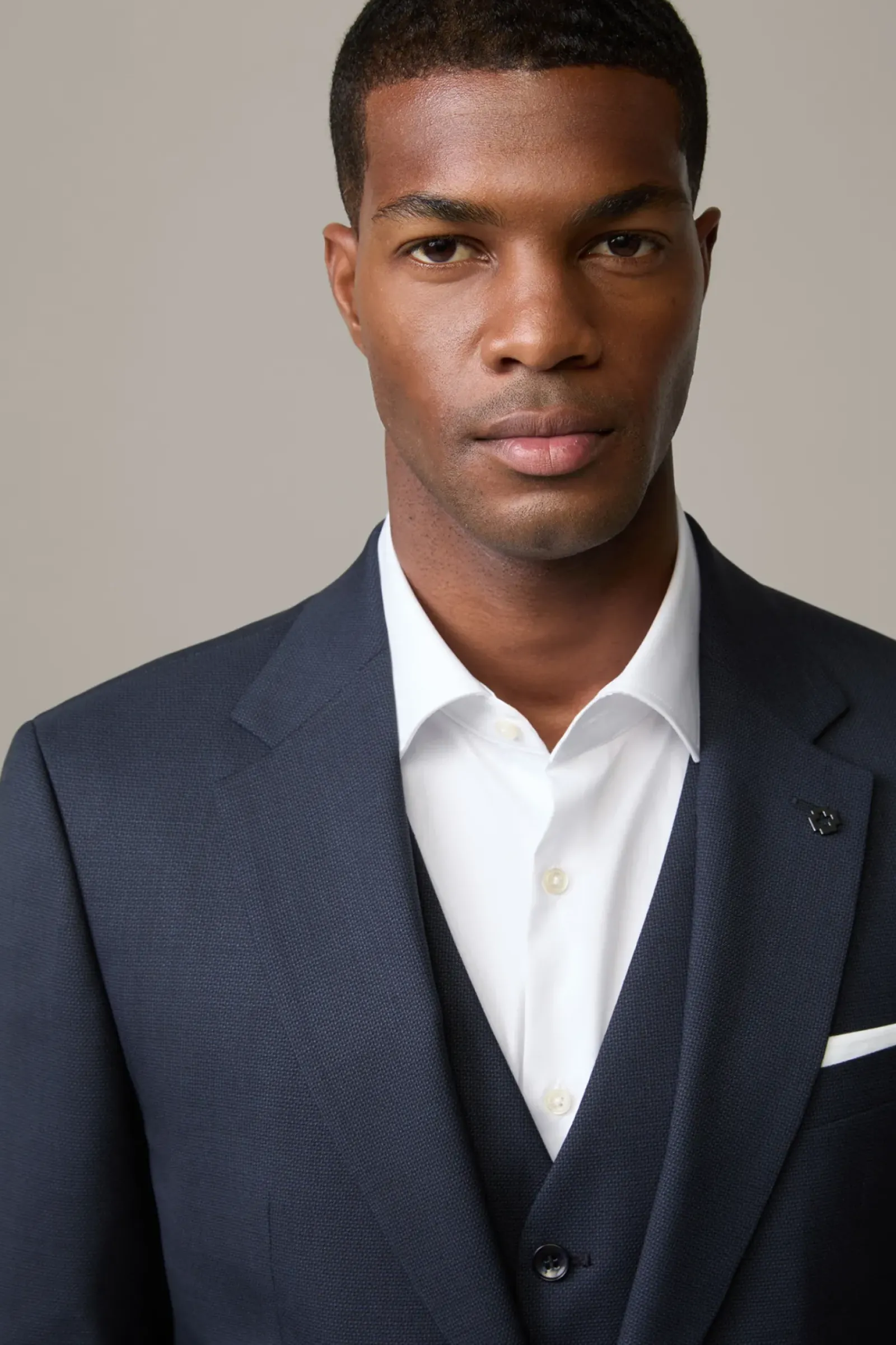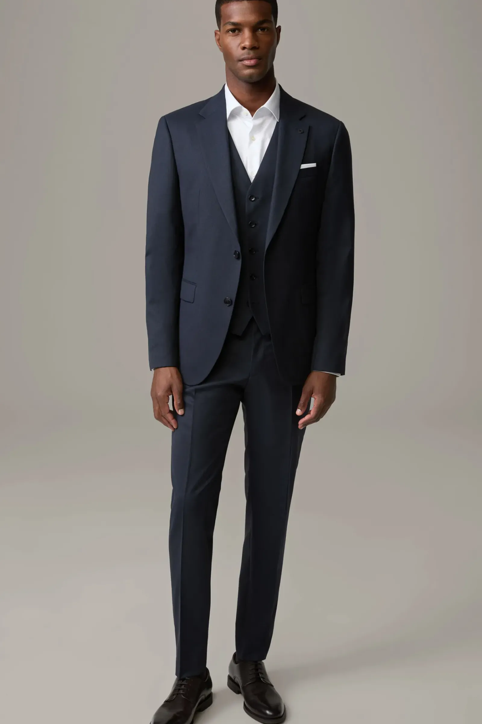 Smarter Style: der Anzug Aidan-Melwin aus italienischer Schurwolle mit Reverskragen, Logo-Pin und paspelierten Pattentaschen, ergänzt durch die Anzughose im klassischen Look mit Bügelfalte und verdeckter Verschlussleiste.