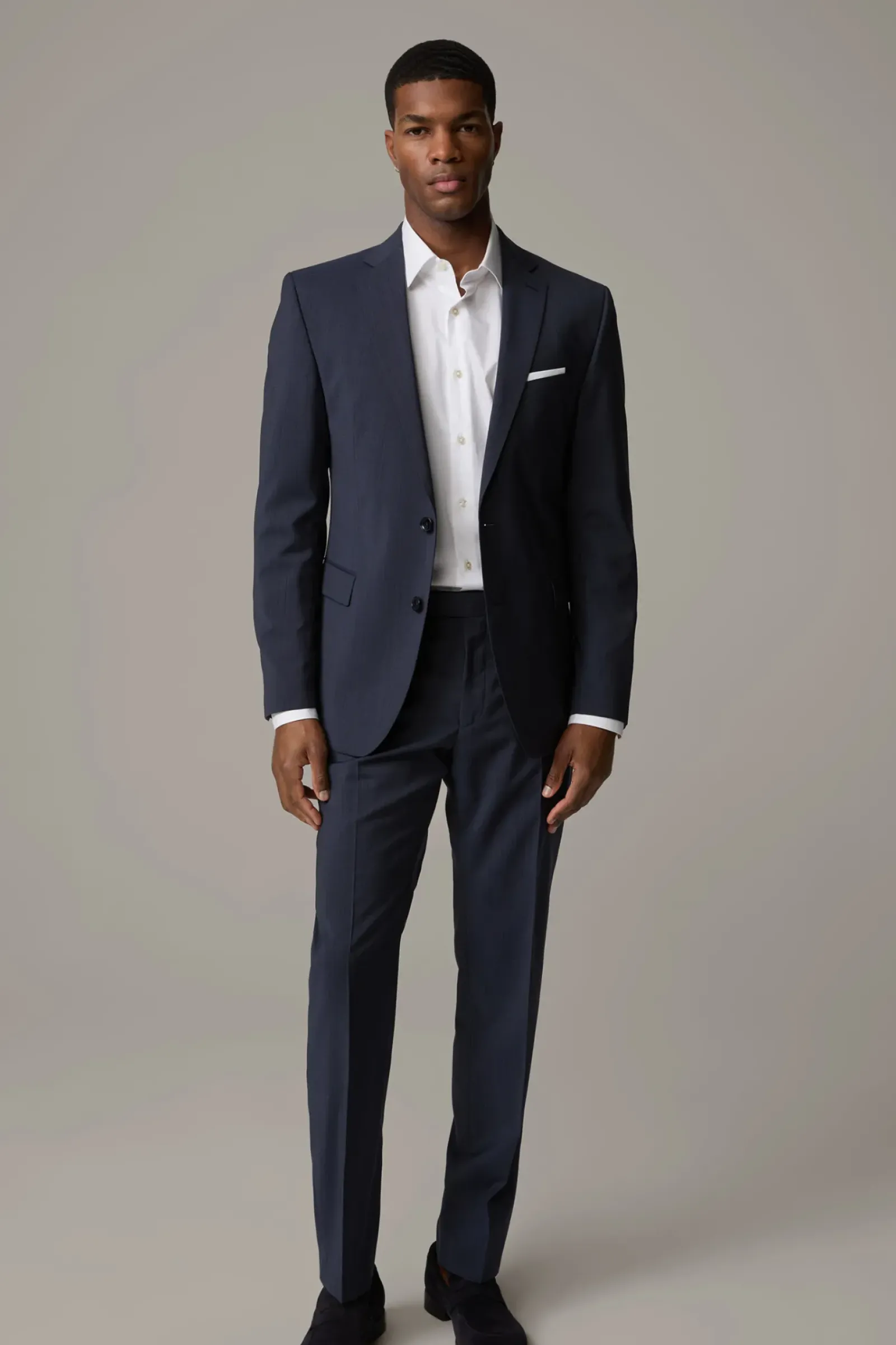 Der luxuriöse Anzug Rick-Jans aus reiner Schurwolle begeistert mit leichtem Tragekomfort und klassischen Details. Moderner Regular Fit mit Reverskragen, Pattentaschen und Anzughose mit Business-Schließe. Auch gut zu tragen bei Hochzeit oder anderen besonderen Anlässen.