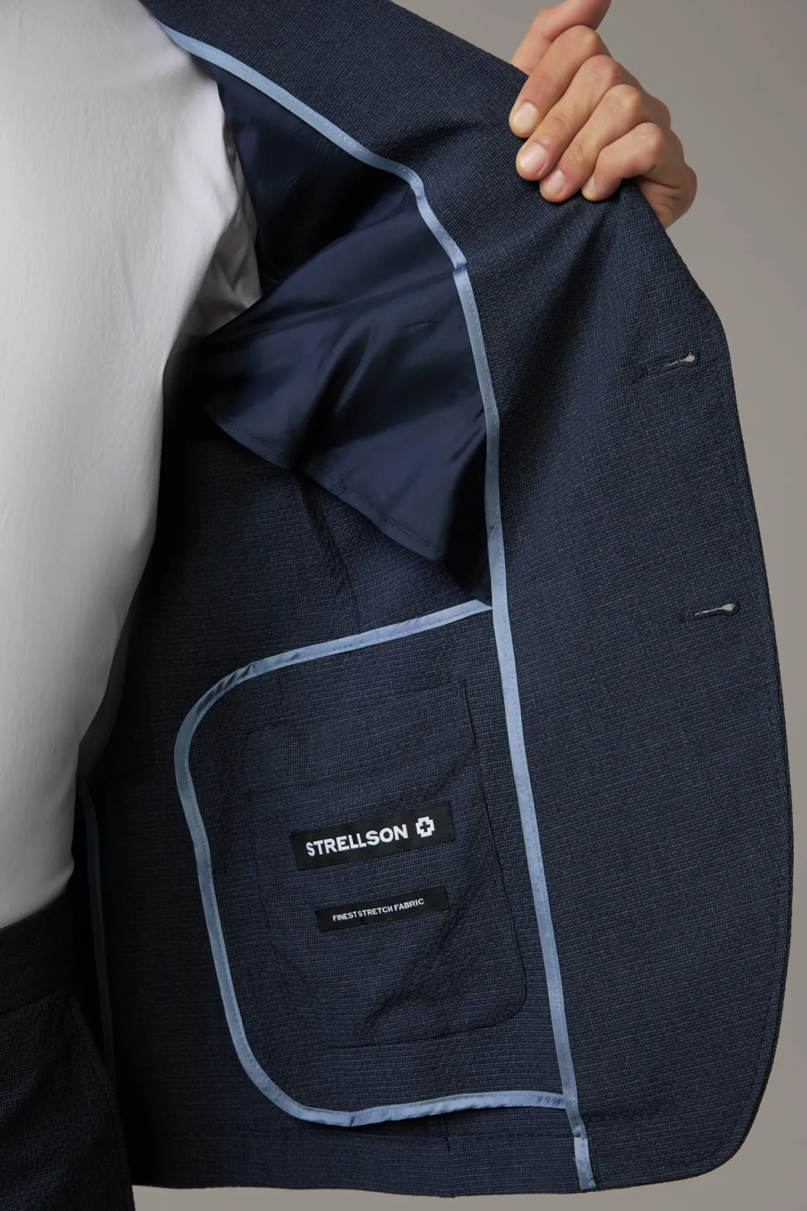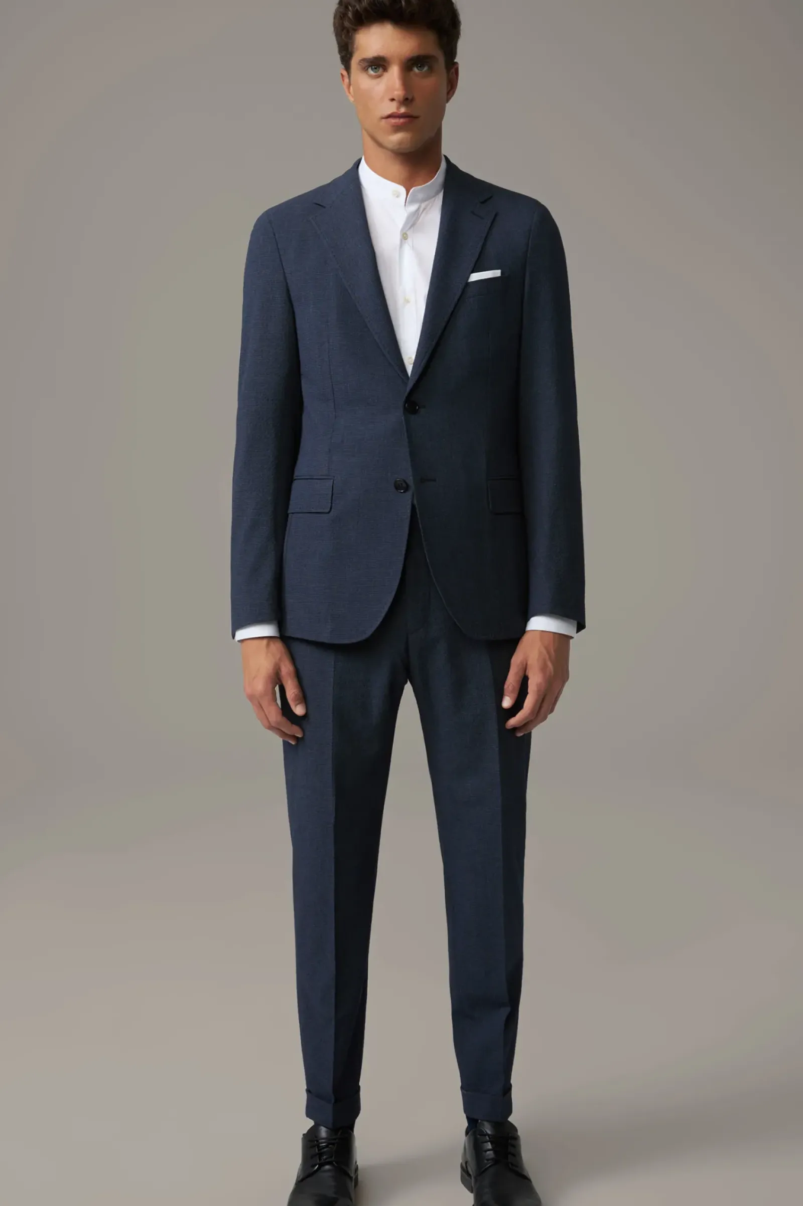 Smarter Look: der Anzug Acon-Luc in angenehmer Stretch-Qualität und melierten Design. Die Anzughose überzeugt mit paspelierten Taschen und Bügelfalten, Sakko mit Pattentaschen und Bewegungsschlitzen im Duo-Design.