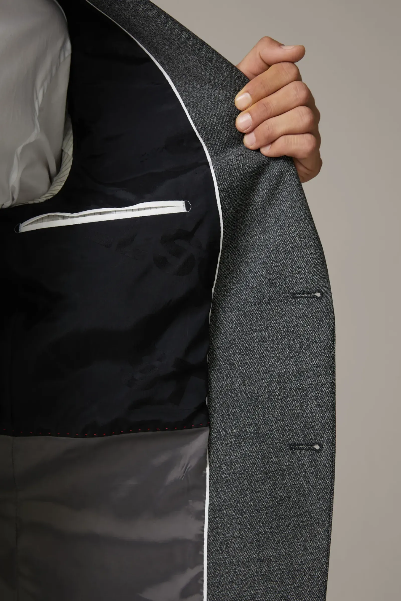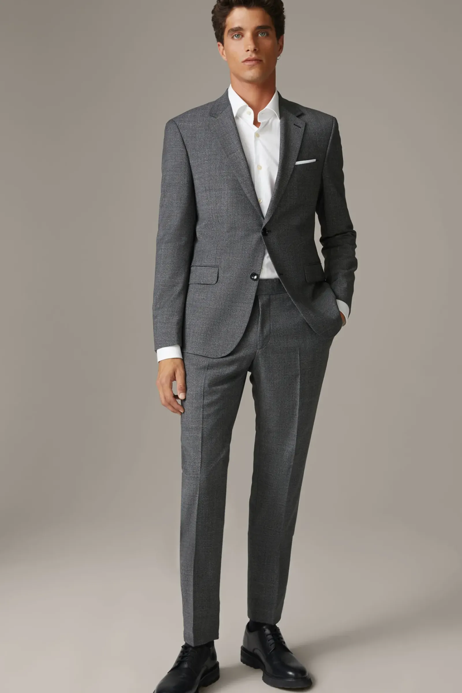 Eleganter Business-Allrounder: Der Flex-Cross Anzug Aidan-Max in Wool-Stretch Qualität. Klassische Details wie der Reverskragen, die Pattentaschen und die Bewegungsschlitze ergänzen den Einreiher.