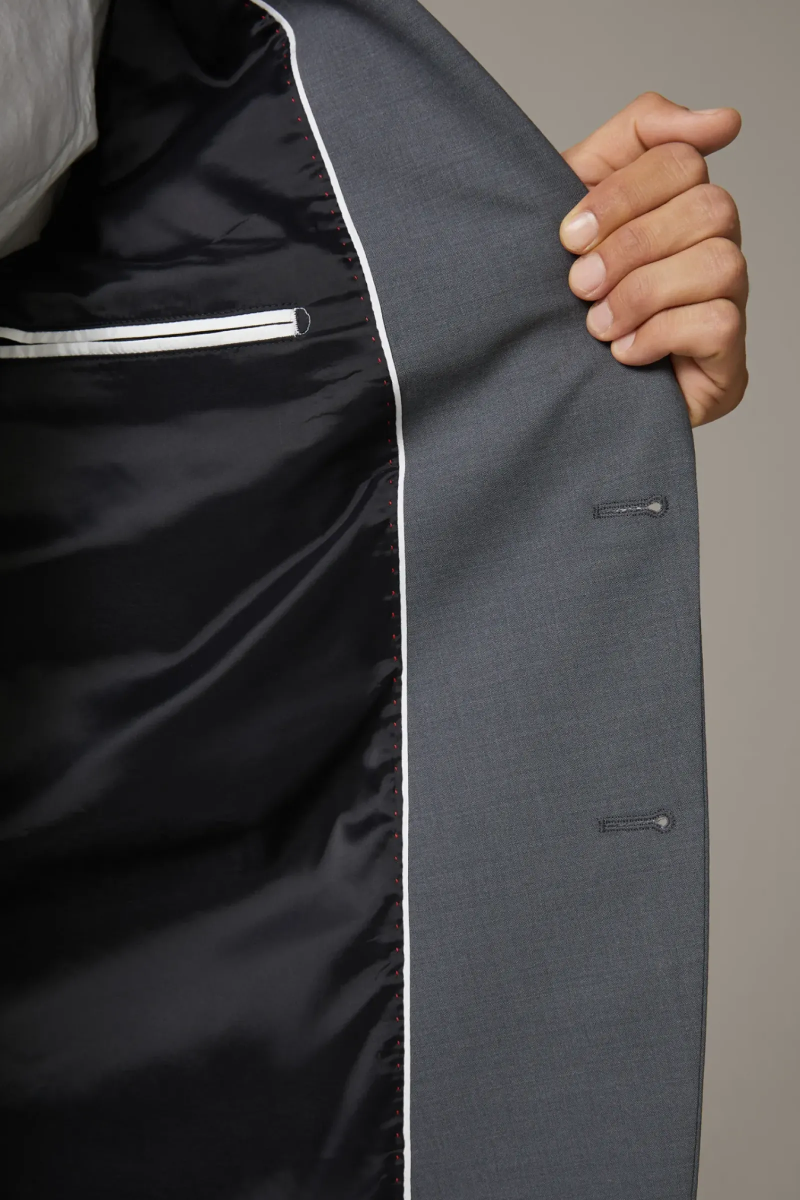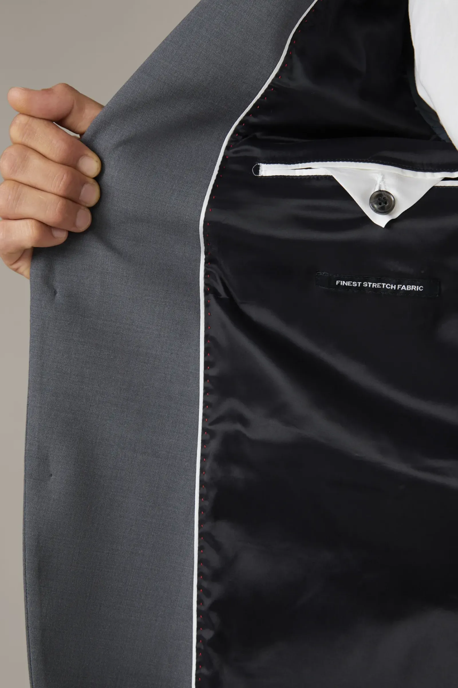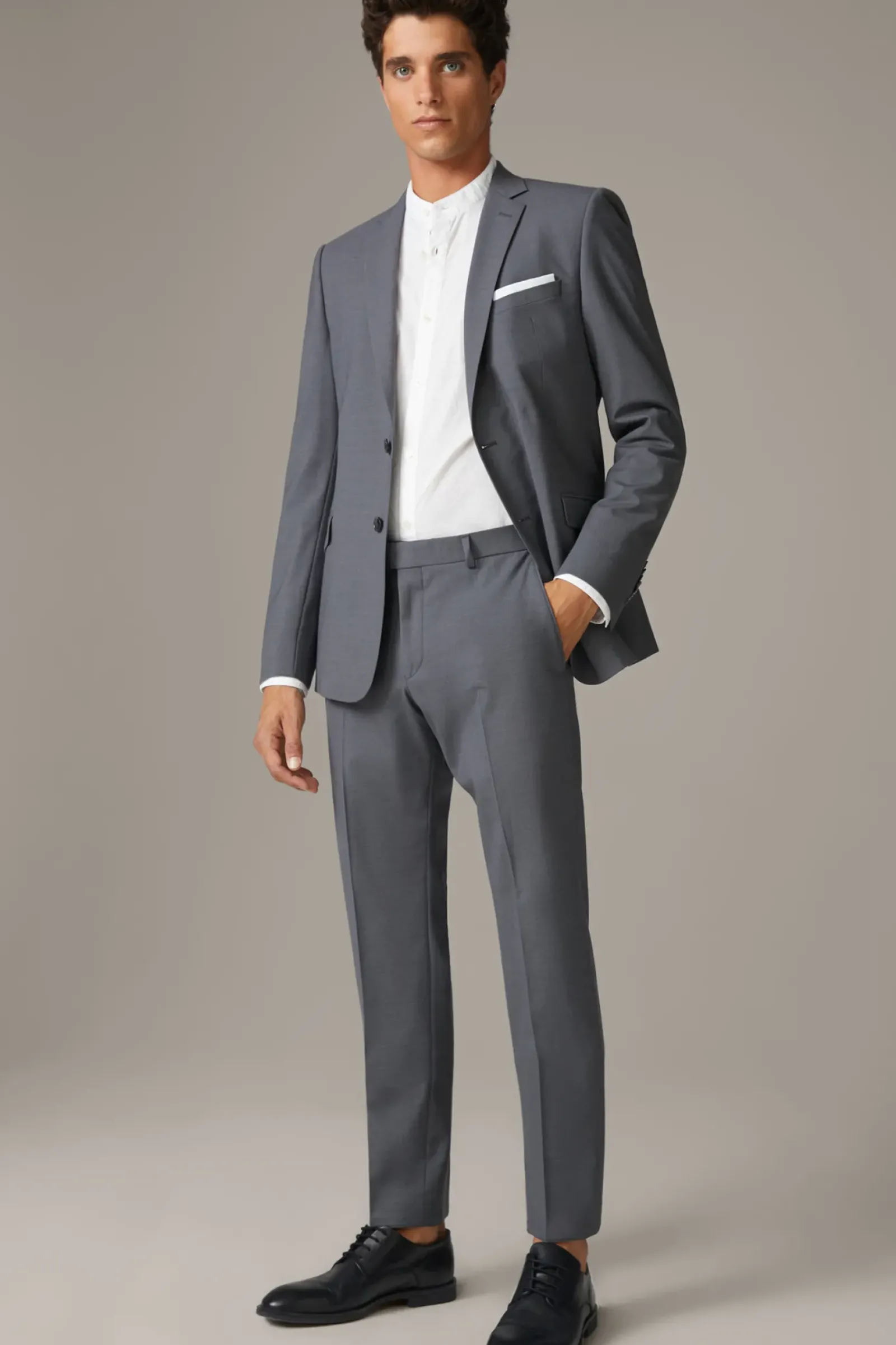 Maximum Performance und Komfort: der Flex Cross Anzug Allen-Mercer im stretchigen Woll-Mix. Das Revers und Kissing-Buttons heben das Design hervor, ergänzt durch Bügelfalten an der Hose.