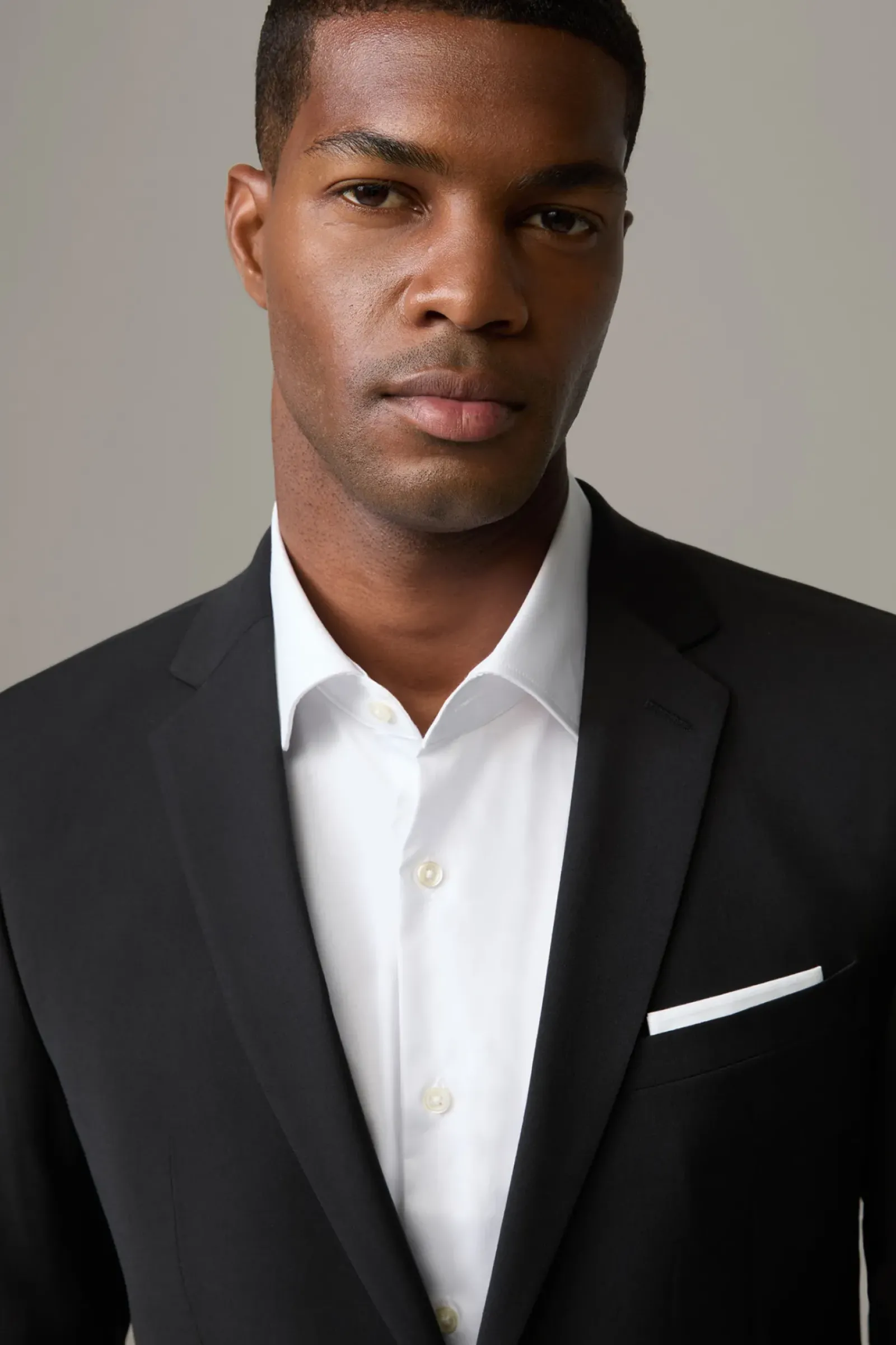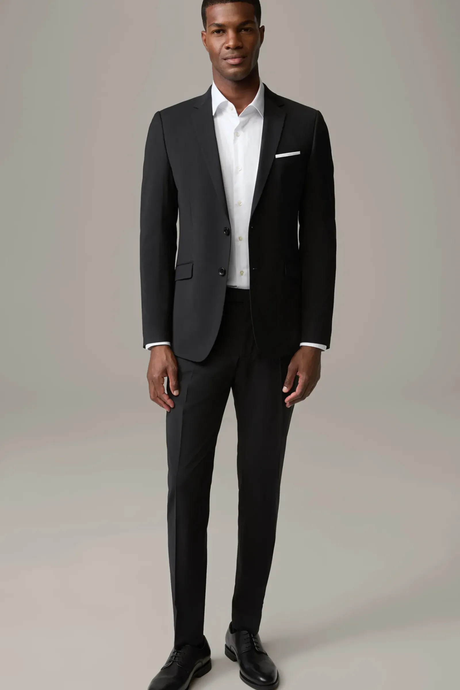 Maximum Performance und Komfort: der Flex Cross Anzug Allen-Mercer im stretchigen Woll-Mix. Das Revers und Kissing-Buttons heben das Design hervor, ergänzt durch Bügelfalten an der Hose.