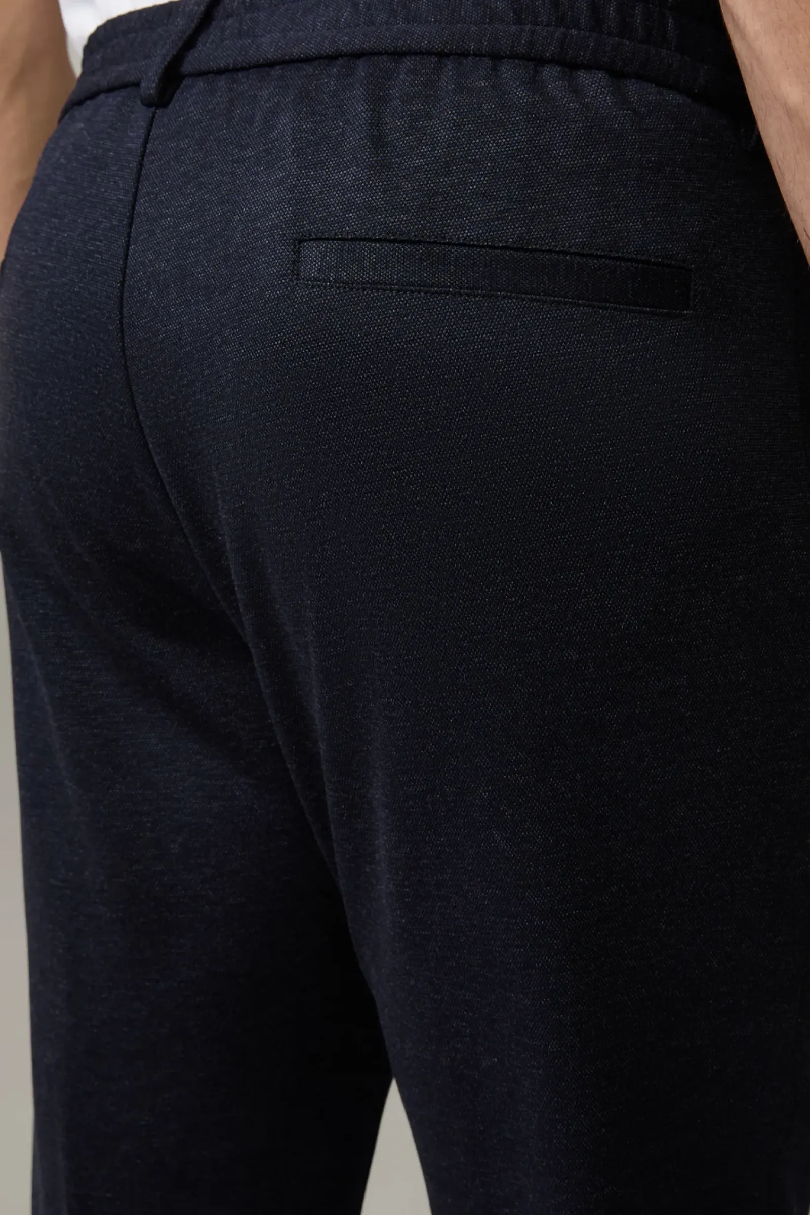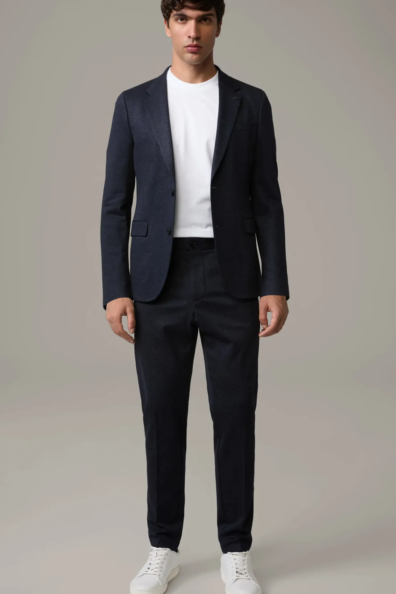 Im Einreiher-Design mit elastischem Bundeinsatz an der Chino: der Anzug Alzer-Tius. Mit paspelierten Pattentaschen und Zierärmelschlitz mit Knöpfen. Aus Viskose-Stretch mit fließendem Futter.