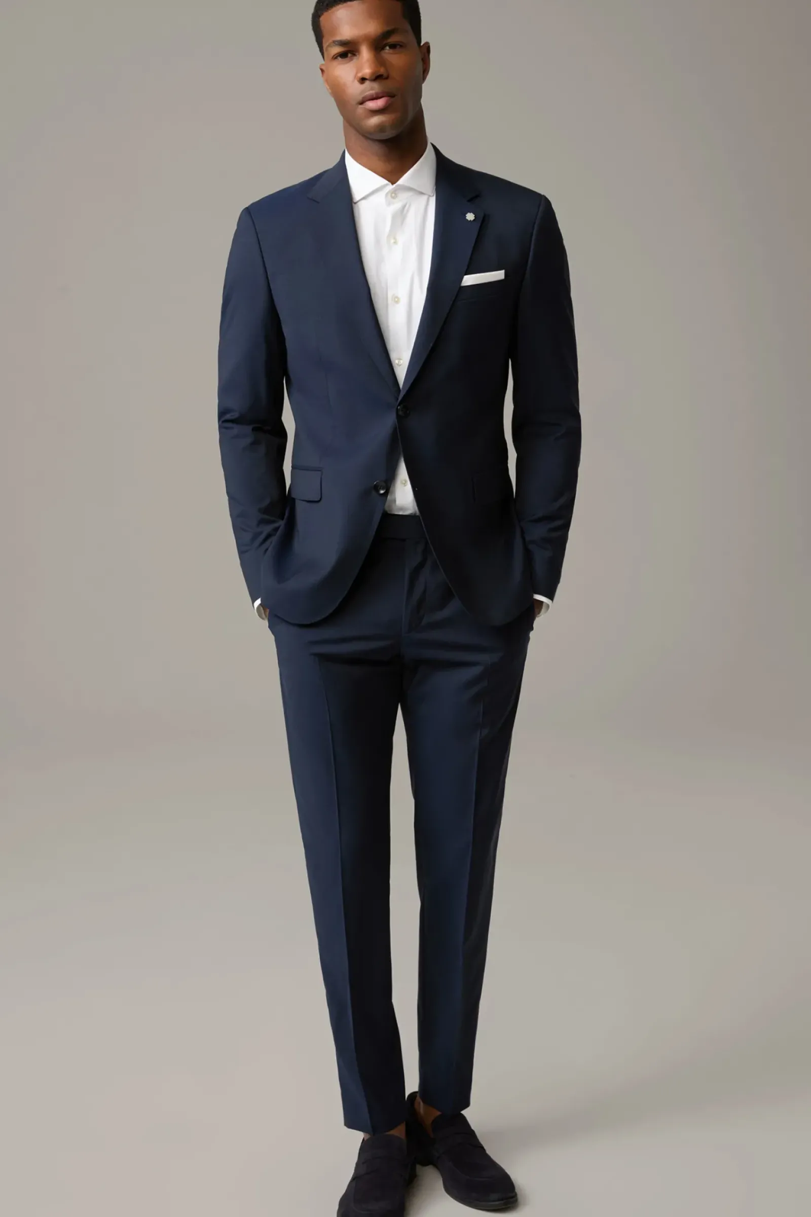 Edles Business-Piece: der Anzug Aidan-Madden im Einreiher-Design mit fallendem Revers, paspelierten Pattentaschen und Bewegungsschlitzen sowie einer Bügelfaltenhose mit schmalem Beinverlauf und doppeltem Hakenverschluss. Vollgefüttert. Auch gut zu tragen bei Hochzeit oder anderen besonderen Anlässen.