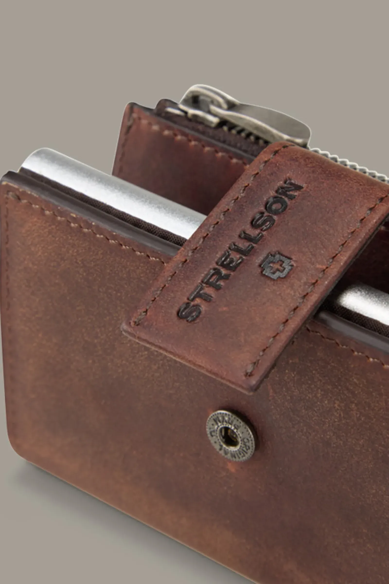 Everywhere you go: das E-Cage-Karten-Etui C-Four Brick Lane aus Glattleder im Vintage-Look mit Aluminium-Case für maximalen RFID-Schutz. Kartenfächer und ein Schein- sowie Münzfach ergänzen das praktikable Accessoire.
