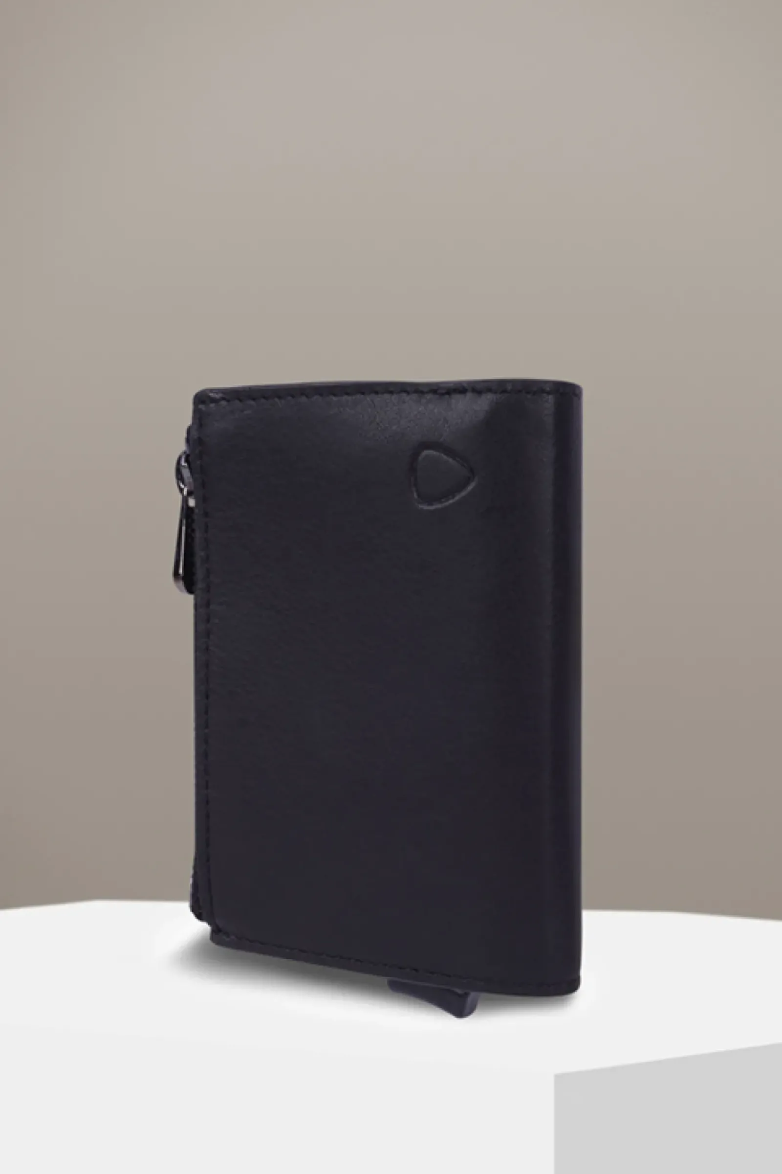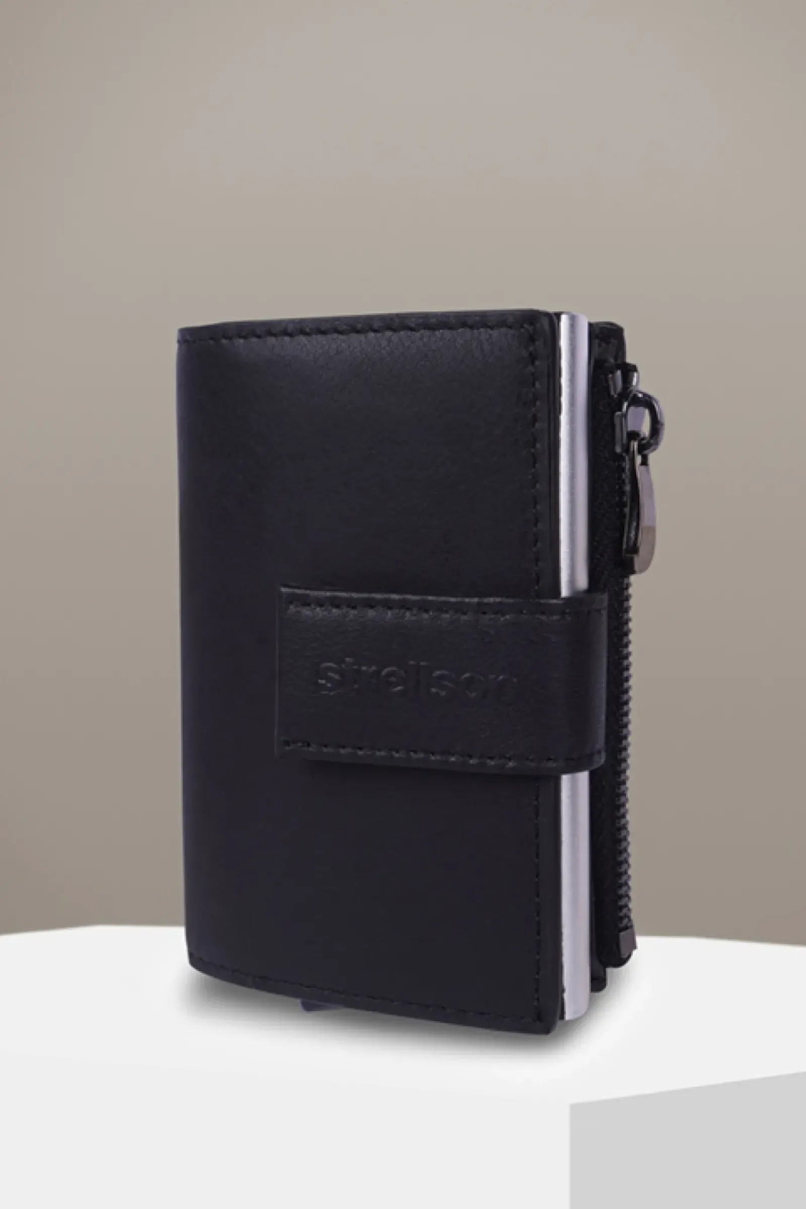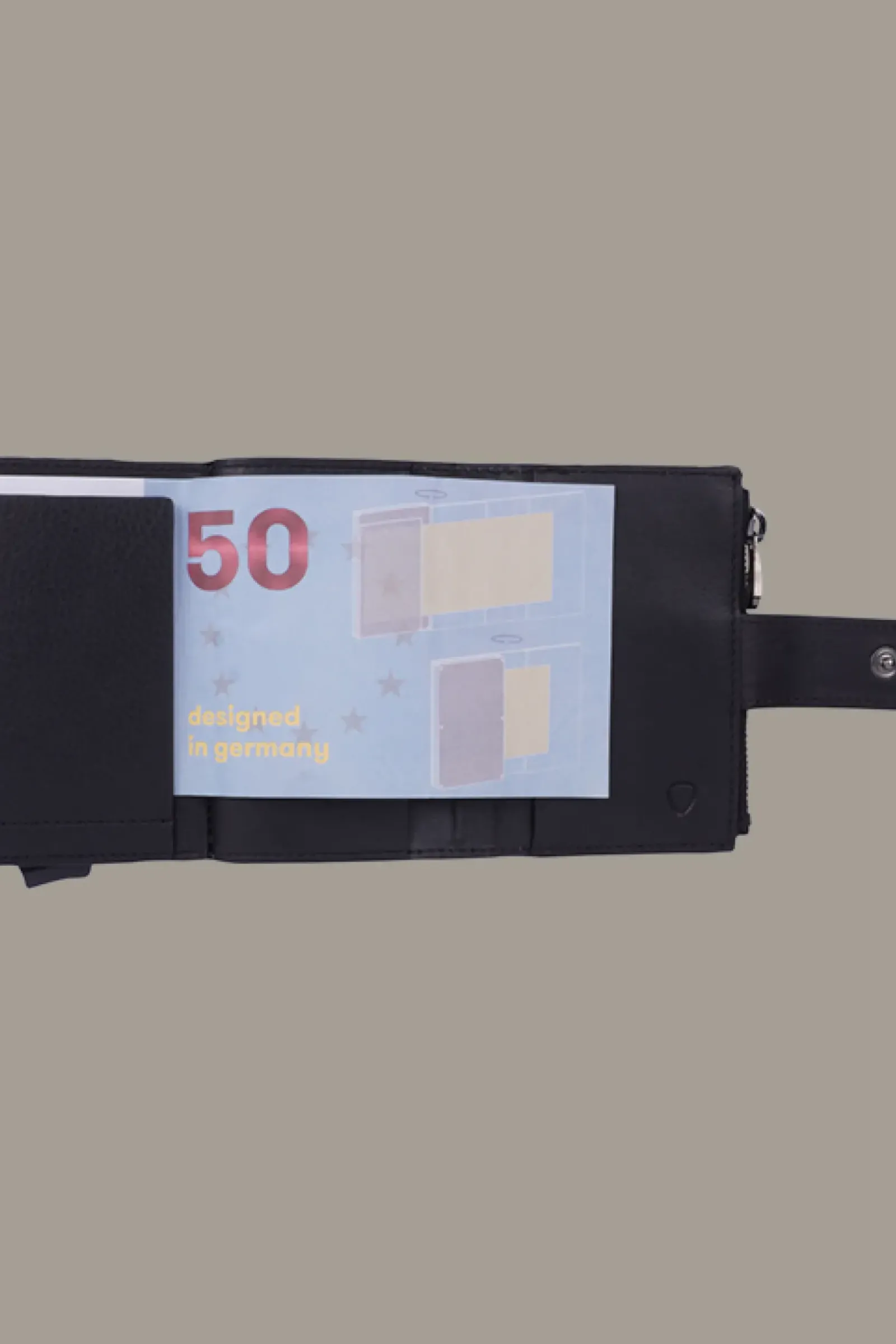 Smart und stilvoll: das E-Cage-Karten-Etui C-Four Carter aus edlem Glattleder mit Aluminium-Case für maximalen RFID-Schutz. Diverse Kartenfächer und ein Schein- sowie Münzfach ergänzen das praktikable Accessoire.