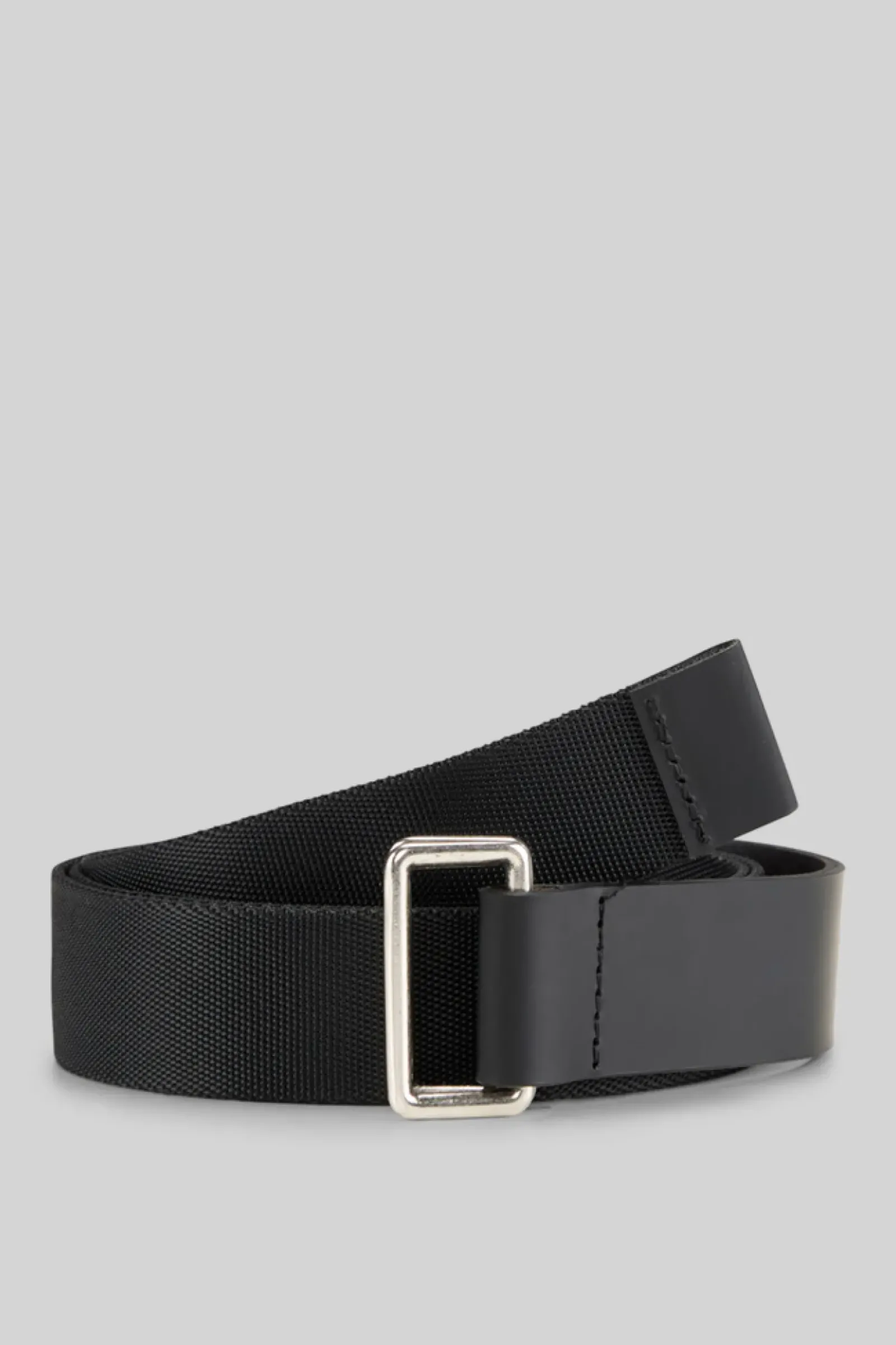 Urbanes Styling-Accessoire: der Gürtel im gewebten Design mit Lederpartien und Logo-Prägung. Zu schließen mit doppelter Ringschnalle.