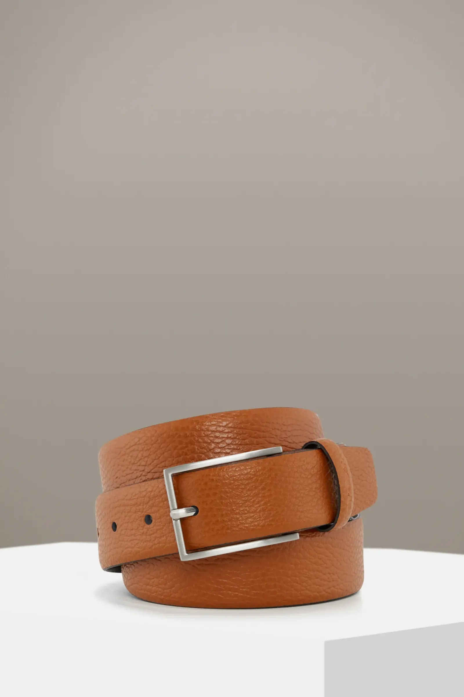 Der Gürtel begeistert in fein genarbter Verarbeitung aus purem Leder mit dezenter Logo-Prägung. Eine mattierte Dornschließe und die Fünffach-Lochung runden das Accessoire klassisch ab.