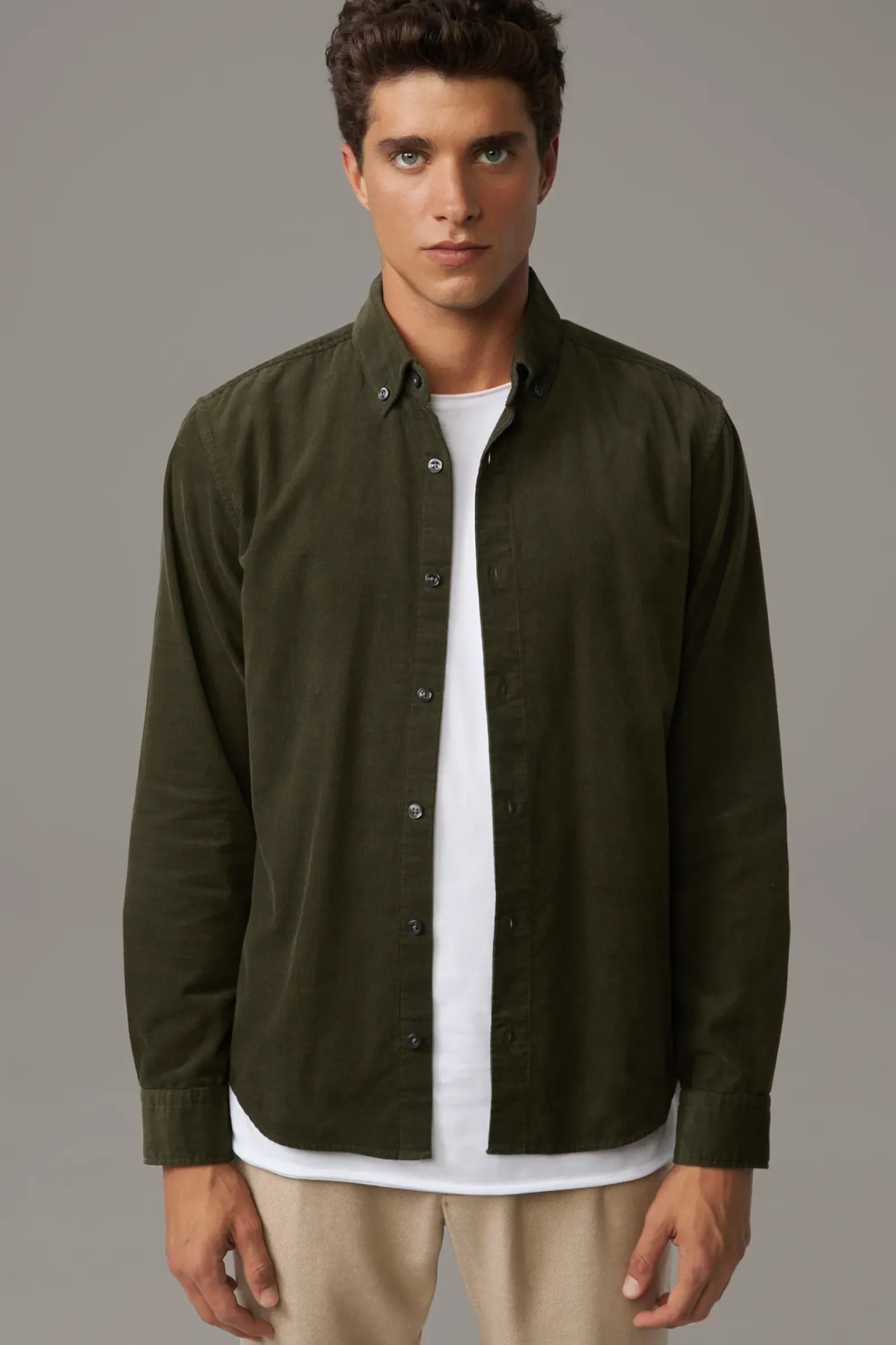 Das Hemd Corey begeistert im Feincord-Look aus reinem Cotton mit klassischen Details wie Manschettenärmeln. Modern Twist: der Button-Down-Kragen.