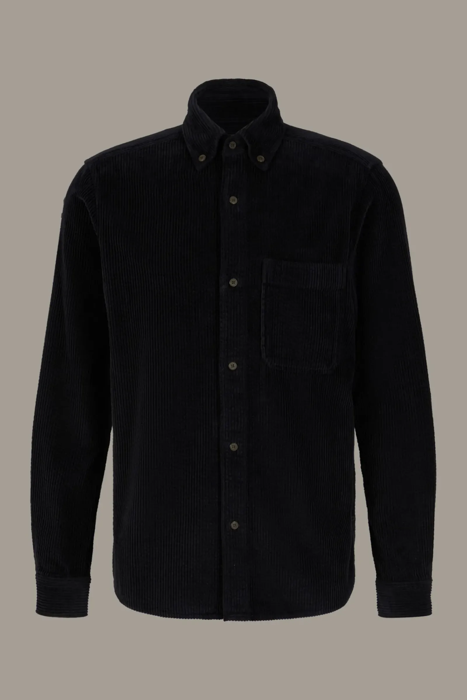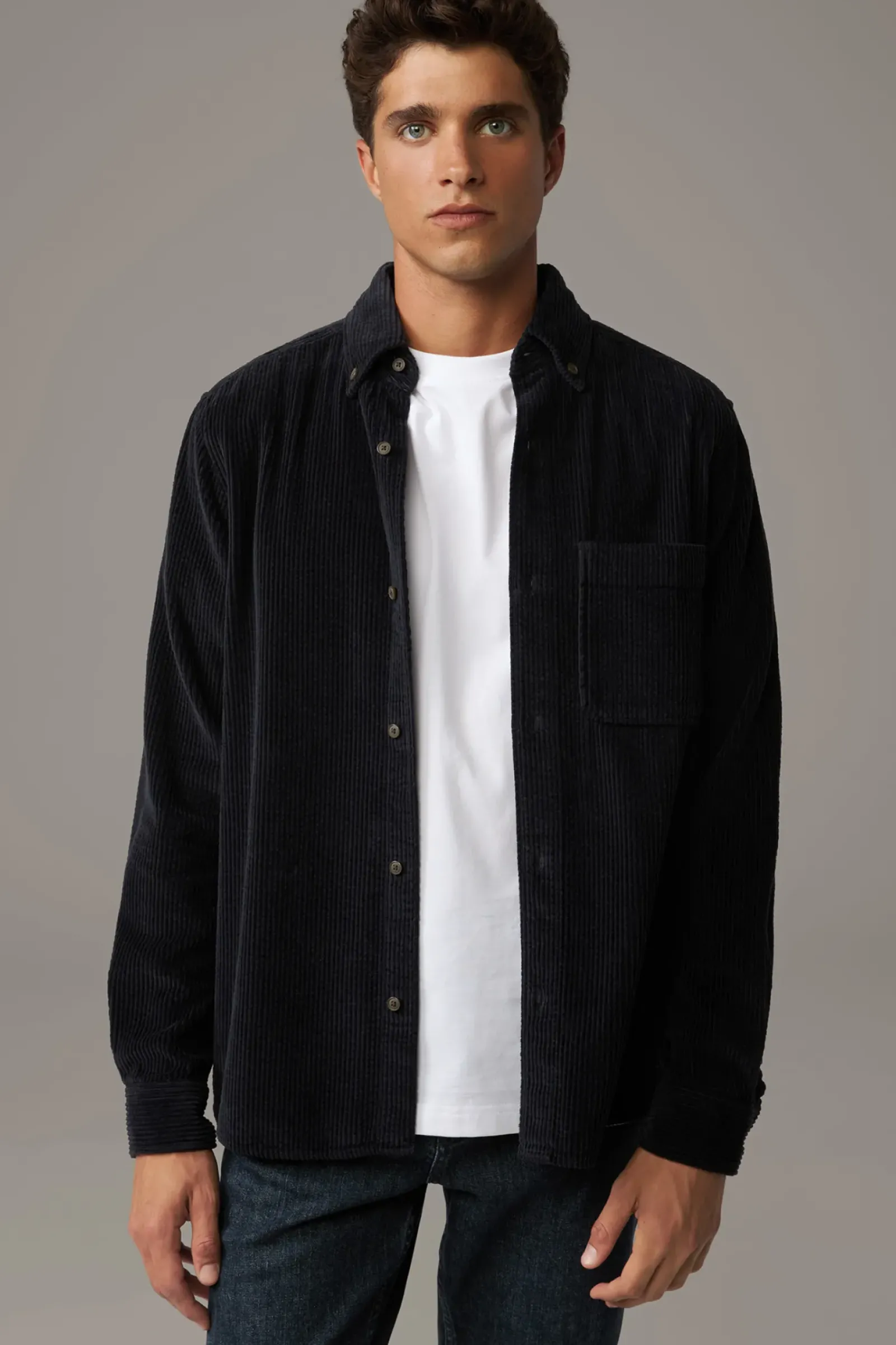 Casual Essential: das Cord-Hemd Nero aus reiner Baumwolle. Eine durchgehende Knopfleiste und die Manschettenärmel geben einen klassischen Look, modern ergänzt durch den Button-Down-Kragen.