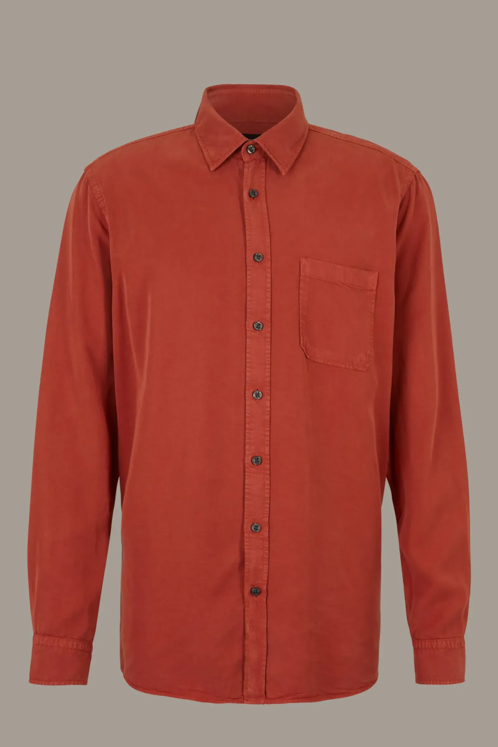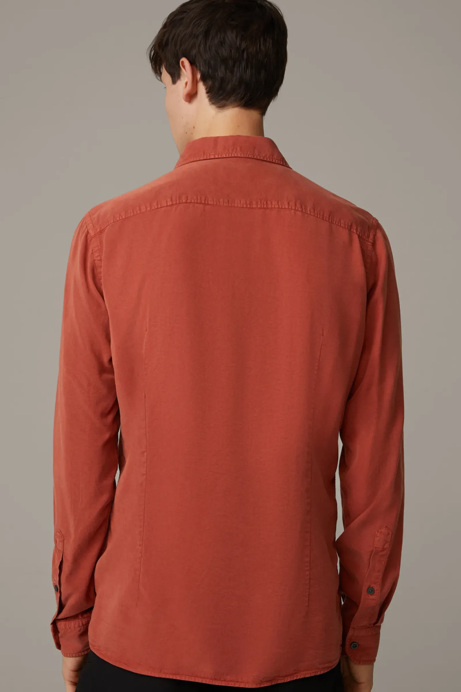 Das Hemd Carver begeistert aus Lyocell mit Kentkragen, Brusttasche und Zierärmelschlitzen. Der abgerundete Saum und eine schmale Rückenpasse ergänzen den Look.